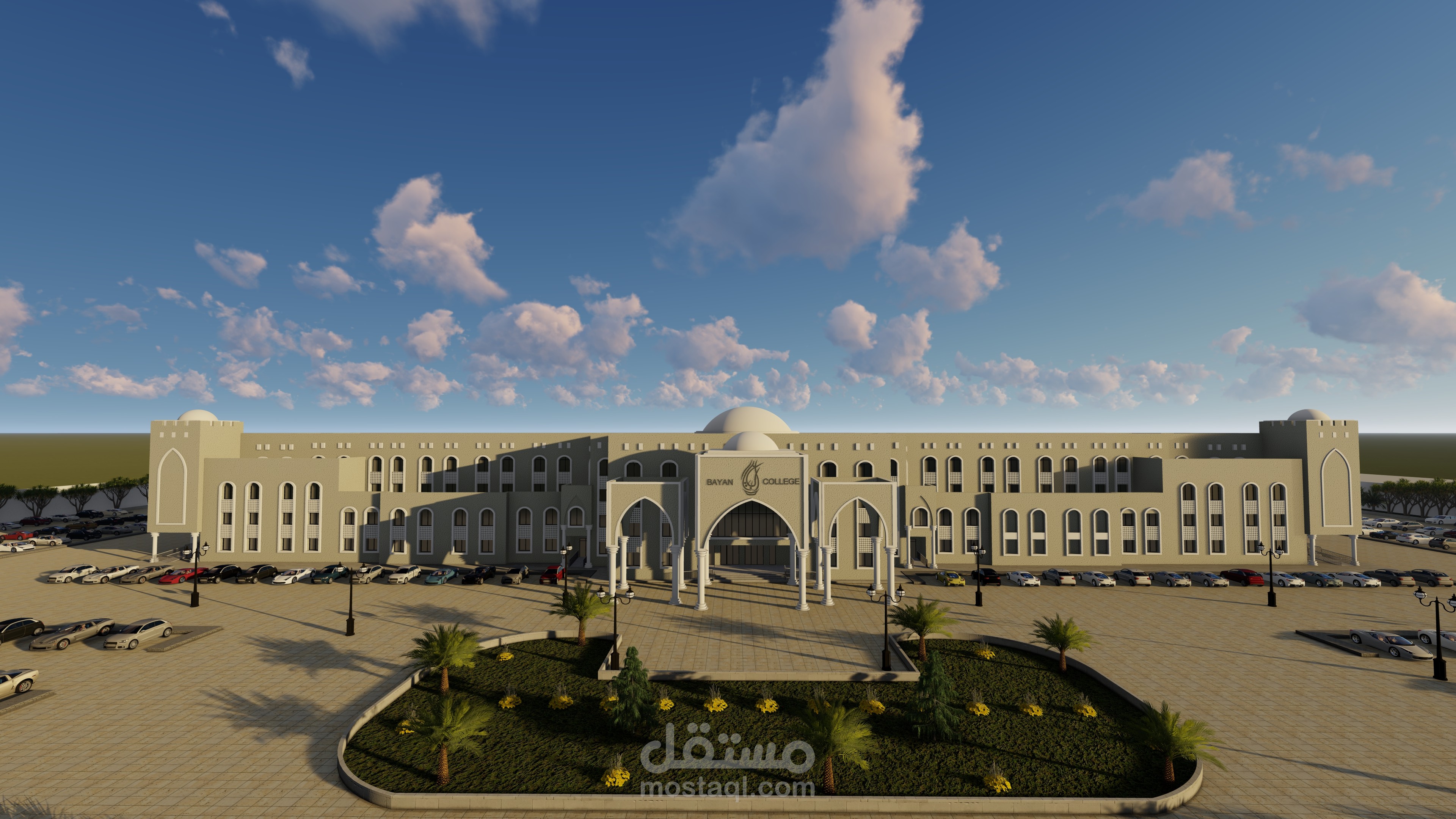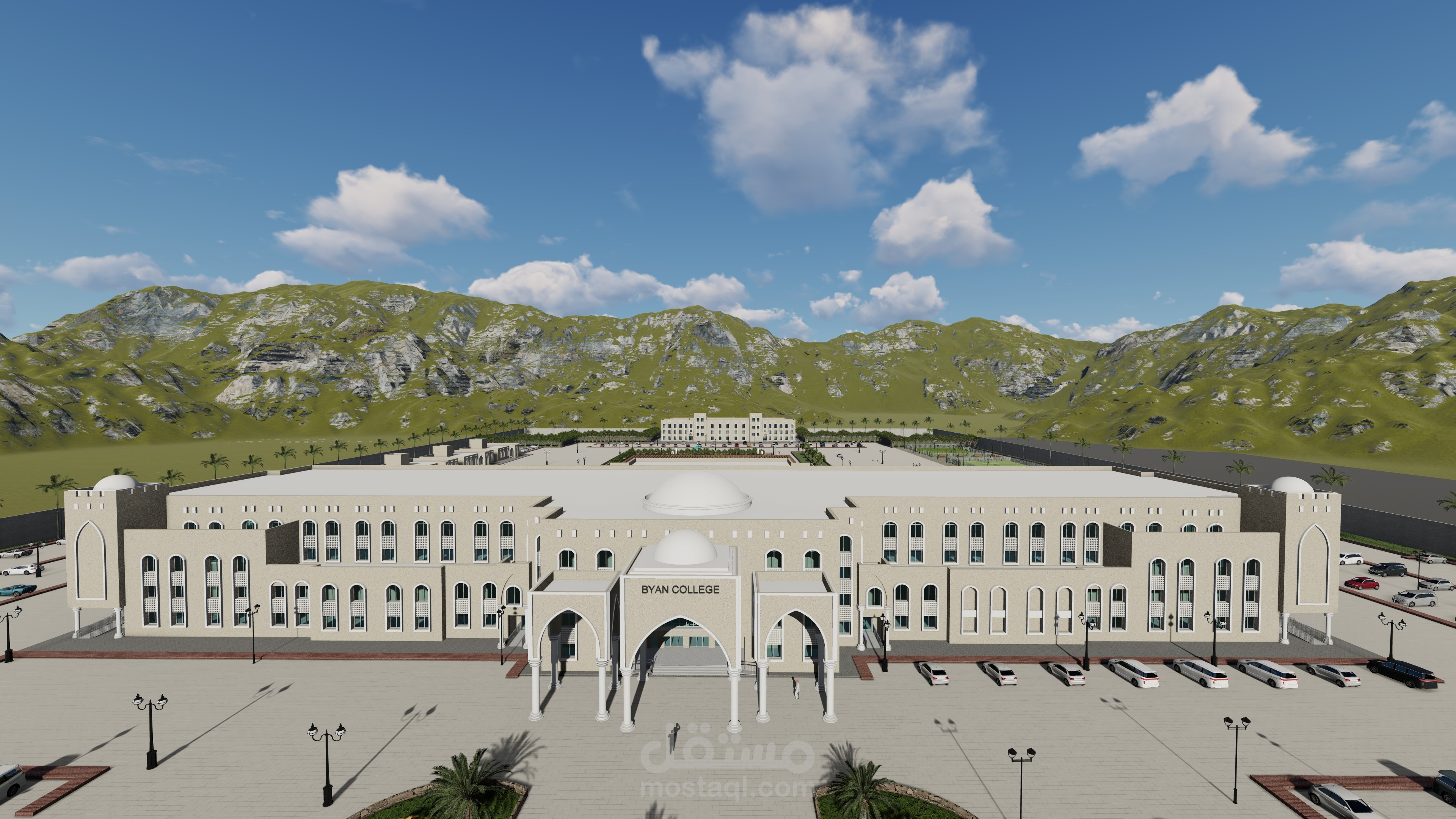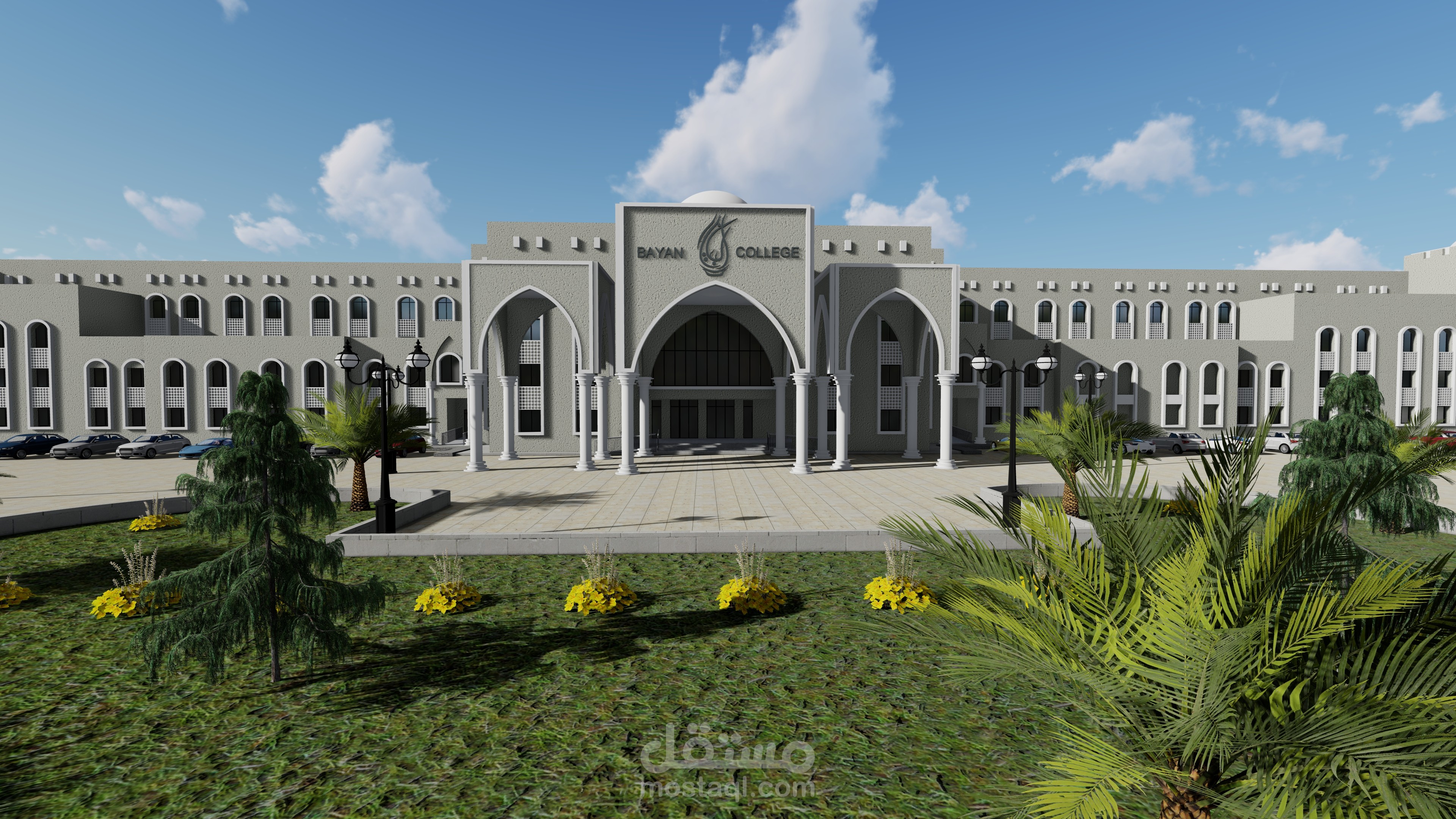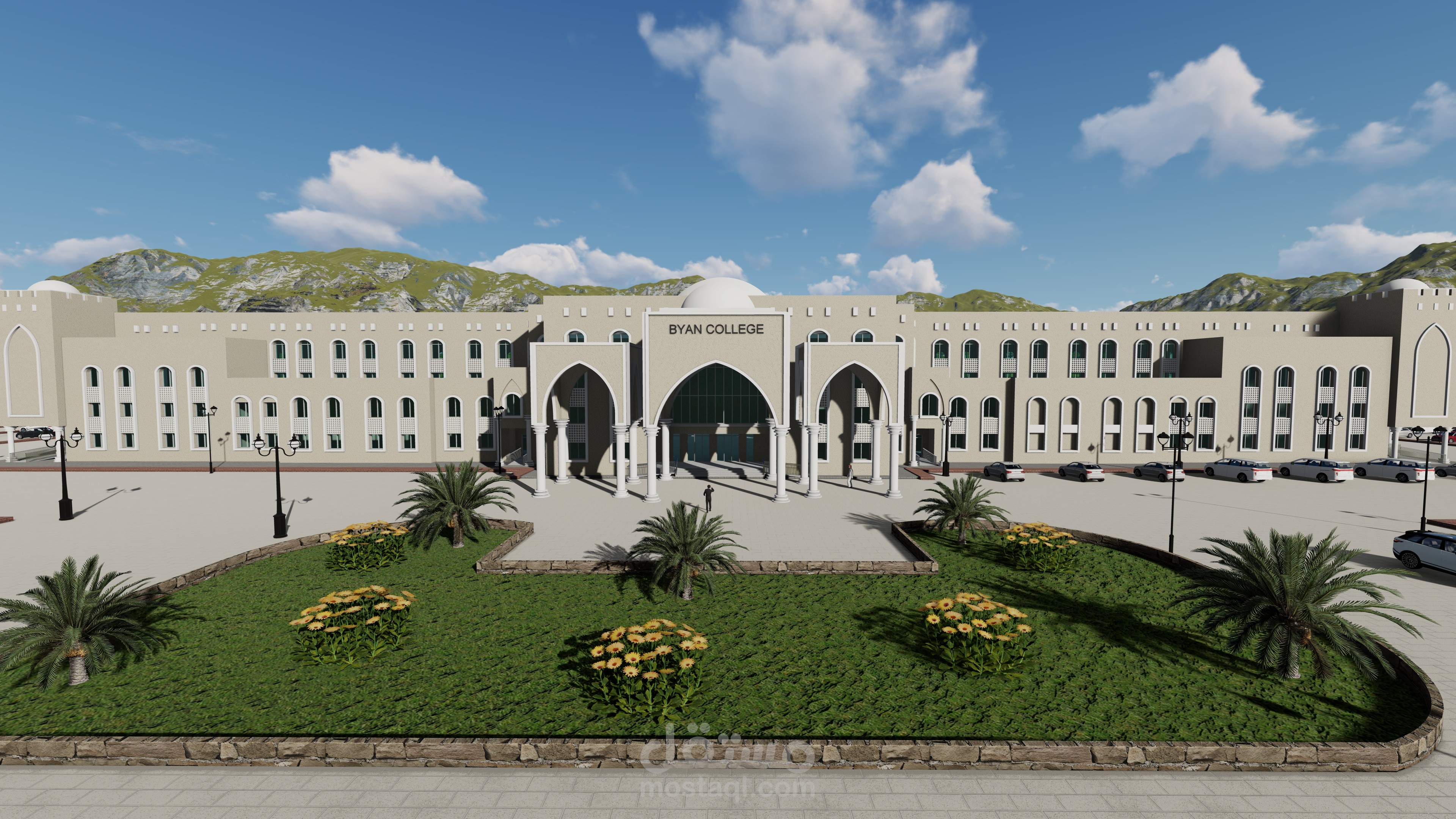 اعاده تصميم واضافه مباني بالجامعه ولاندسكيب وعمل فيديو قصير بكليه البيان بمسقط