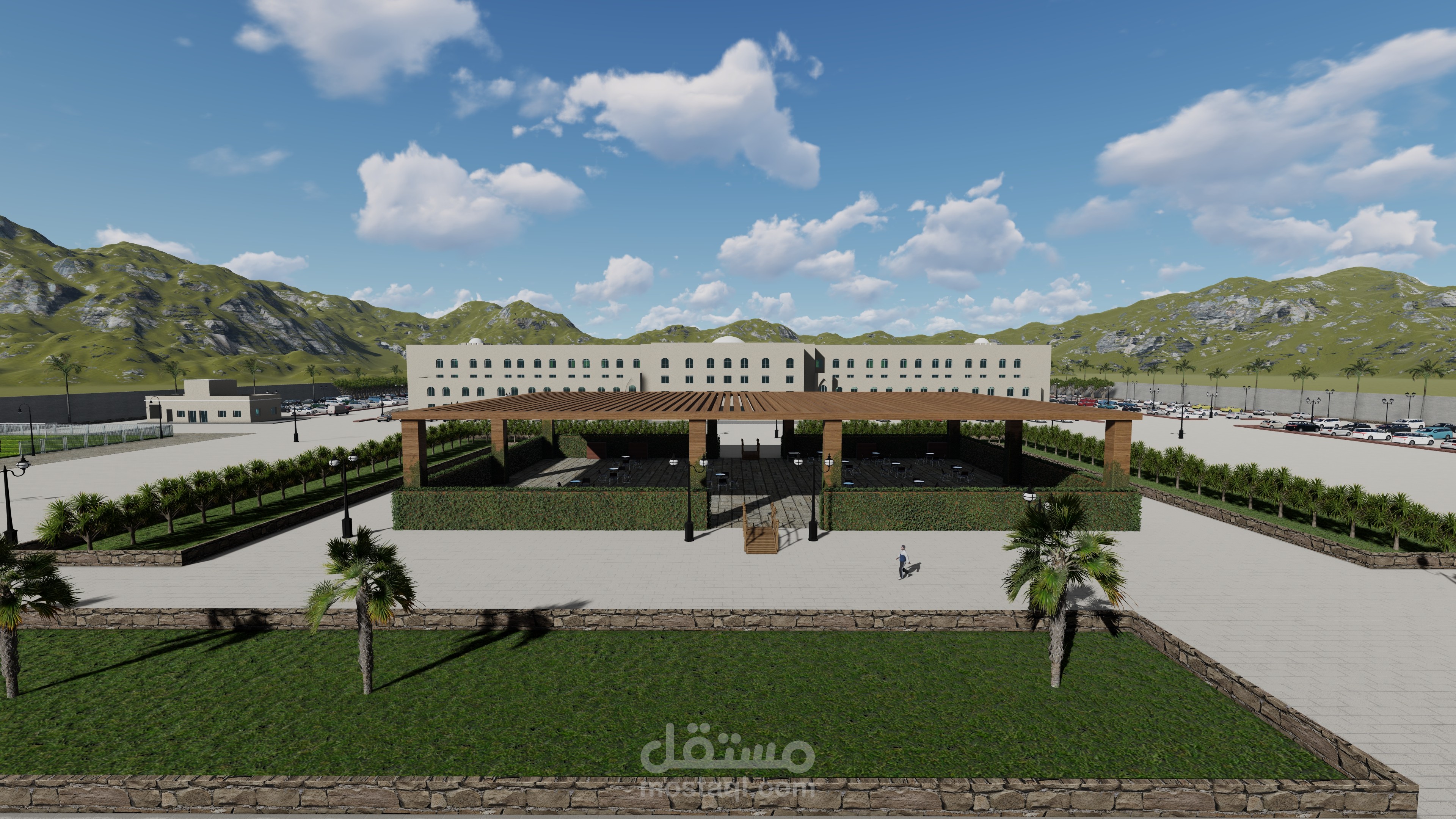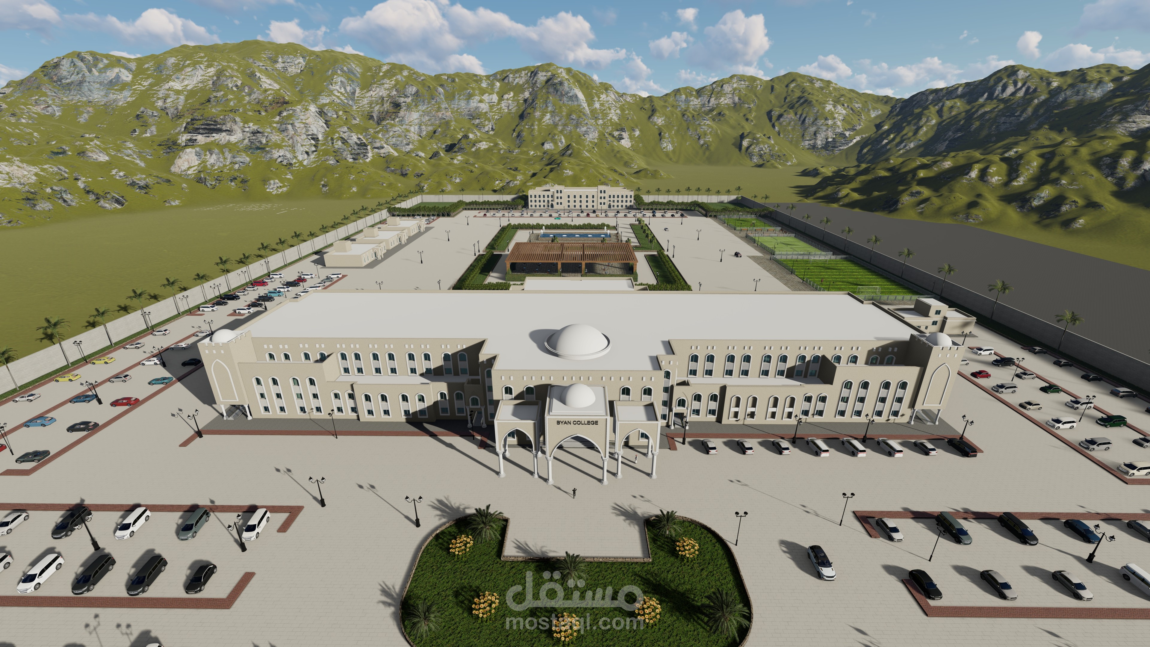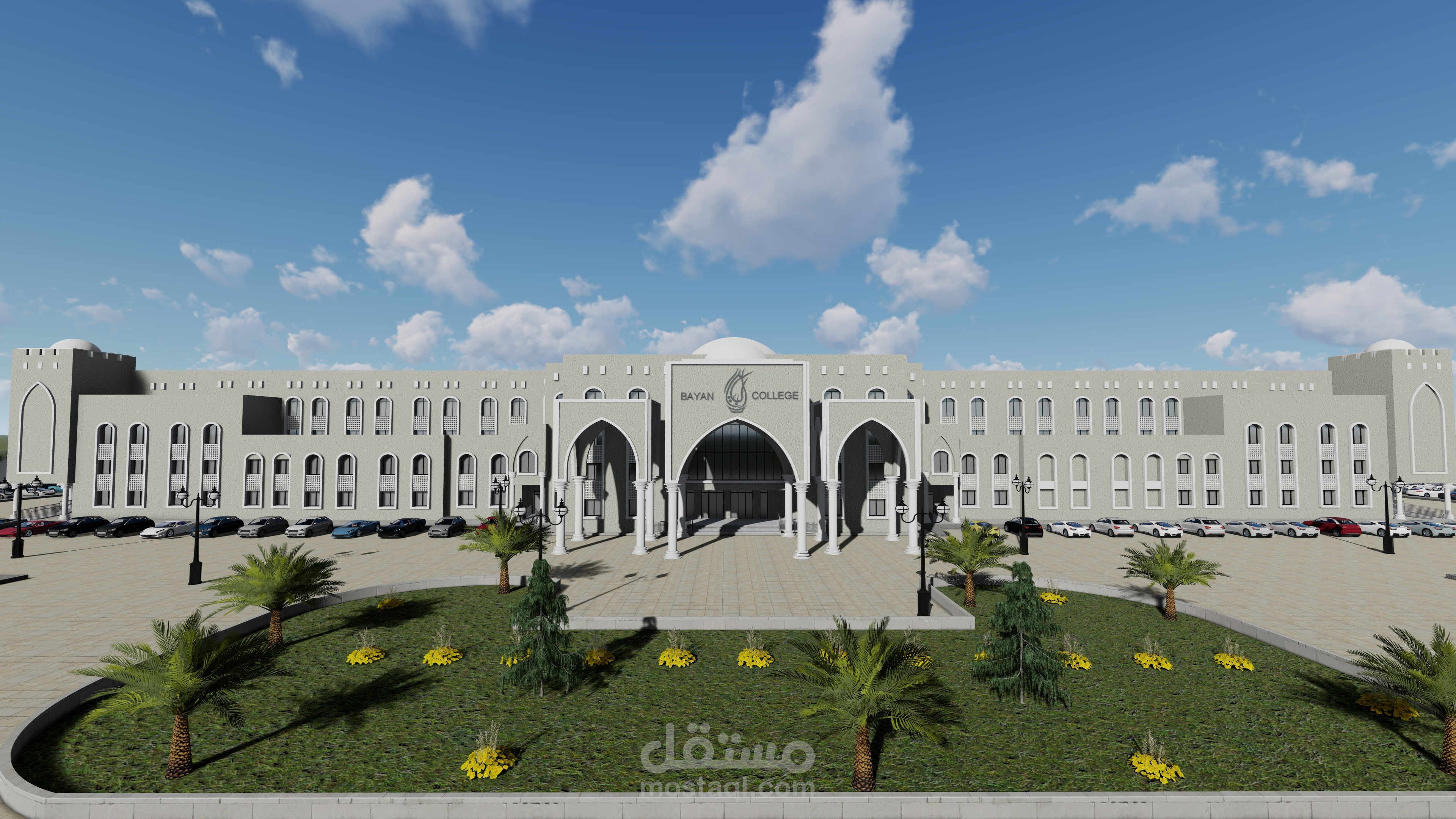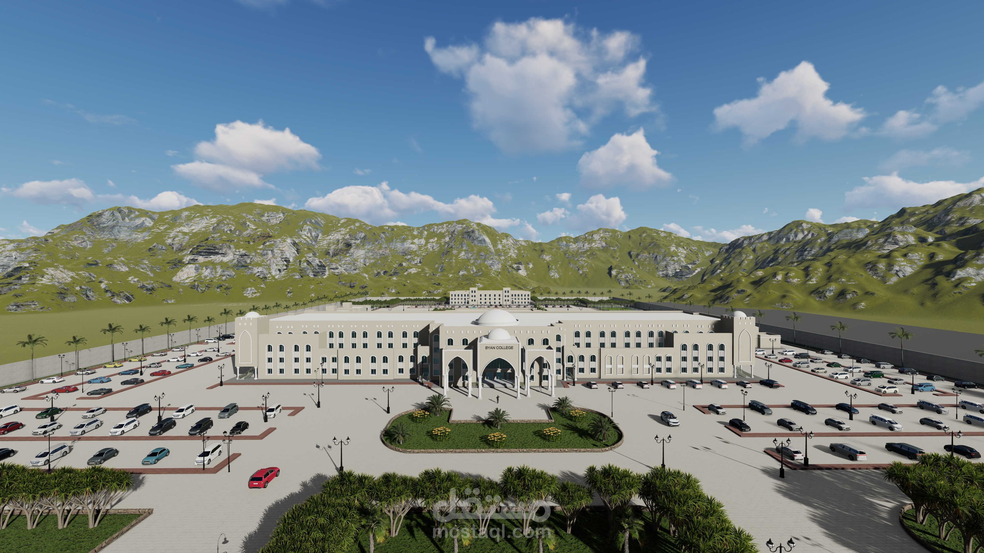 اعاده تصميم واضافه مباني بالجامعه ولاندسكيب وعمل فيديو قصير بكليه البيان بمسقط