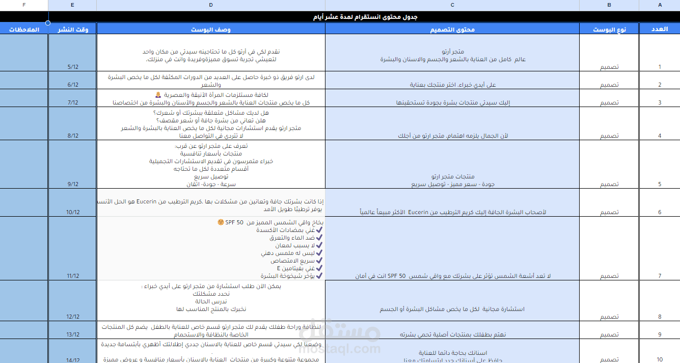 عملت على انشاء خطة محتوي احترافية لصالون رموش