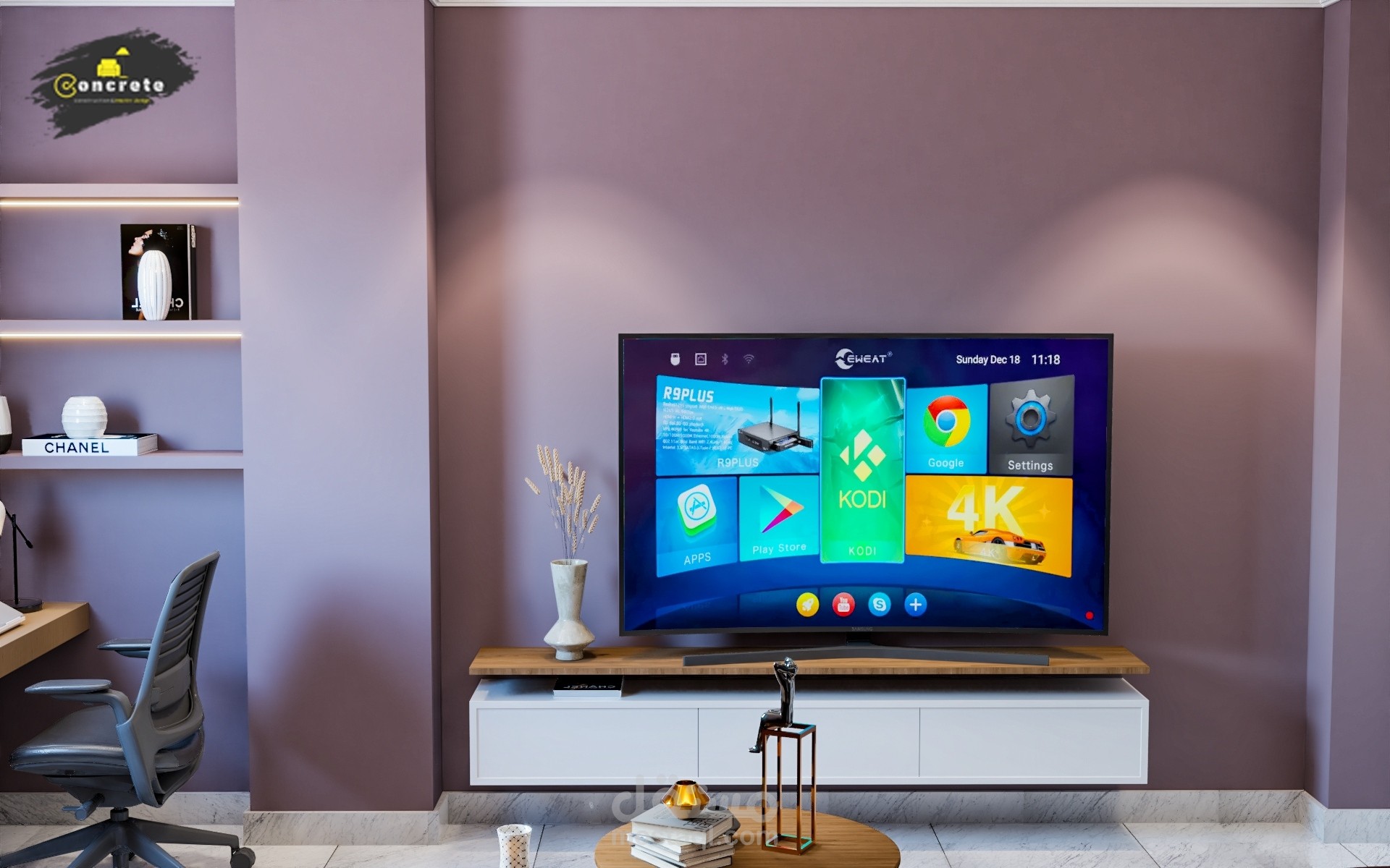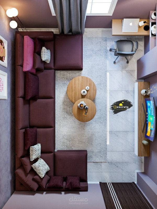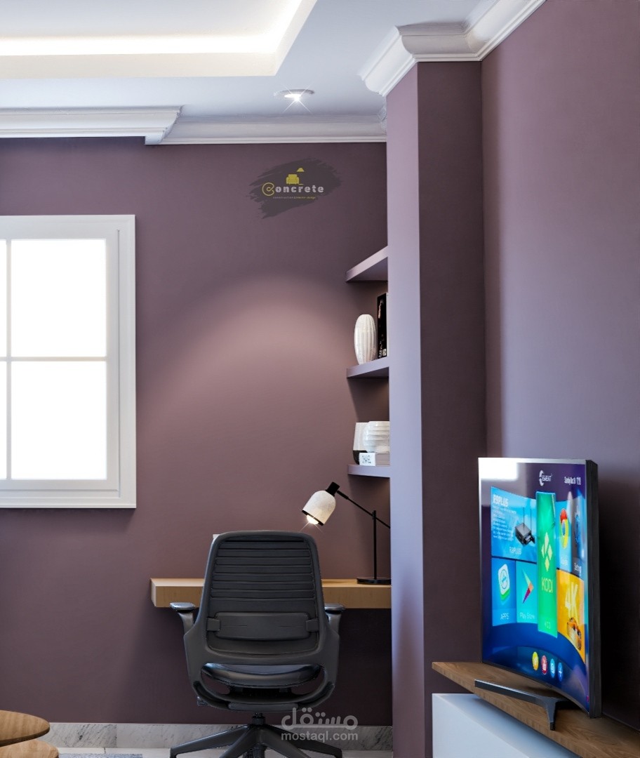 تصميم مودرن لغرفه معيشه ومكتب علي مساحه 16 متر مربع ليلبي احتياجات العميل و متطلباته واستغلال الغرفه افضل استغلال لها