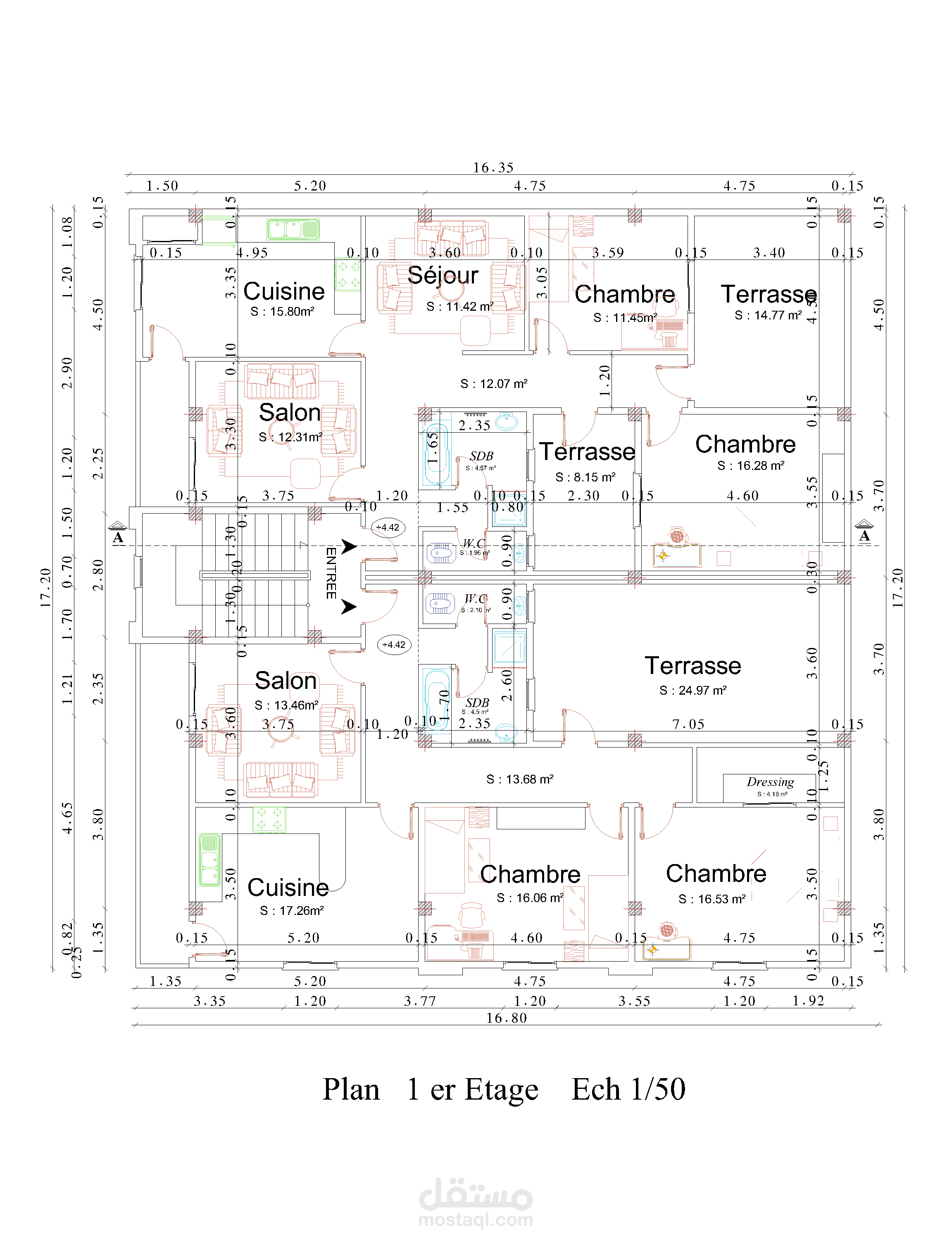 مشروع فيلا على مساحة 15م /16م ( 3 طوابق + سطح ) تم انجازها على حسب رغبة العميل