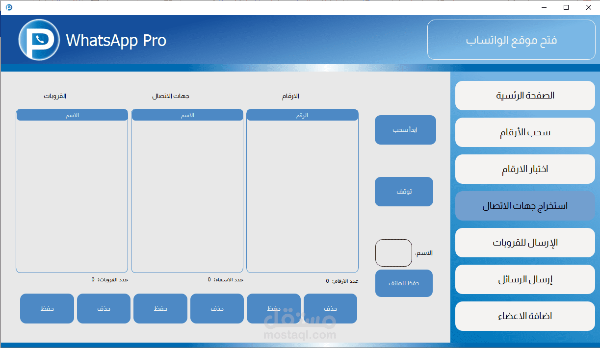 3- استخراج جهات الاتصال (الاسماء المحفوظه و الارقام غير المحفوظه والجروبات ) كل منهم في جدول
