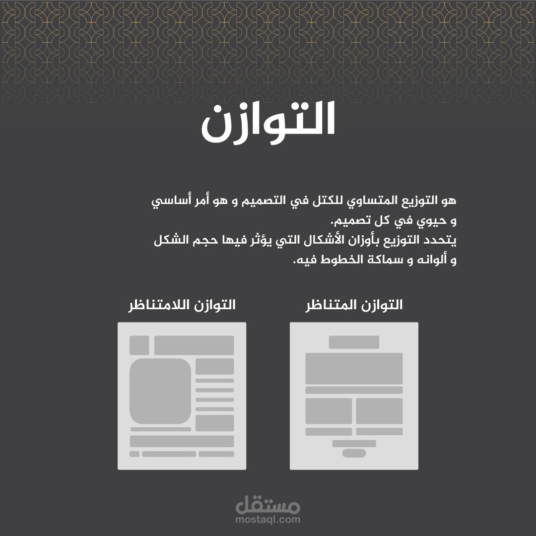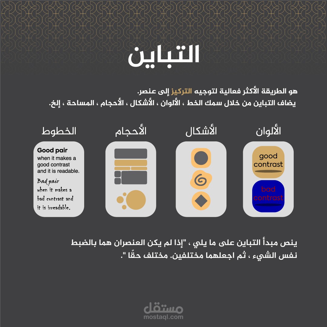 تصميم محتوى عن مبادئ التصميم و هي المبادئ التي يستخدمها كل مصمم محترف في تصاميمه.