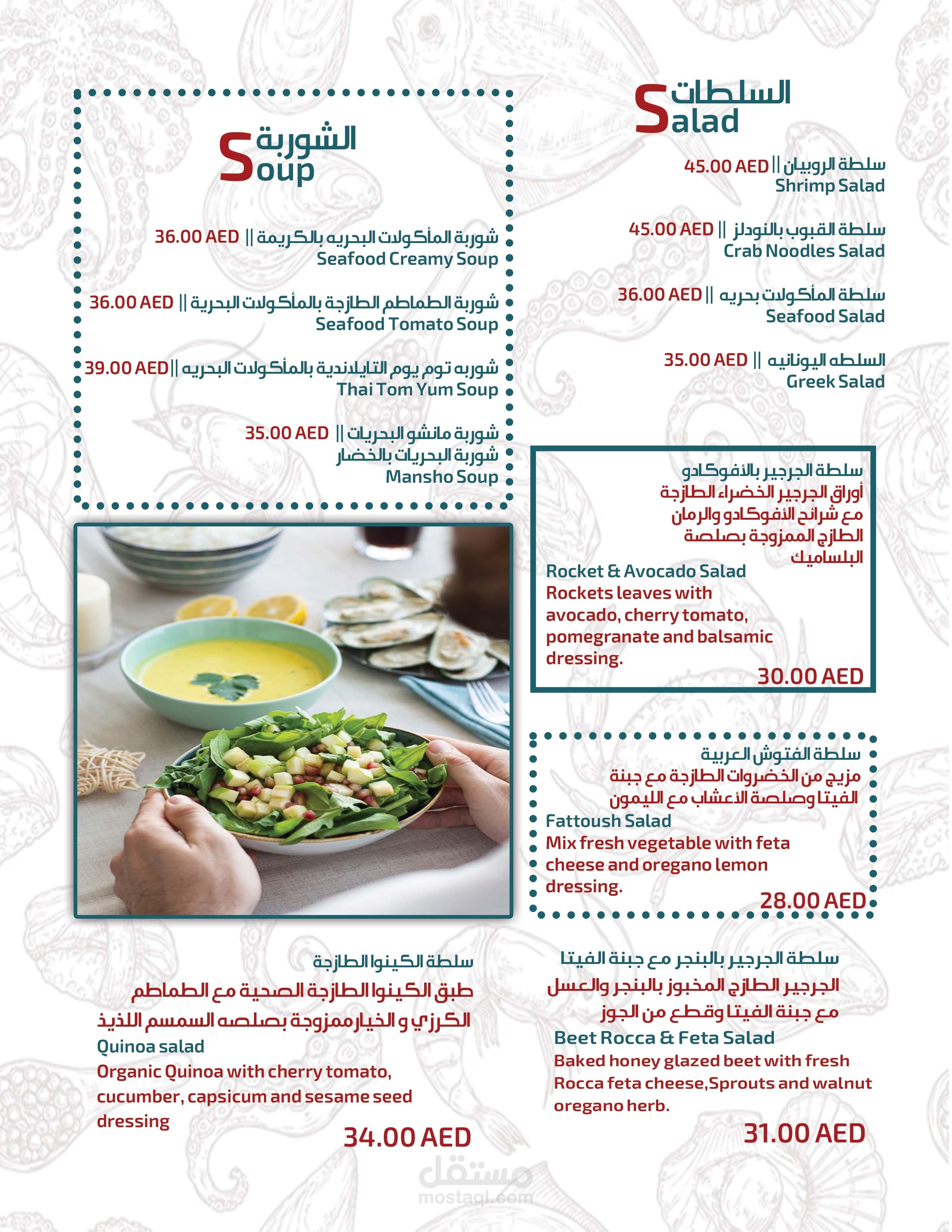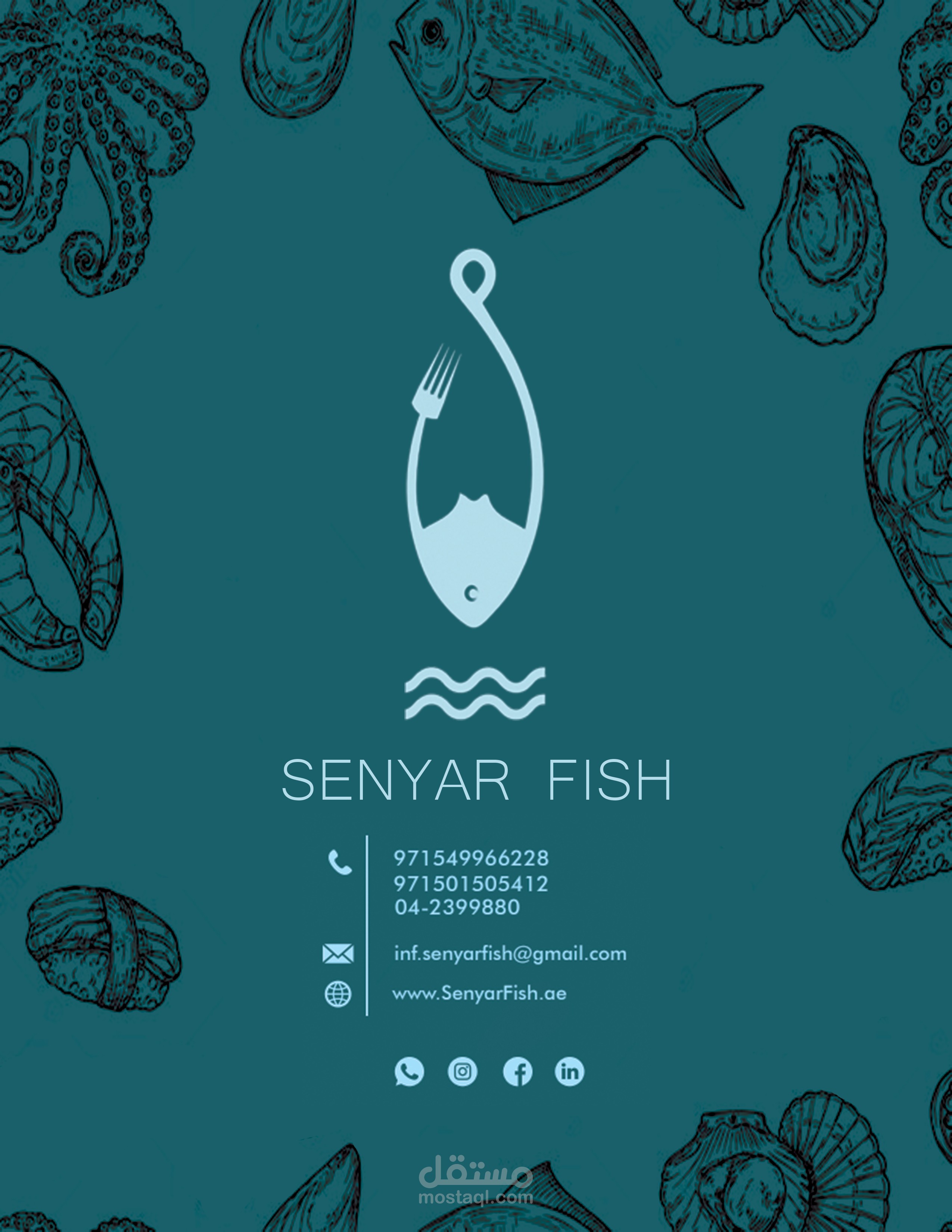تصميم منيو لمطعم سنيار للمأكولات البحرية