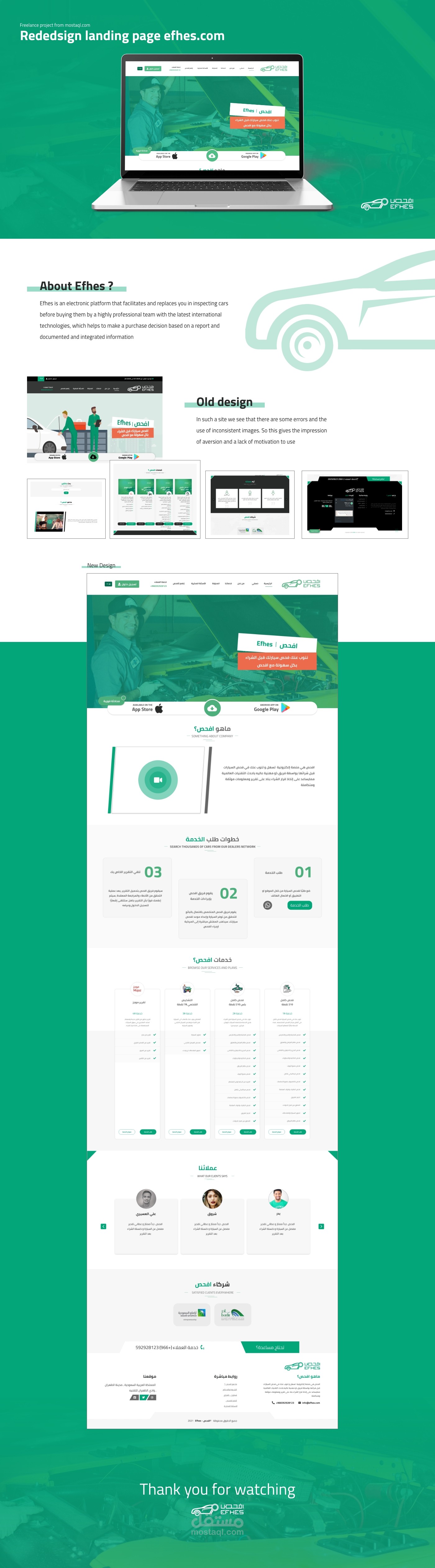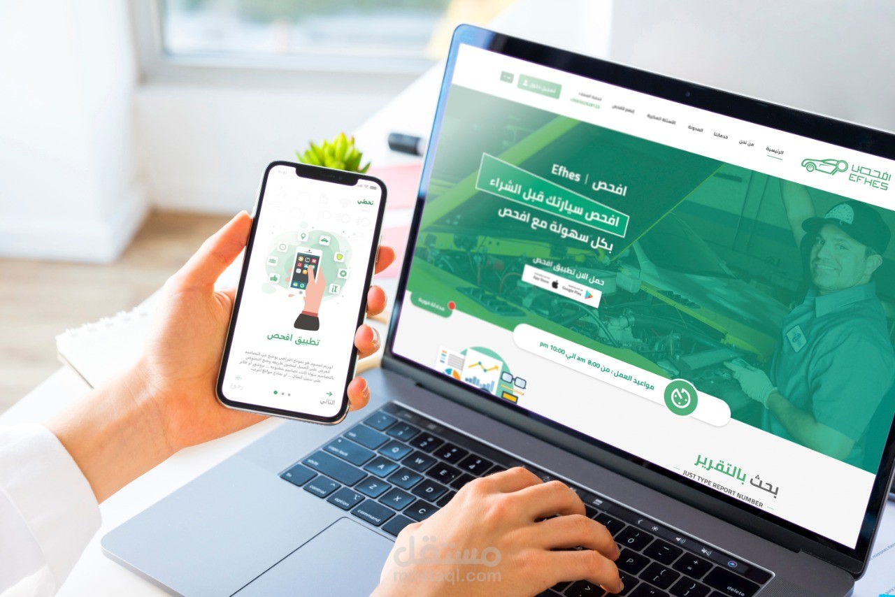 تصميم تطبيق كامل + تصميم landing page لموقع Efhas.com
