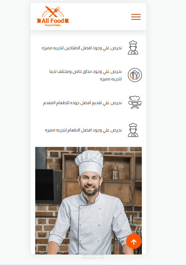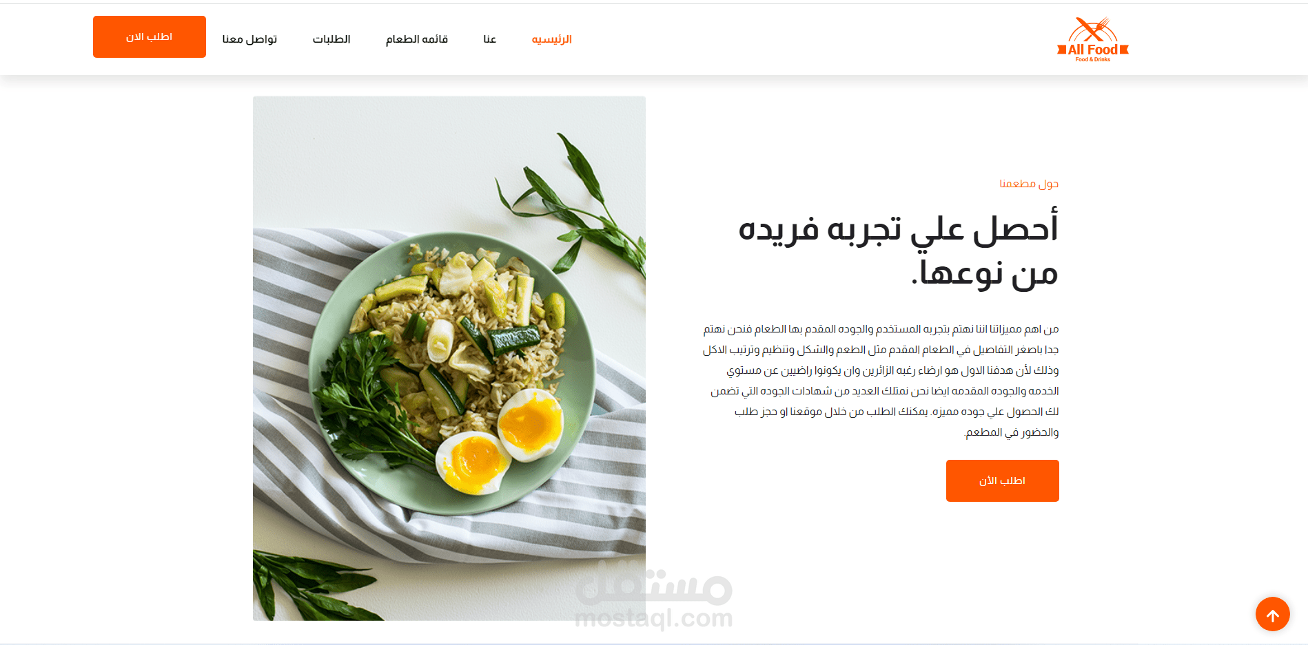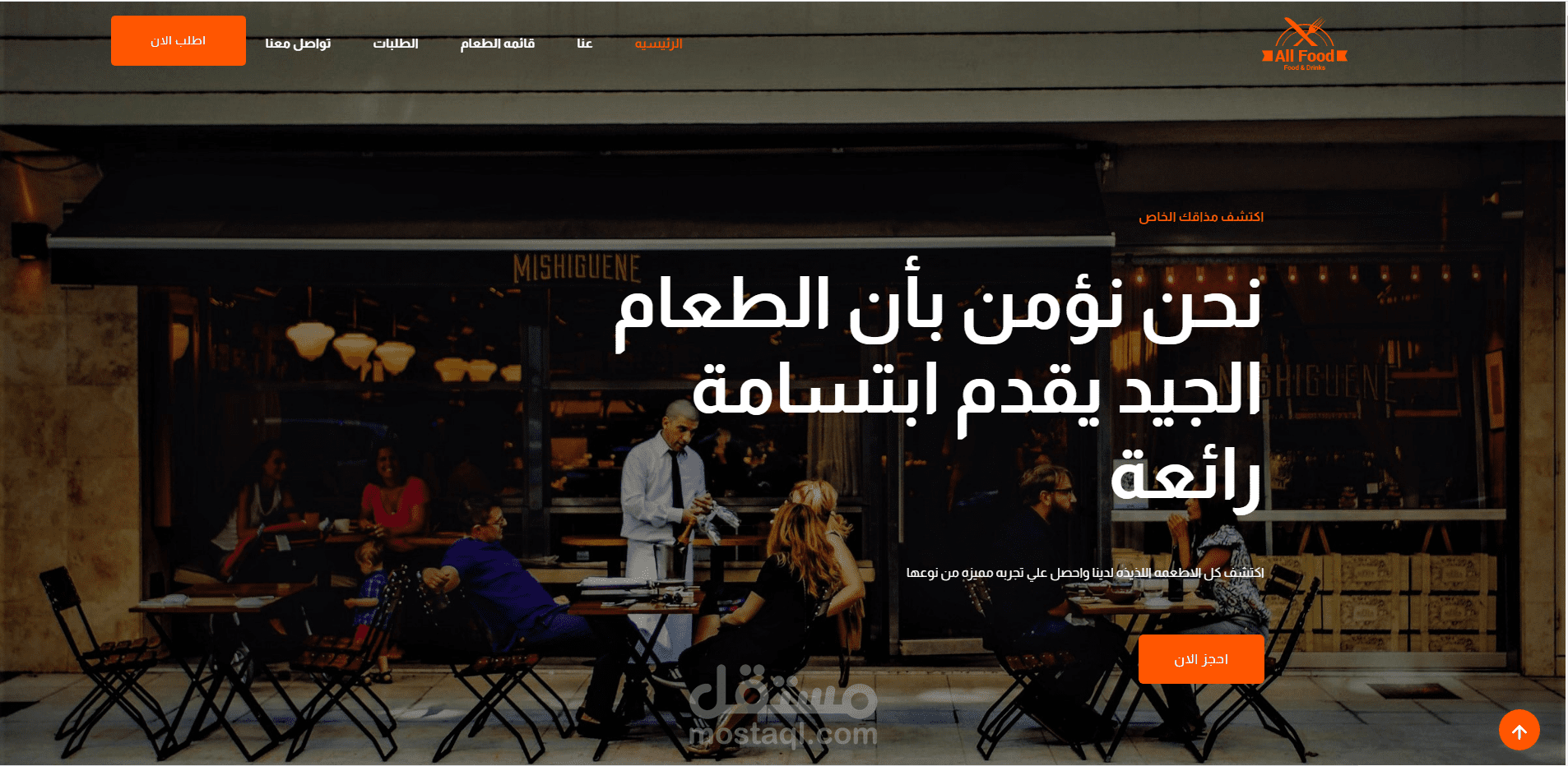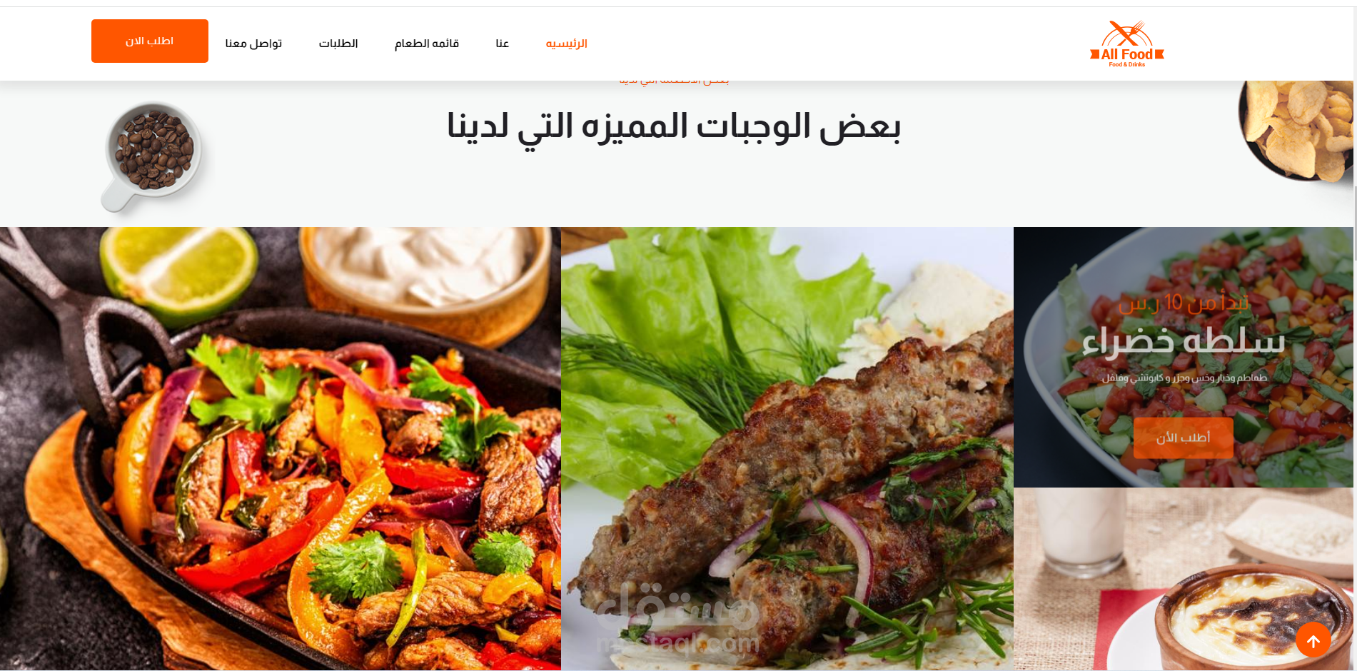 موقع لمطعم باللغه العربيه يحتوي علي الاتي :