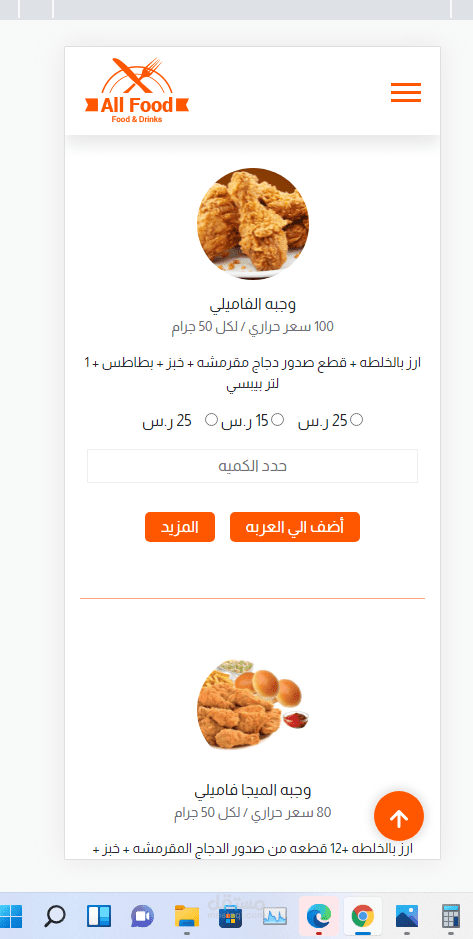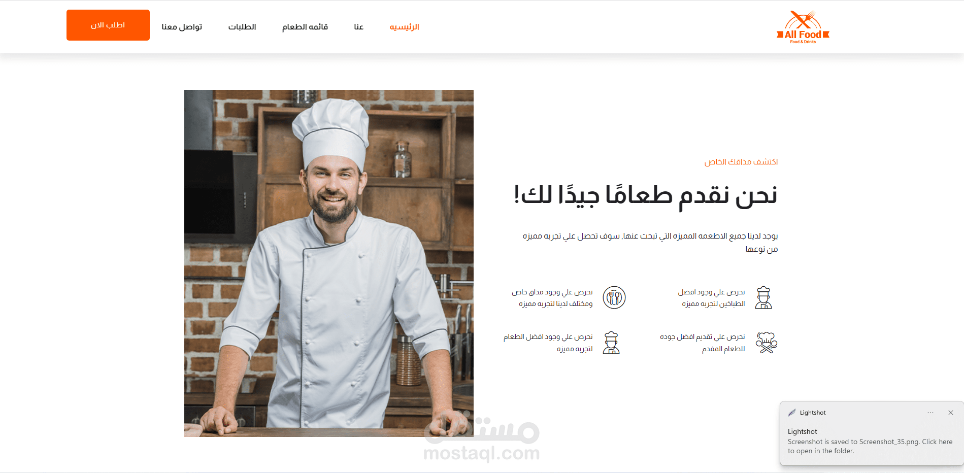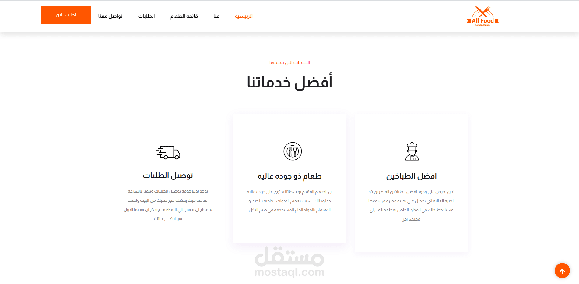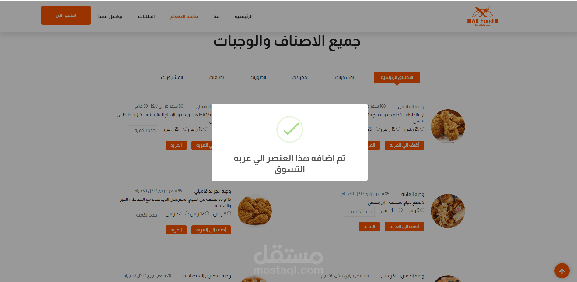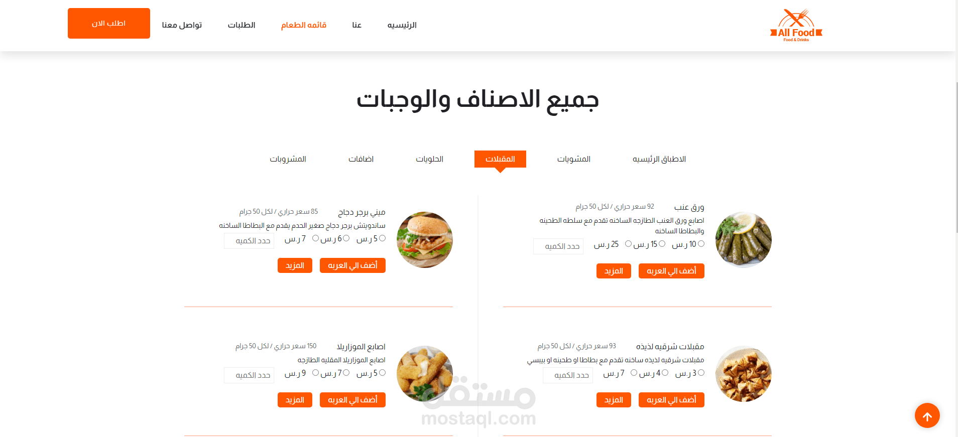 موقع لمطعم باللغه العربيه يحتوي علي الاتي :