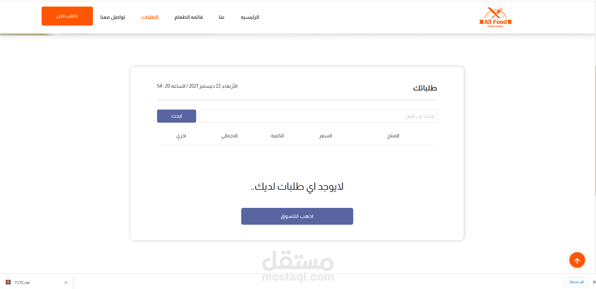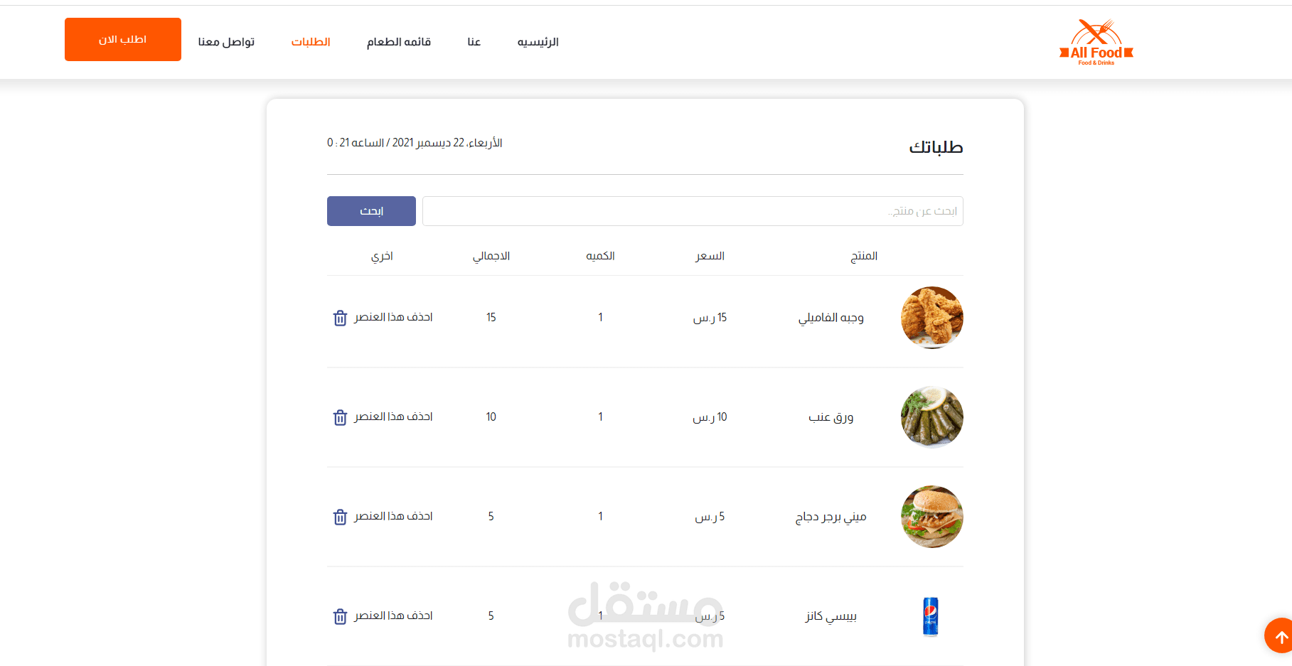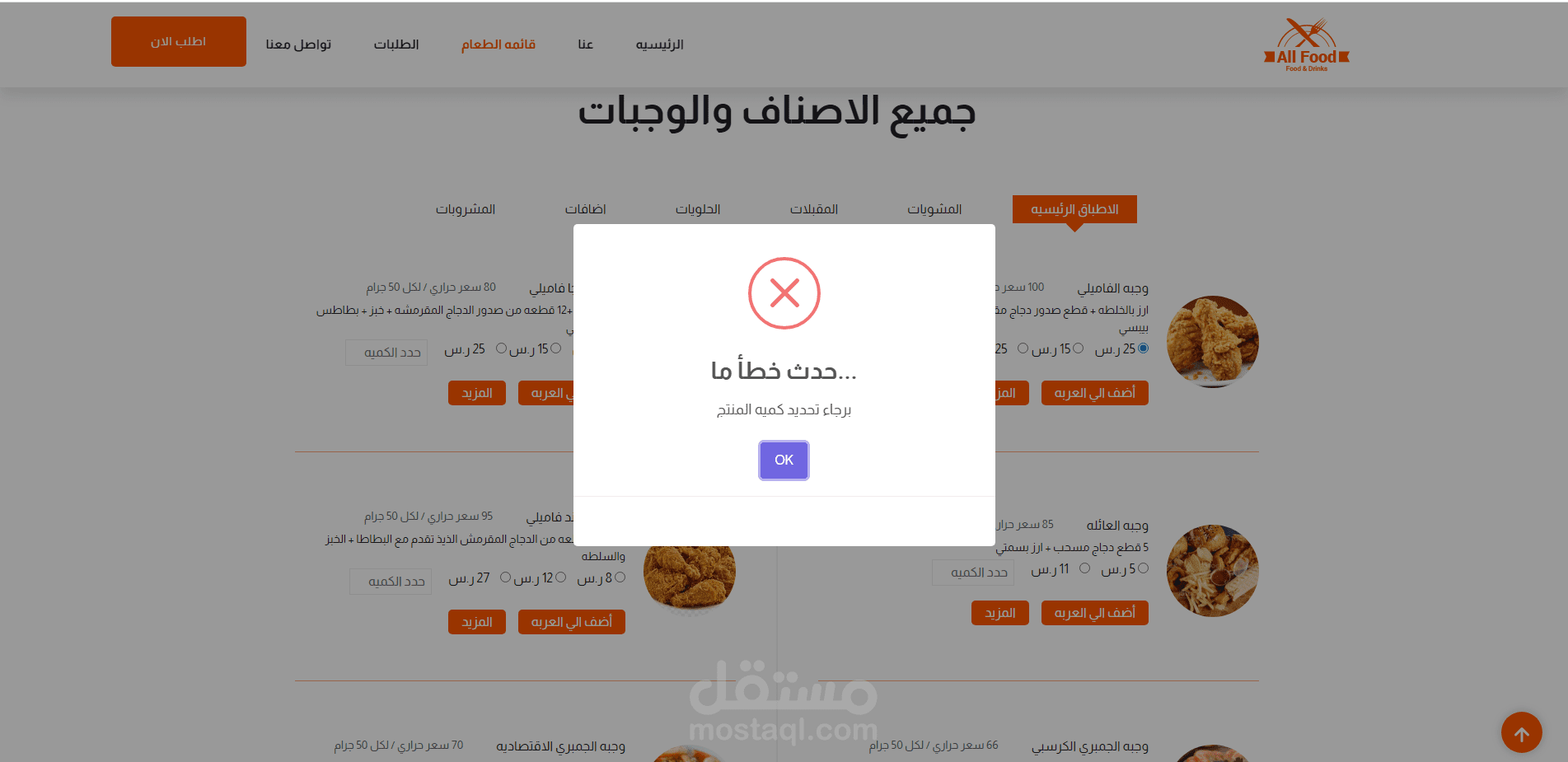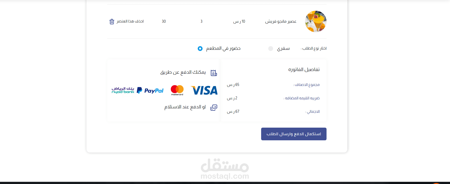 موقع لمطعم باللغه العربيه يحتوي علي الاتي :