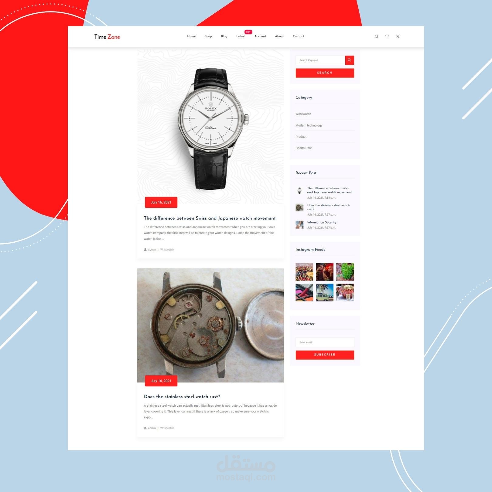 يحتوي الموقع على مدونة يوجد فيها مقالات مختلفة عن الساعات وصفحة بروفايل لكل مستخدم يمكن من خلالها تعديل لبياناته الشخصية وصفحة للتواصل مع إدارة الموقع .