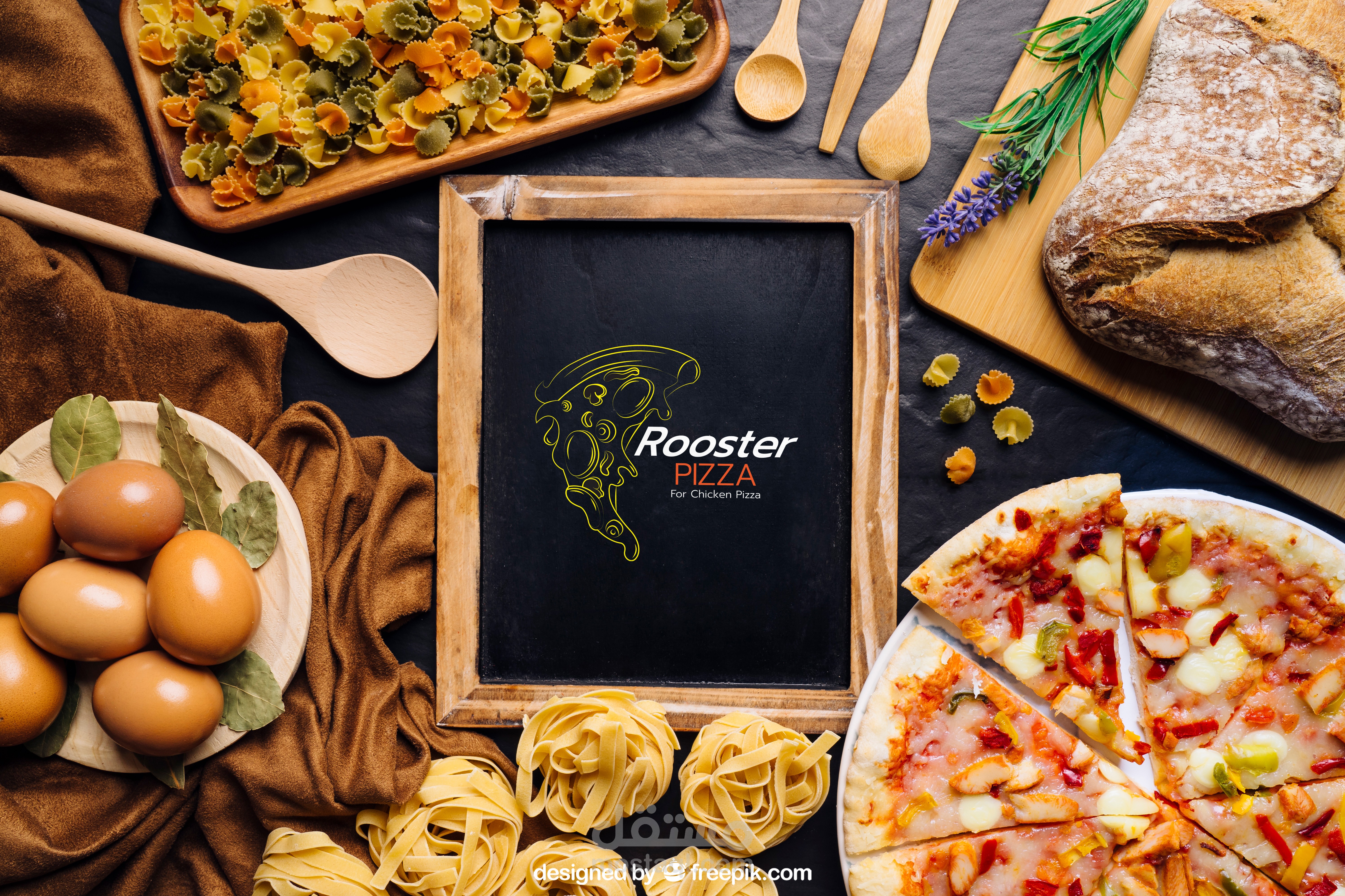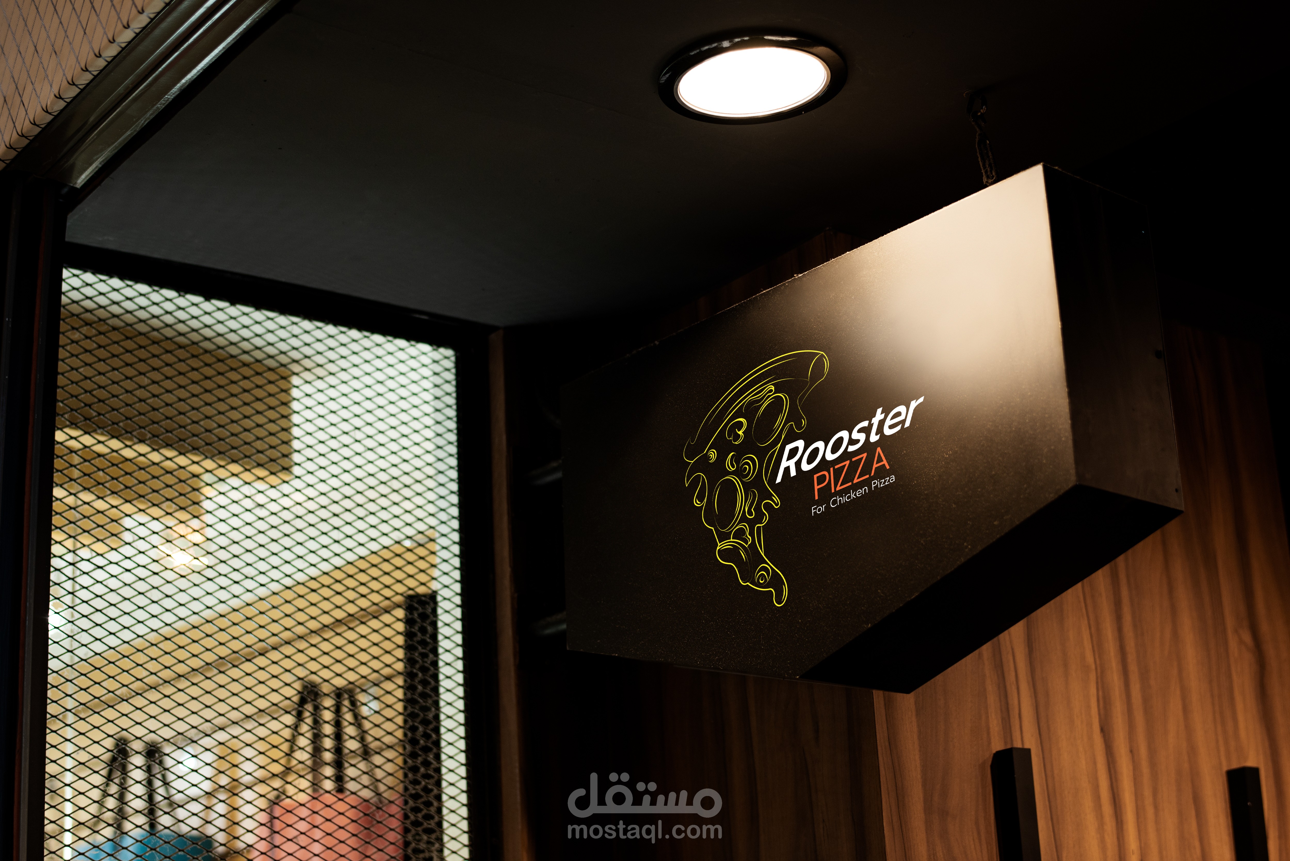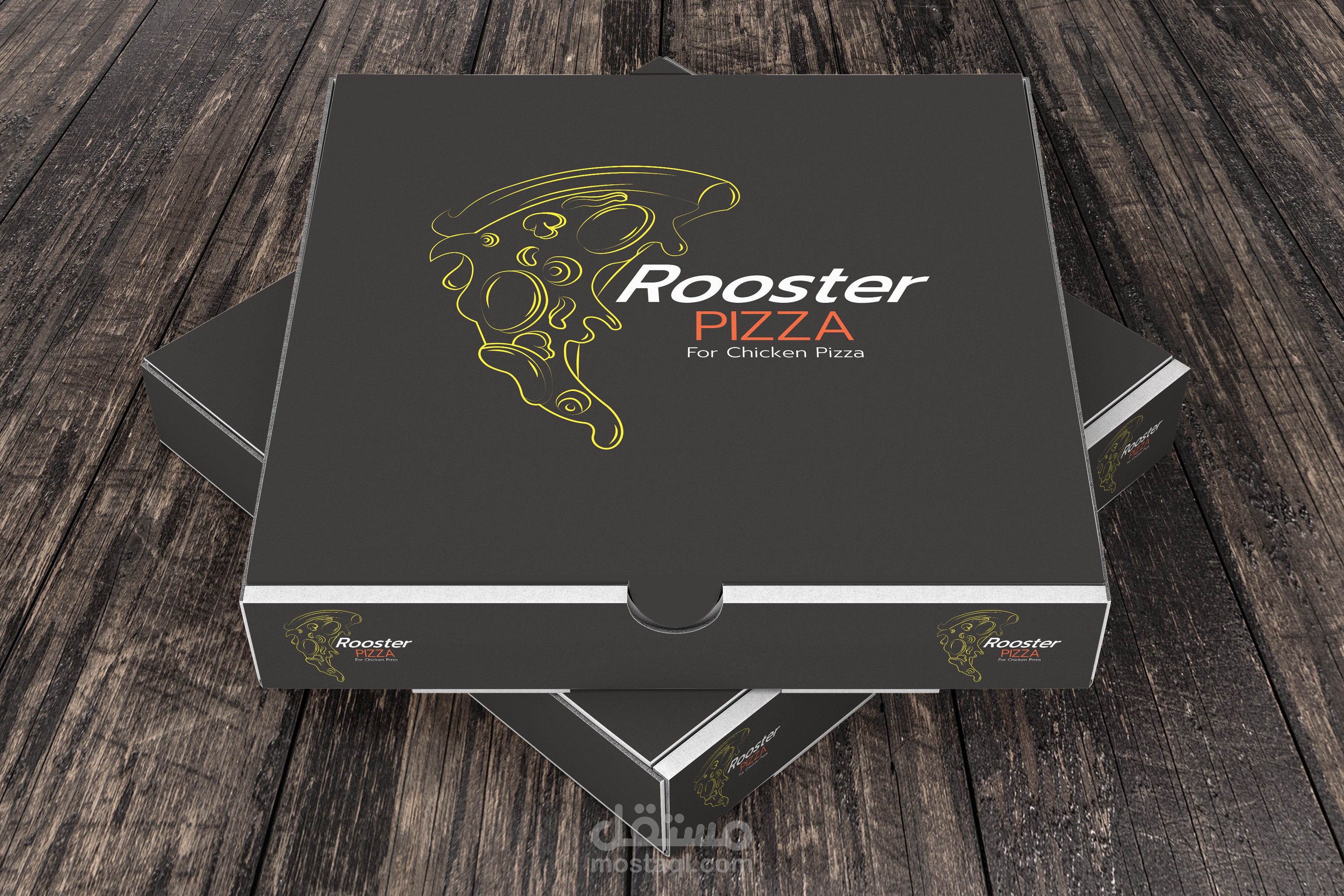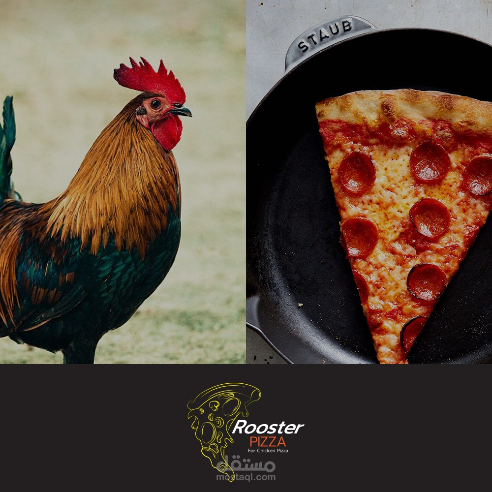 هذا التصميم يخص مطعم بيتزا و هو يتخصص فقط في بيتزا الدجاج لذا كانت الفكرة خلفه هو اظهار ان الشعار يوضح فكرة انه يختص في بيتزا الدجاج فا قمت بادماج قطعة البيتزا و وجه الدجاجة في ذلك الشعار
