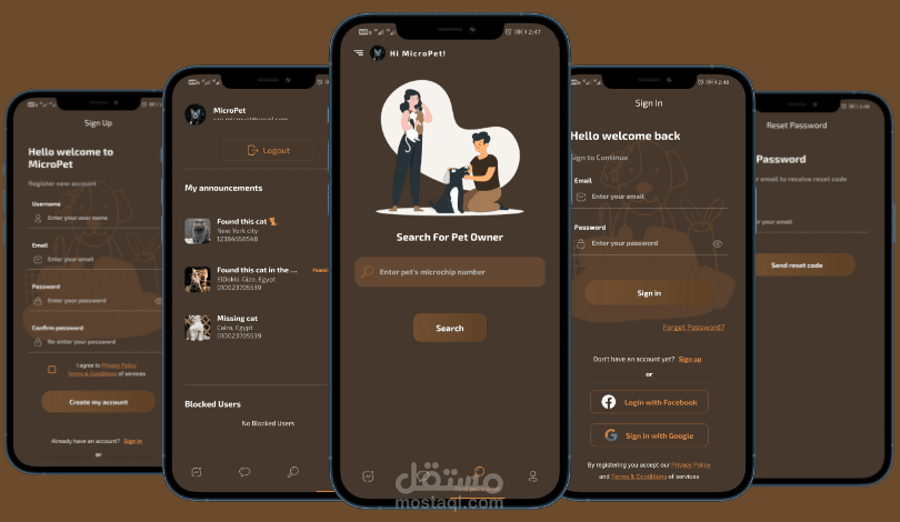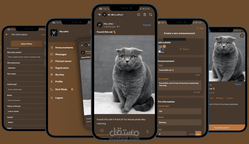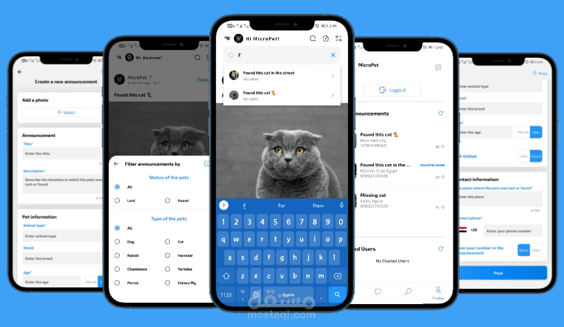 2- الجزء التاني هو عبارة عن Social App لو حد ضاع منه القط او الكلب بتاعه او واحد لقى حيوان ضايع من صاحبه و مش مركب شريحة Microchip ... يقدر يكتب بوست بصورة الحيوان والتفاصيل ومعلومات التواصل و ممكن التواصل من خلال الشات في البرنامج او الاتصال
