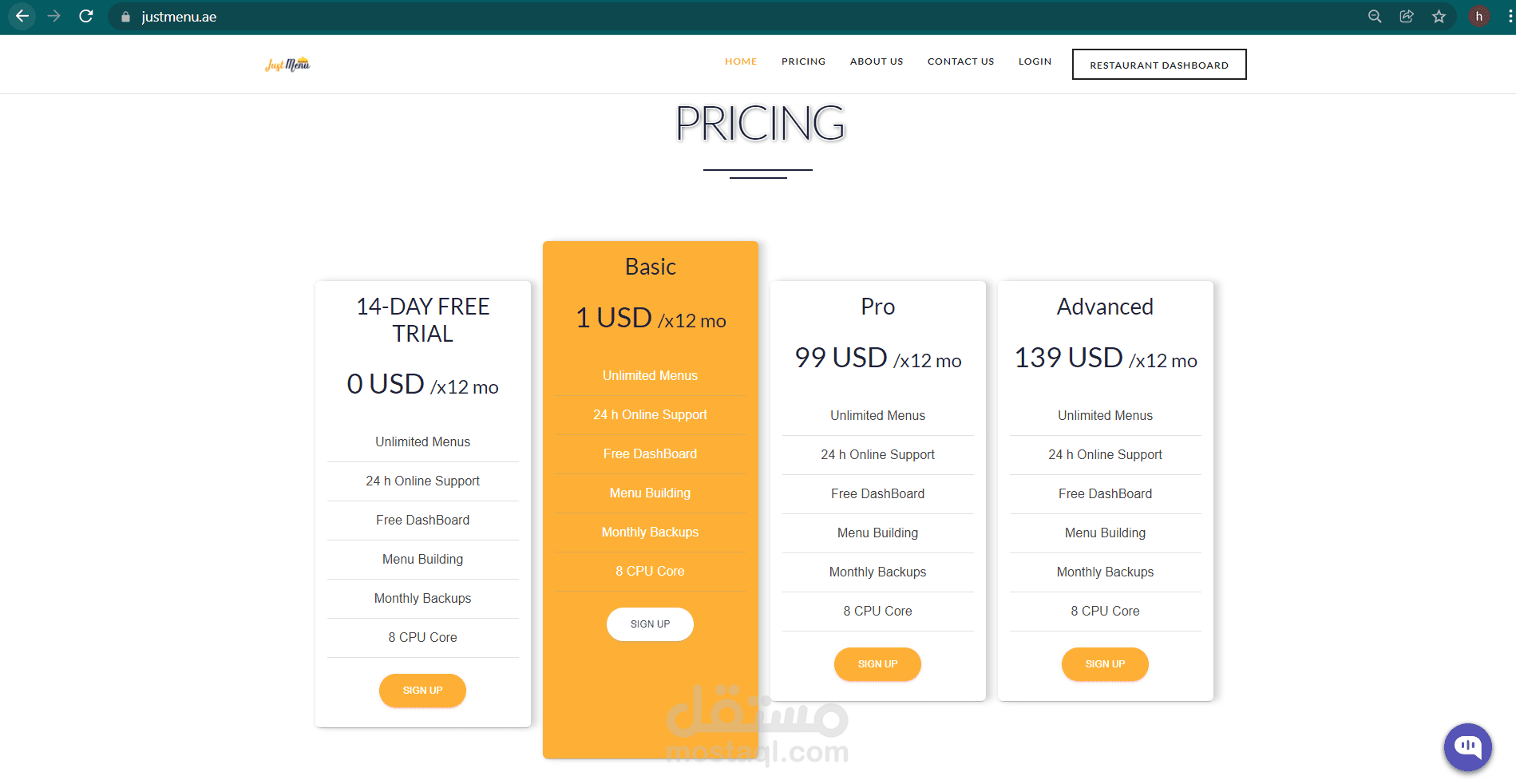 Just Menu For Restaurant