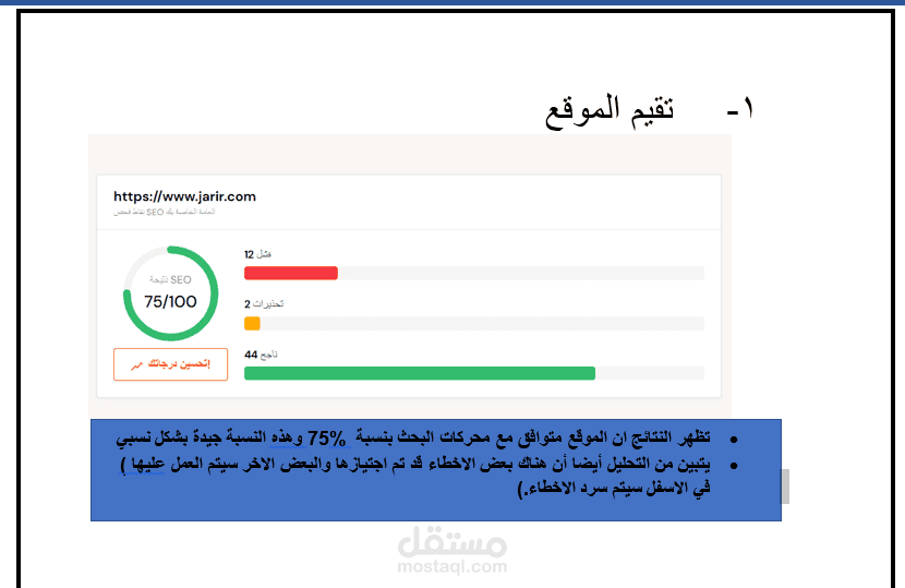 تم عمل خطة seo لمكتبة جرير وبيان الكلمات المفتاحية وتحليل الموقع ومدى توافقه مع الاداء لتصدر الموقع ضمن نتائج البحث الاولى