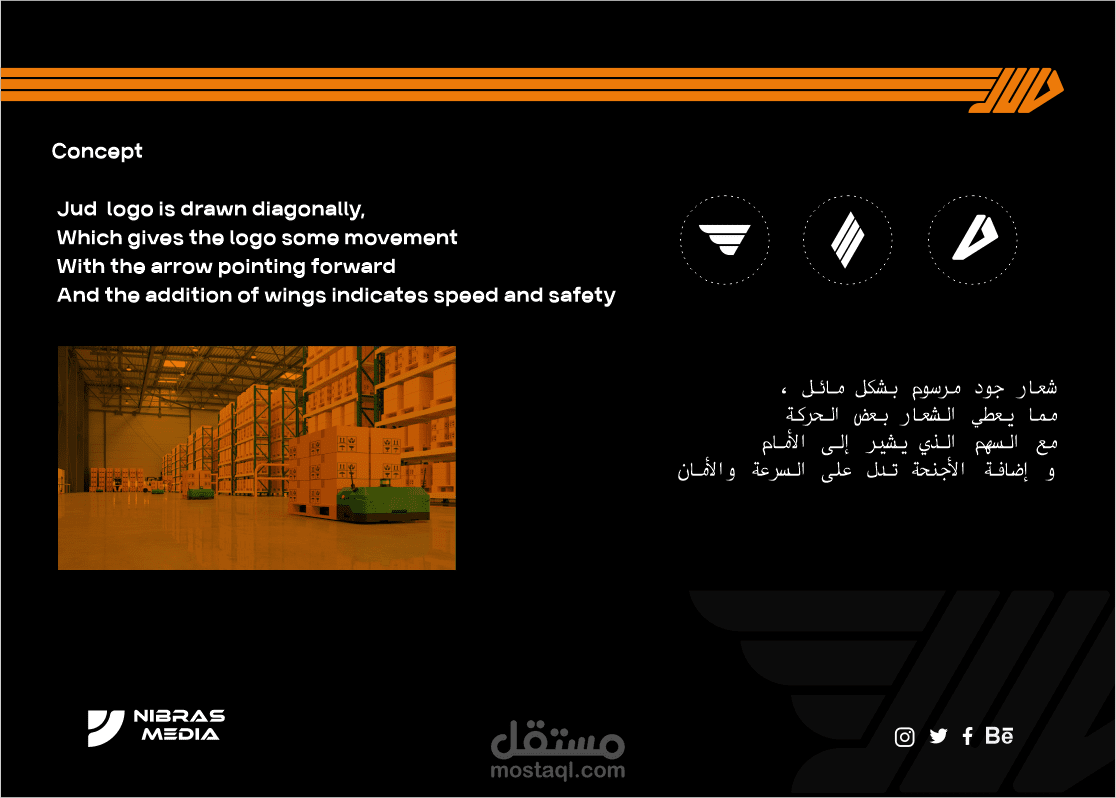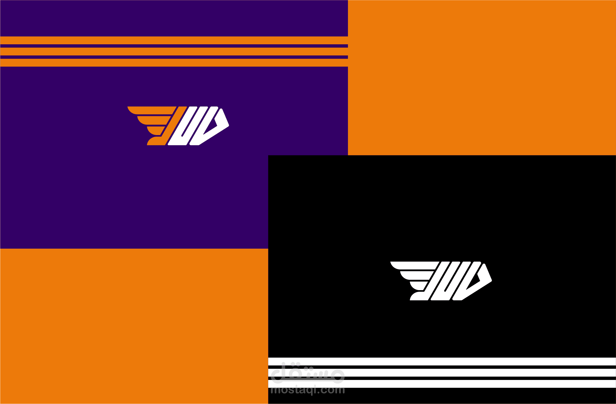 تم دمج الجناح ليدل على السرعة مع رسم حرف D على شكل سهم متجه الى الامام