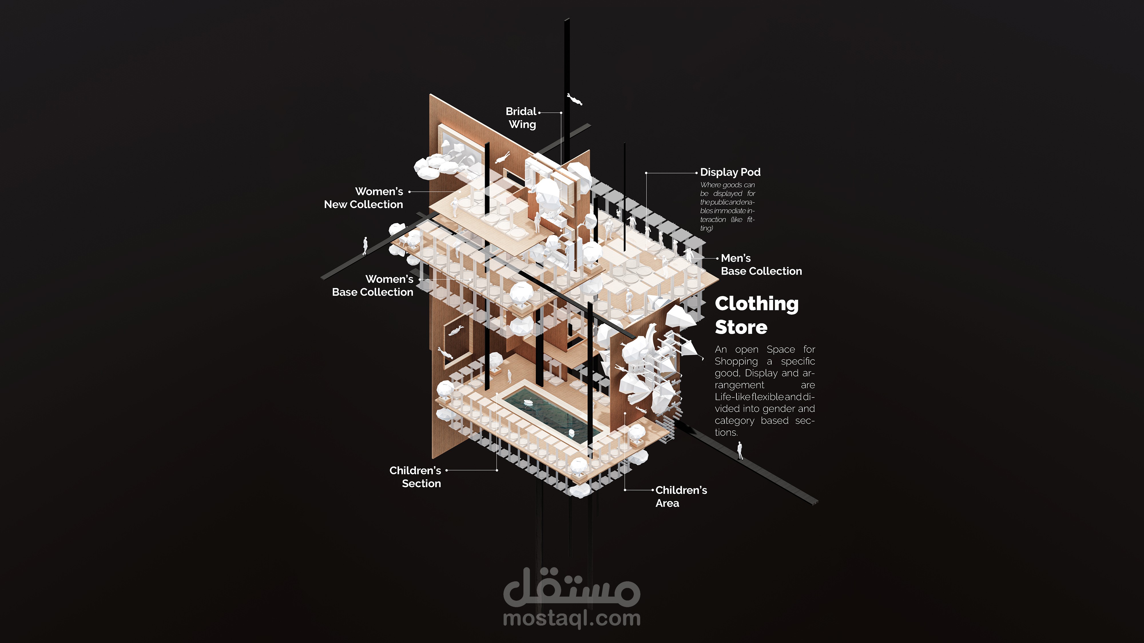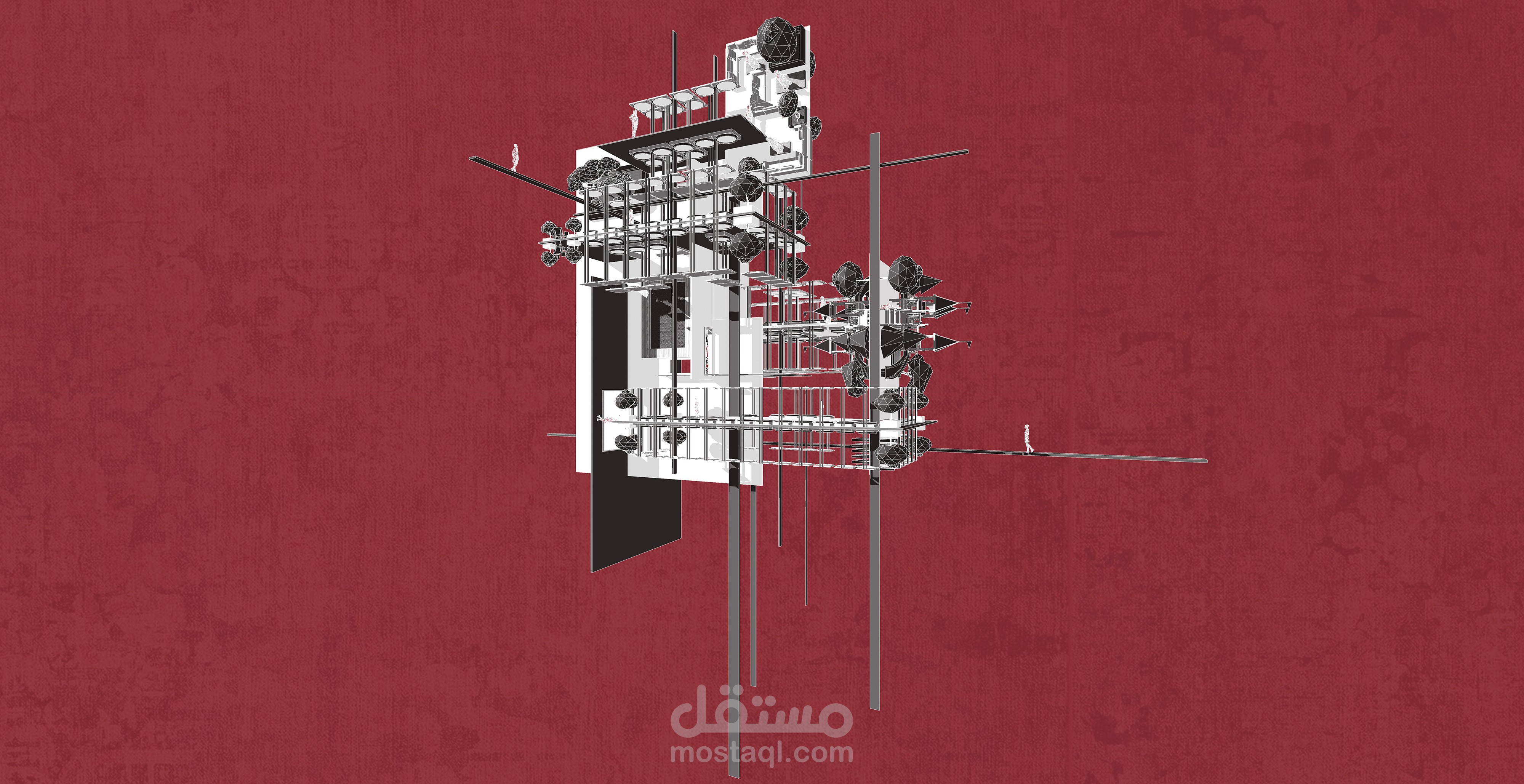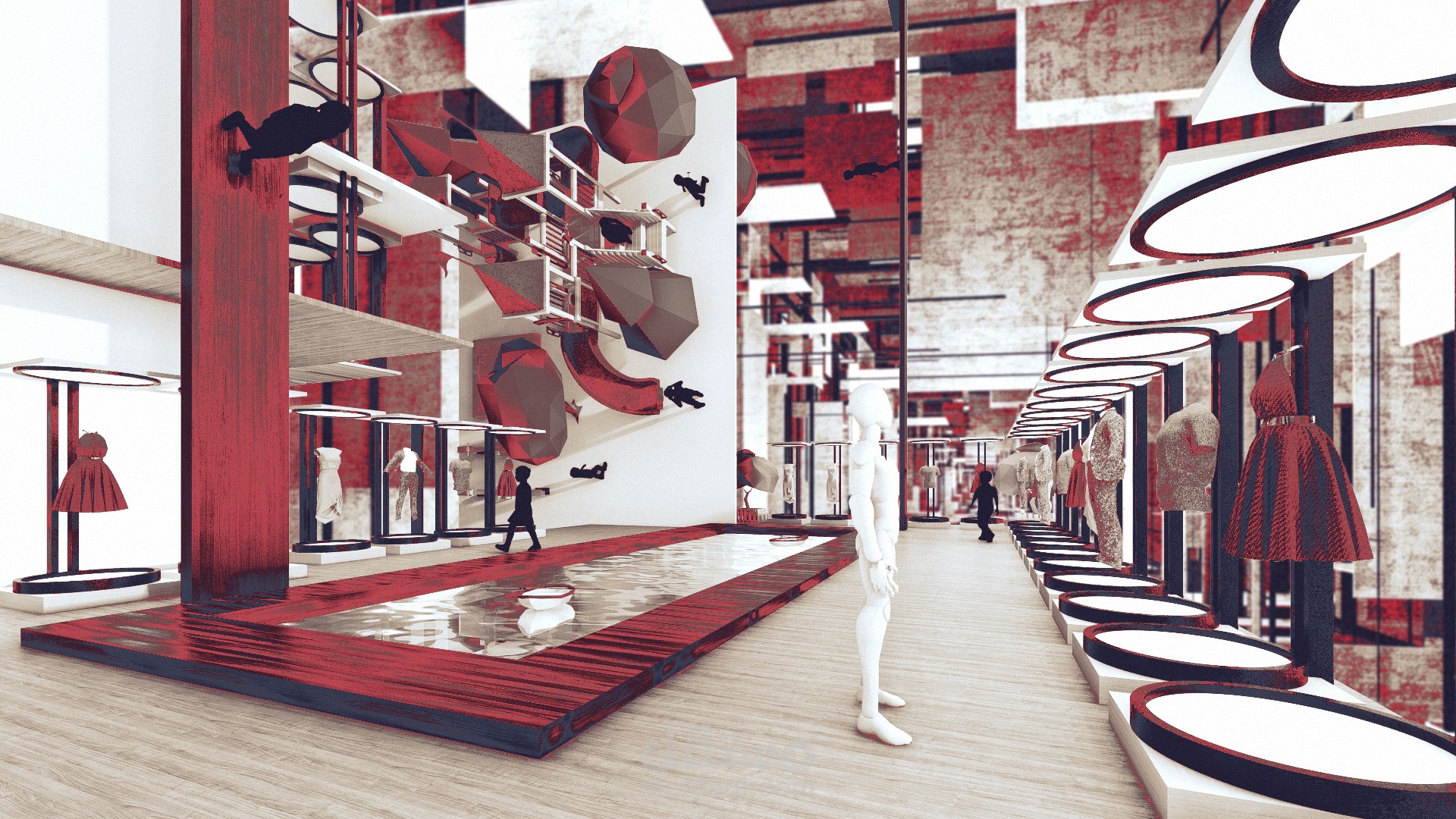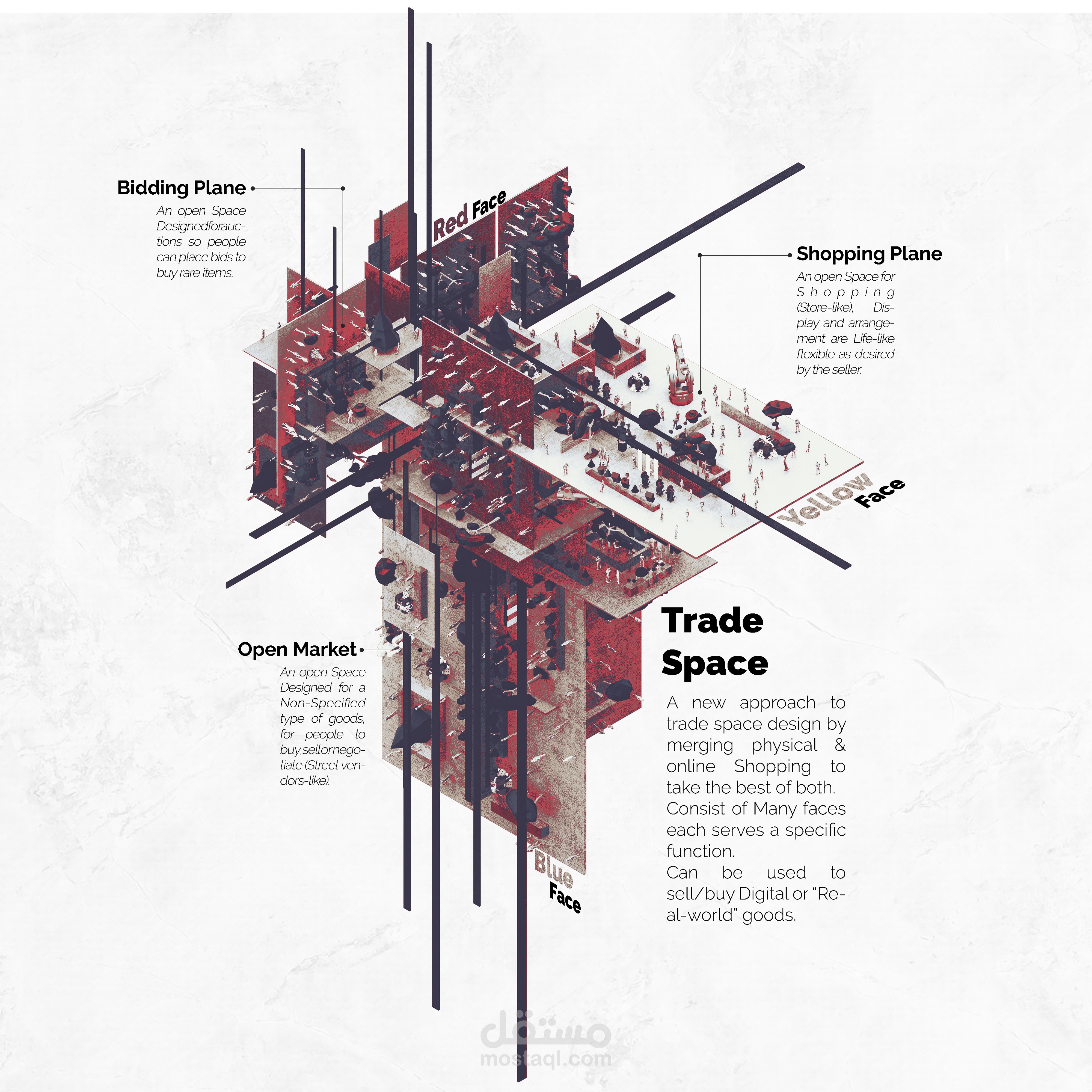 The Trade-Space focuses on infinite space, consist of intersecting planes and pathways to form an uneven grid that when combined form stores that keep expanding.