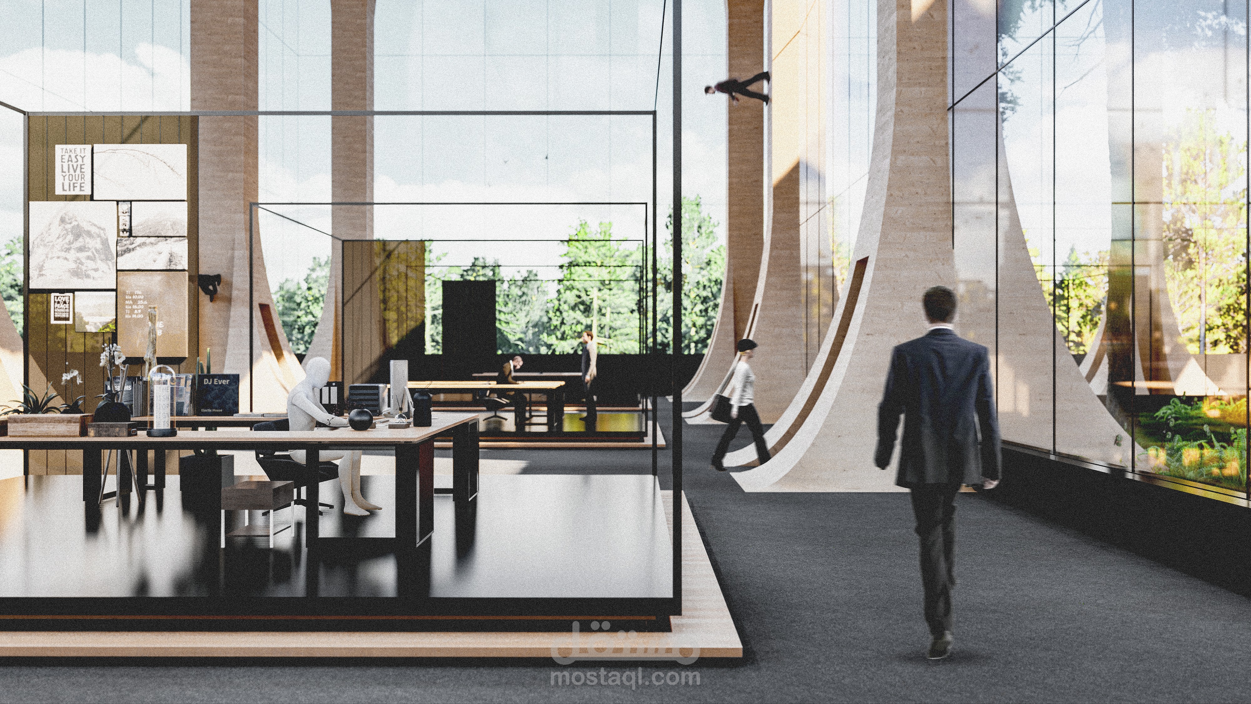 The Work-Space focuses on the variation of perspective, how one space can be many, the representation of a higher power and how to break this capitalist idea by making an individual platform that flies around the space (can transport him/er wherever he/she wants).