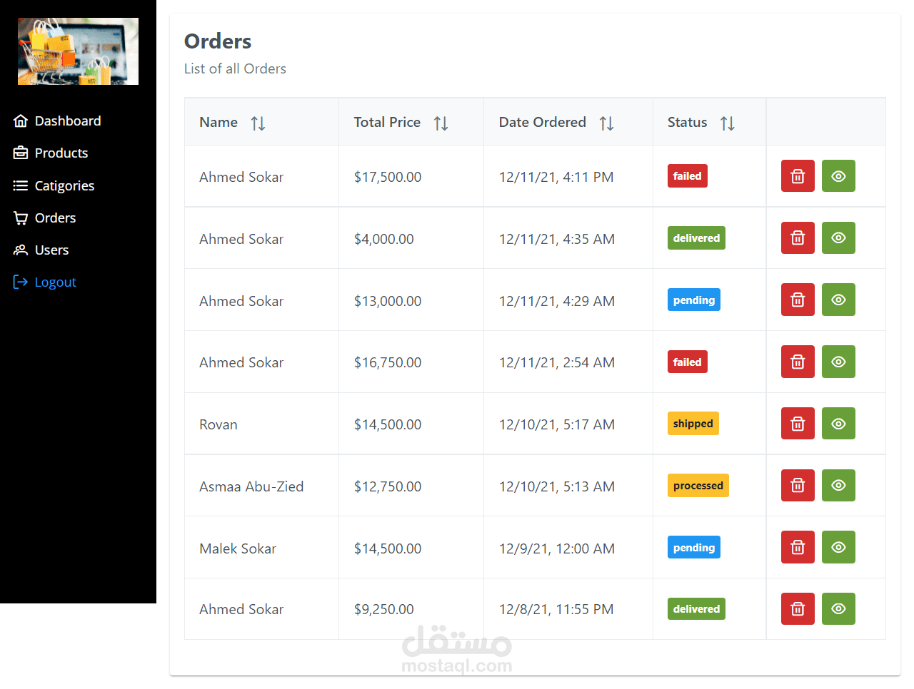 4- Admin Order details page and Changing the orders states (shipped, delivered ..).