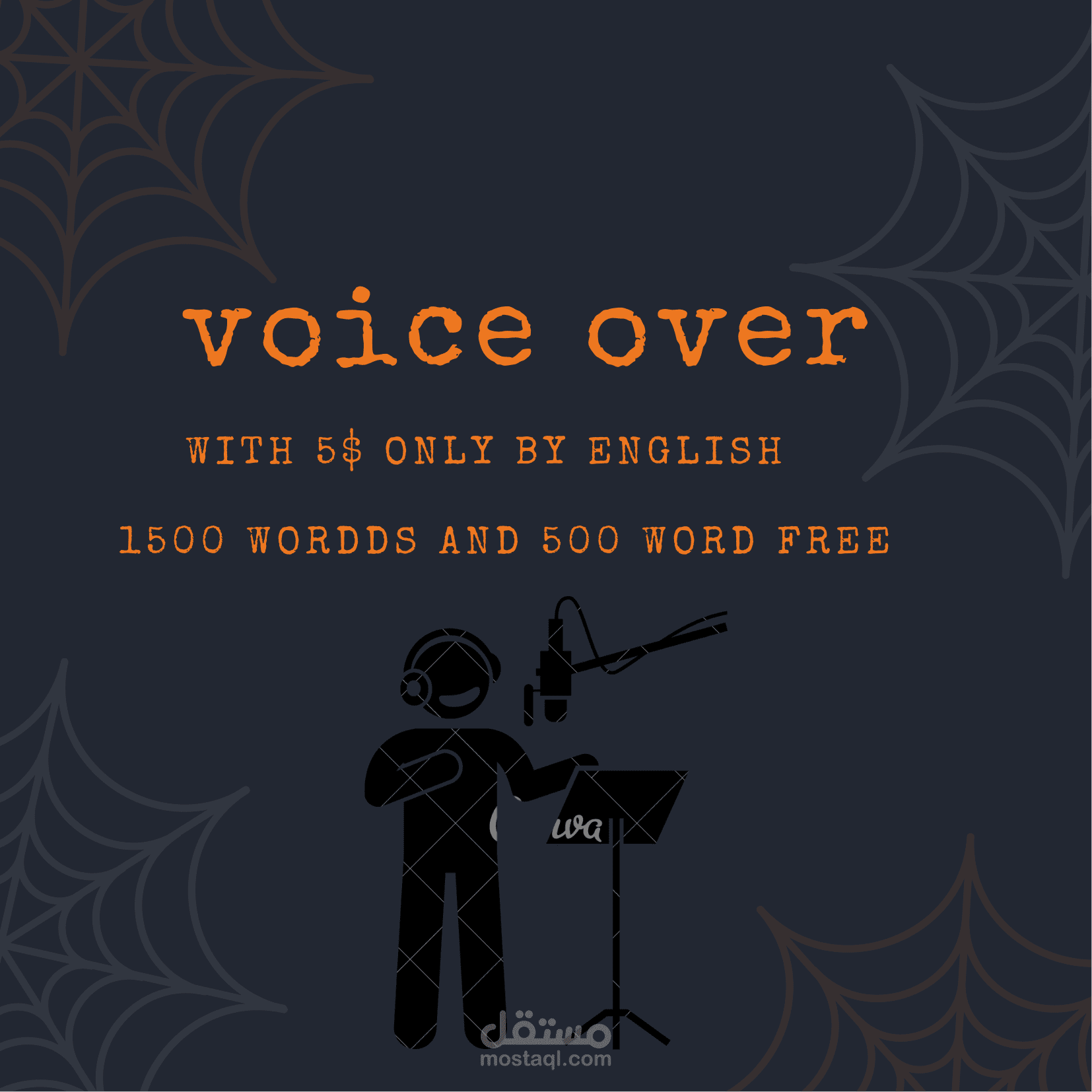 اراد عميل مني عمل voice over لفديو له و أنا معلق صوتي باللغة الإنجليزية اعمل في هذا المجال لمدة خمس سنوات وعملت في شركات كبيرة و عملت هنا لكي ازيد دخلي و أنا املك العديد من المهارات الاخرة مثل الترجمة من اللغة العربية الي الإنجليزية أو العكس و من اللغة الفرنسية الي العربية و الإنجليزية أو العكس و قد عملت في مجال الترجمة لمدة سنتان وقد عملت في مجال Transcript لللغة العربية و الإنجليزية و الفرنسية وعملت في العديد من مواقع العمل الحر