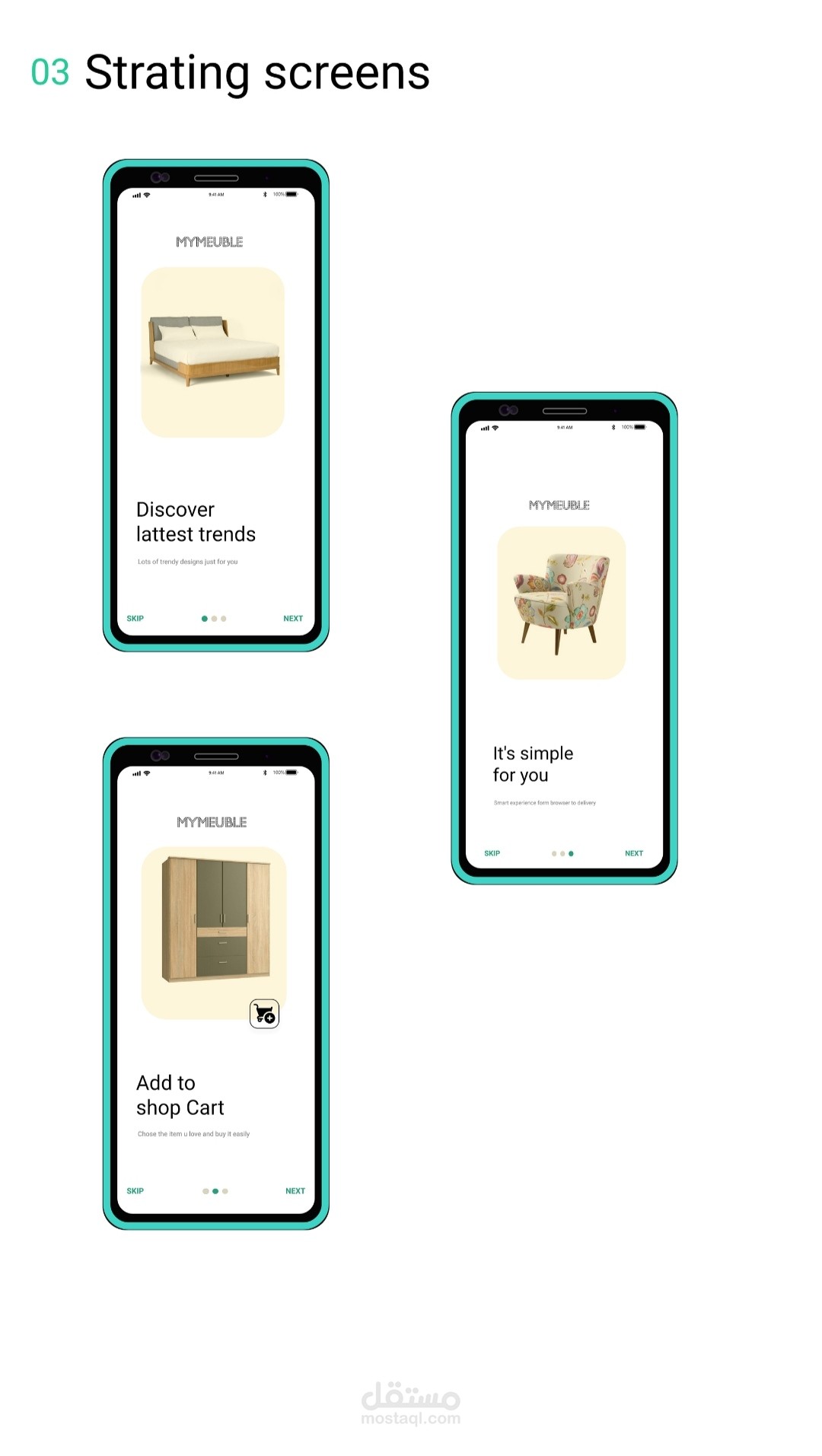 تصميم عصري UI/UX لتطبيق لبيع الاثاث بمختلف التصميمات و الاذواء المعاصره بنائنا علي اختيارك و ويوجد ايضا دفع اليكتروني.