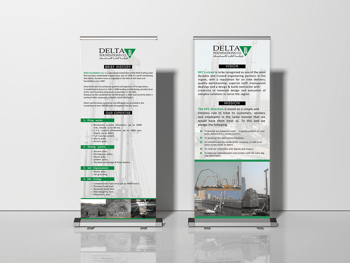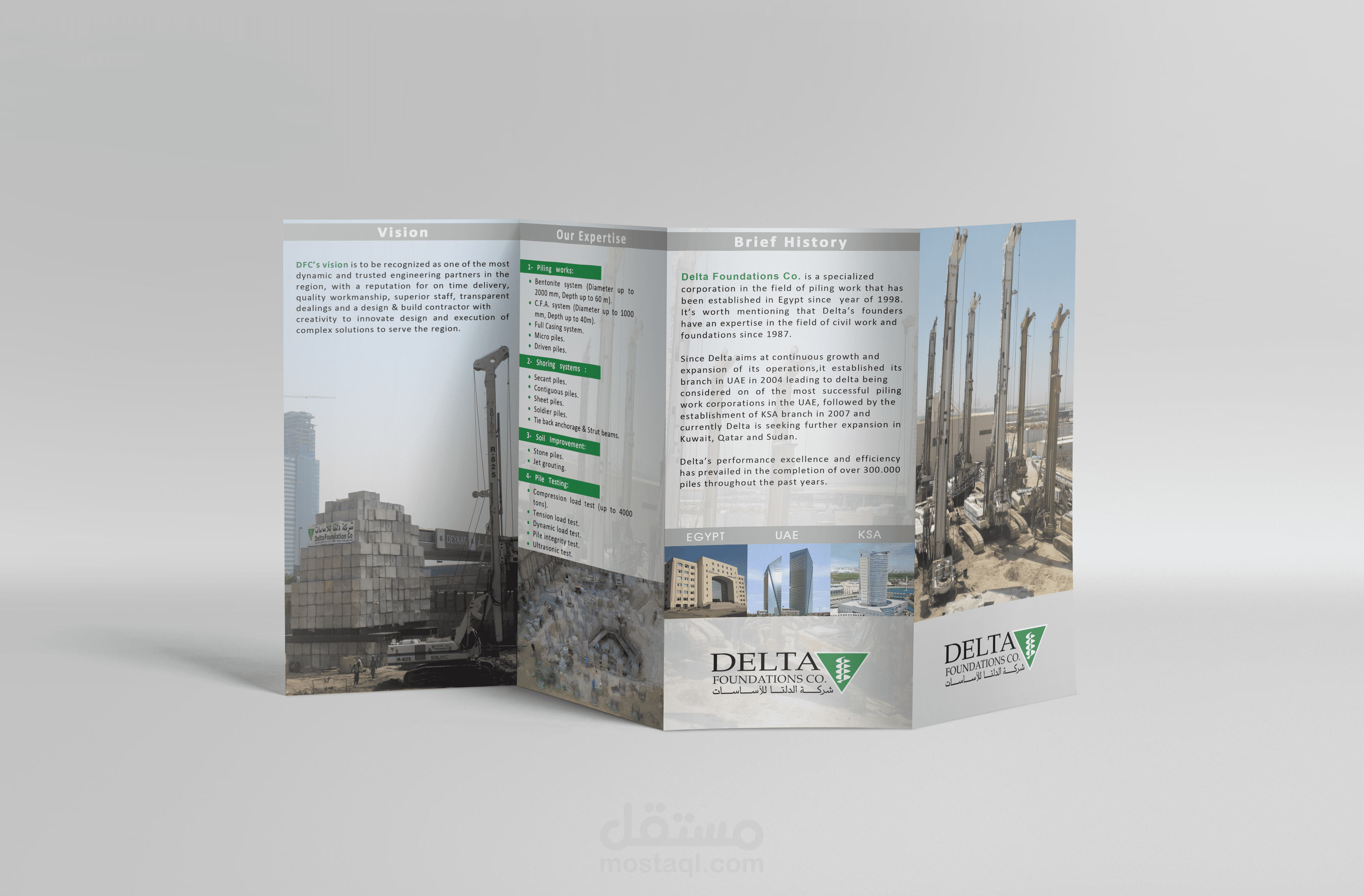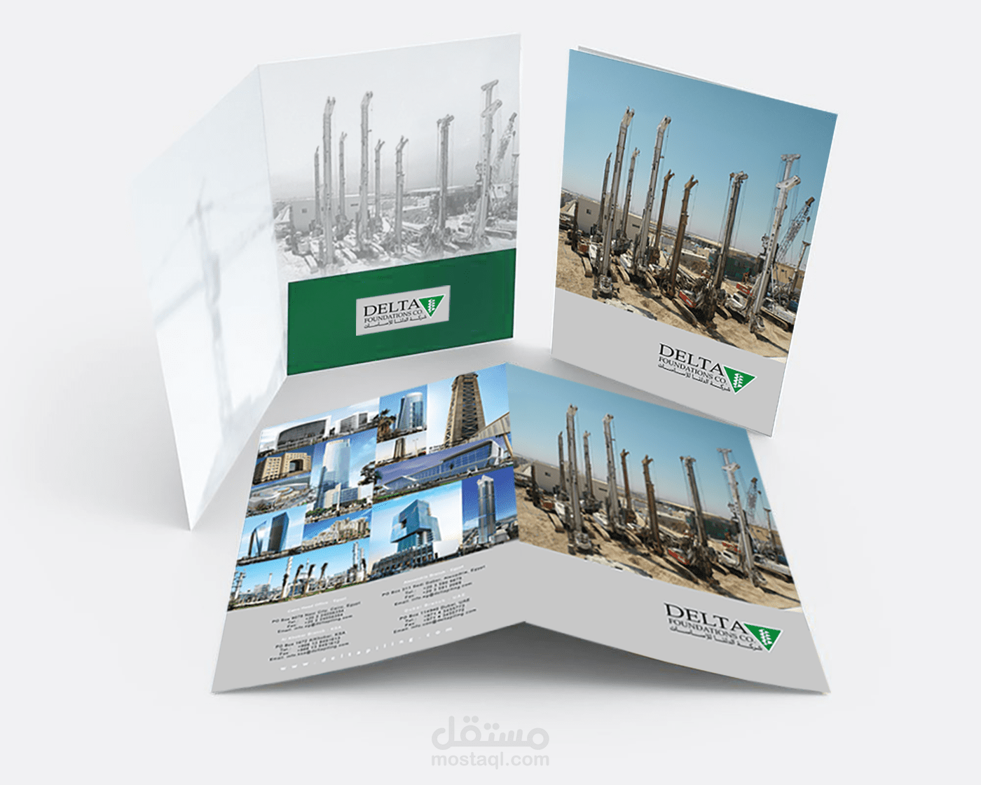 تصميم وطباعة الهوية التجارية الخاصة بشركة دلتا للأساسات - فرع السعودية - يتضمن :