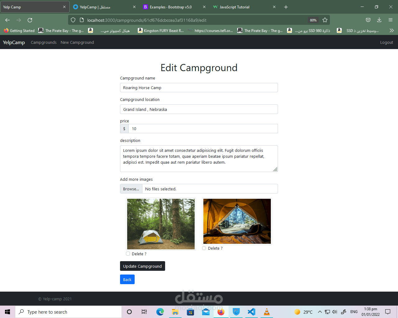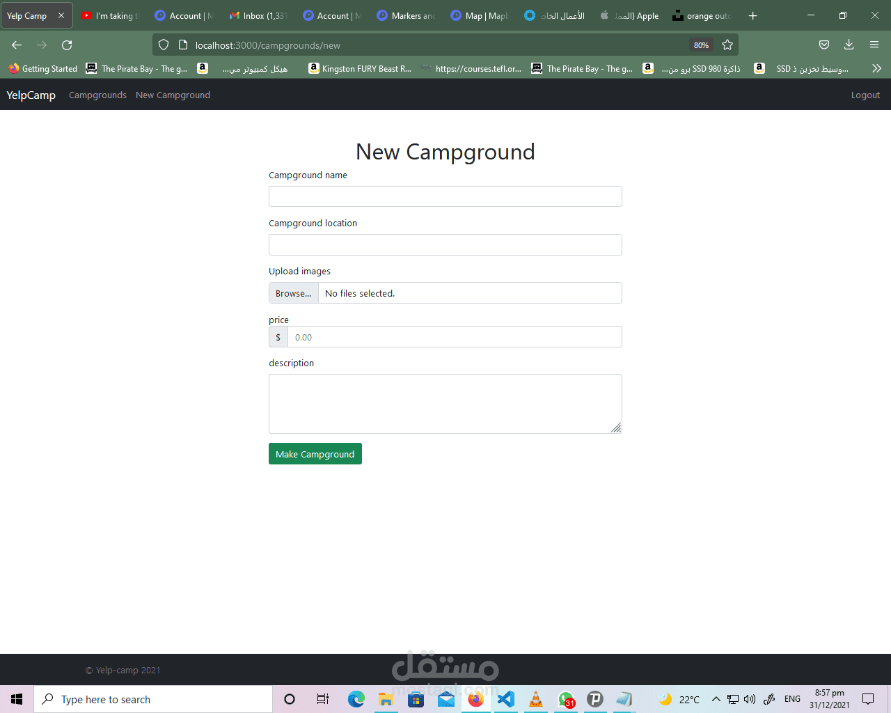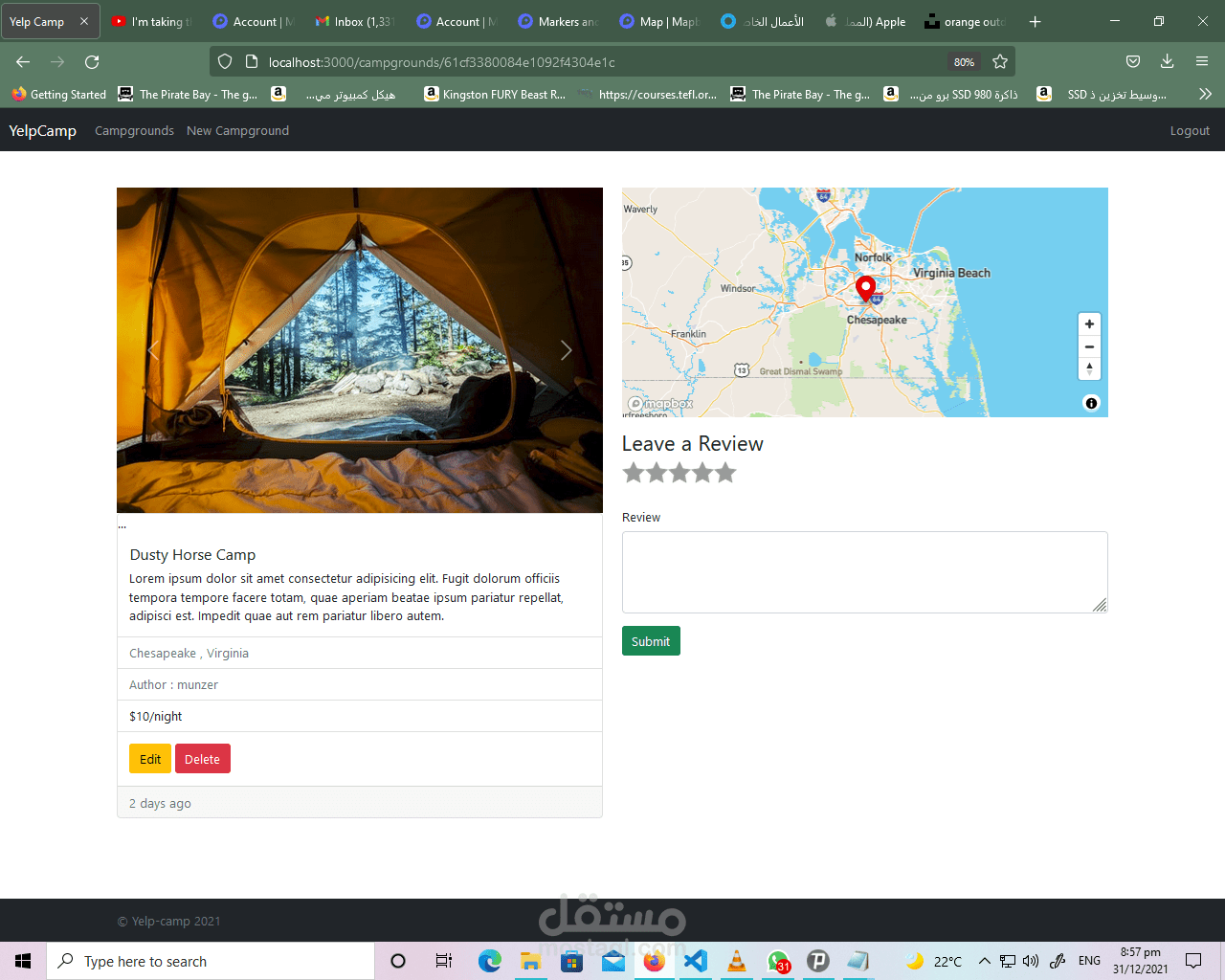 the website has a full database connected were you can register , login , and add campgrounds and reviews and they will all be saved to the database