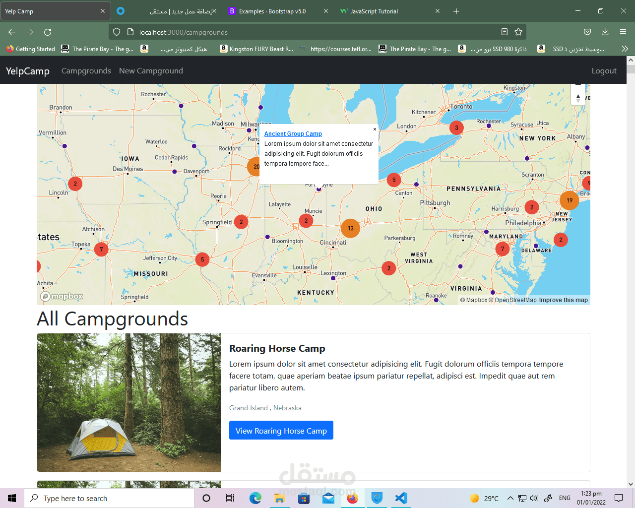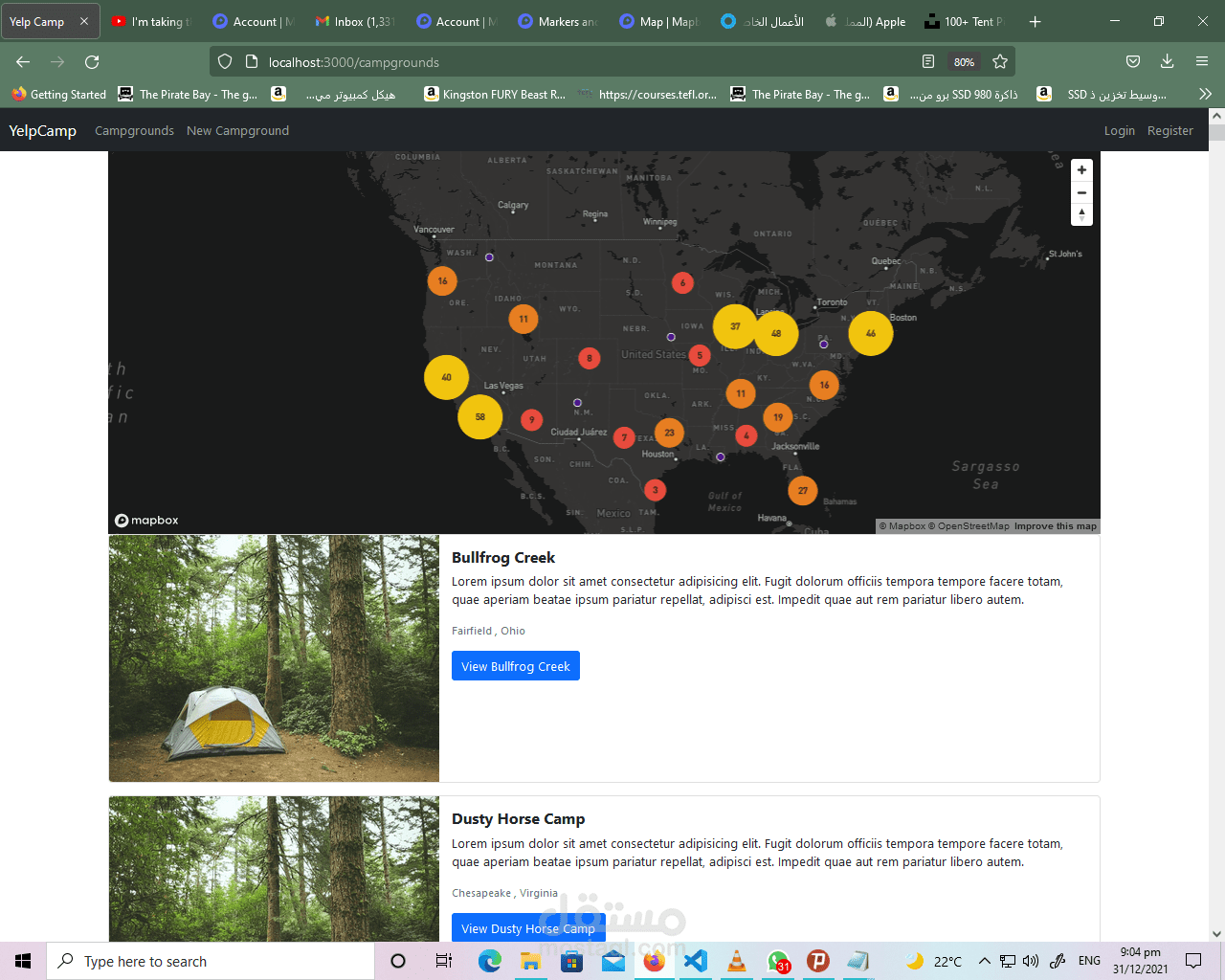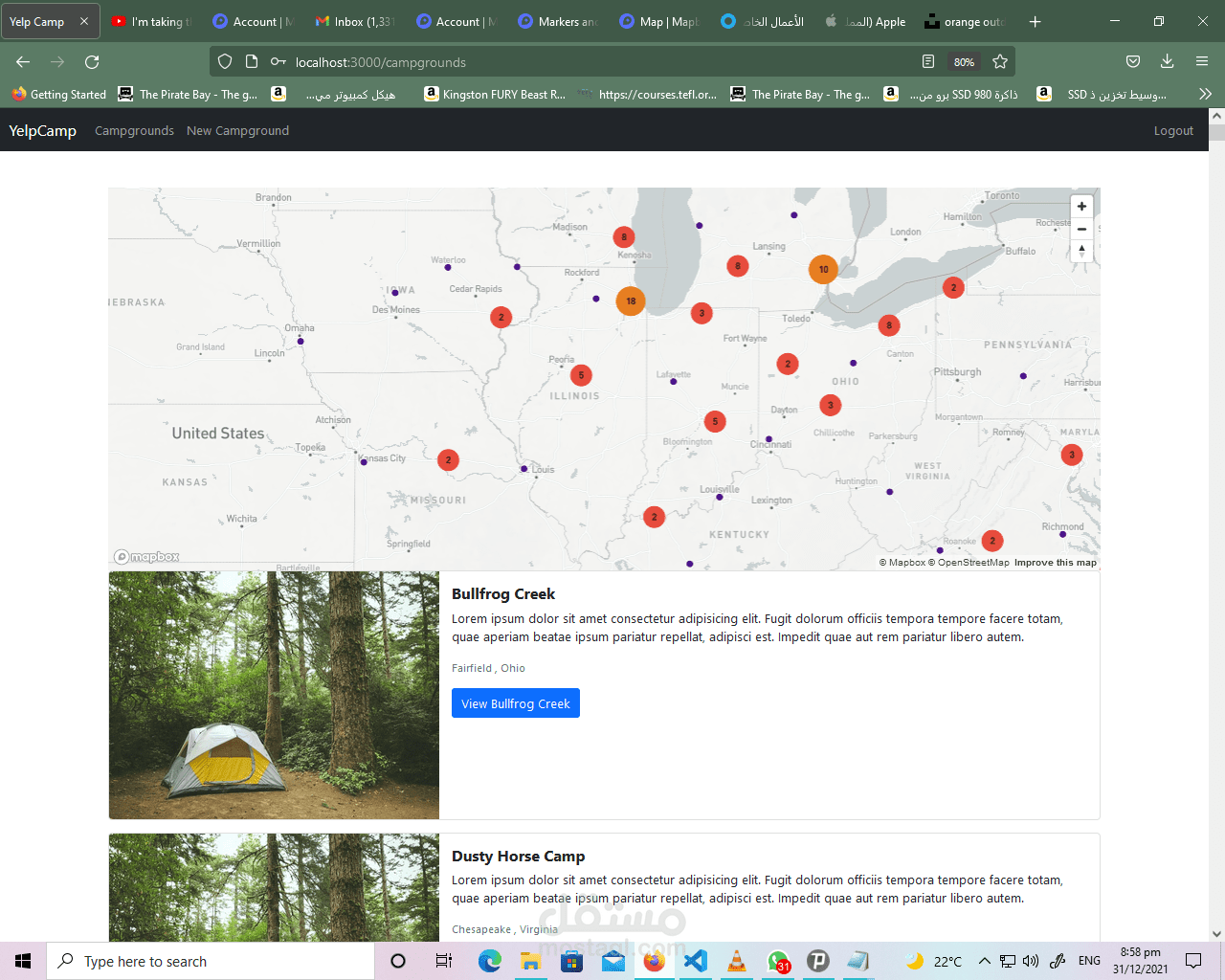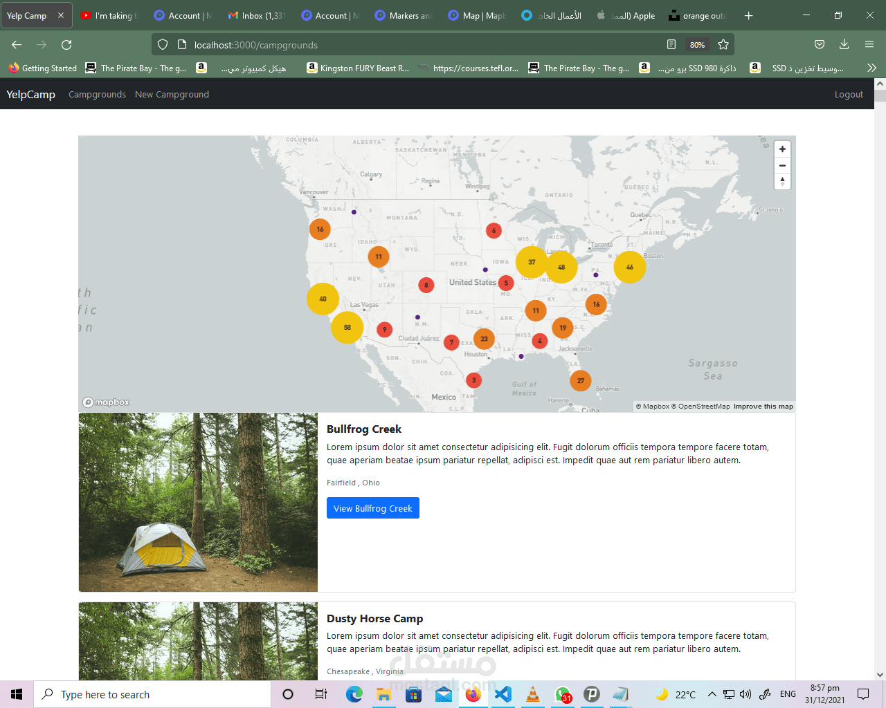 i also included a cluster map were you can see all the camping sites in the map based on the location and it's connected to a map API where you can type the location and it will take you straight to it in the map.
