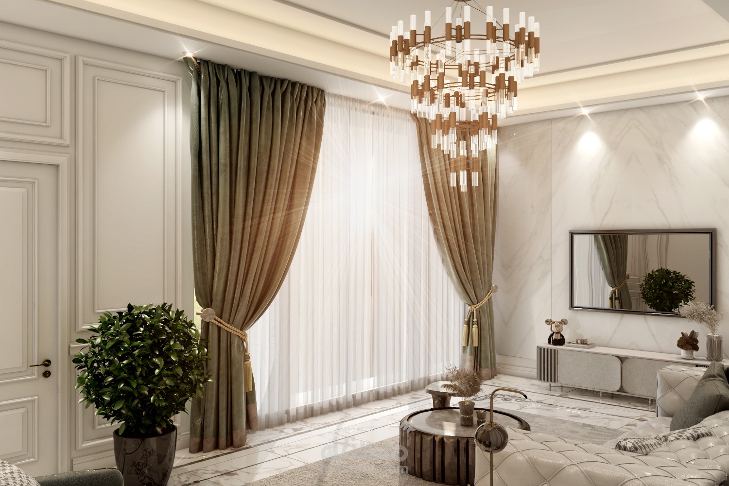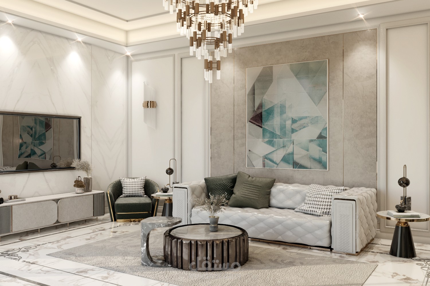تصميم داخلي لفراغ جلسة عائلية ضمن فيلا خااصة في السعودية.