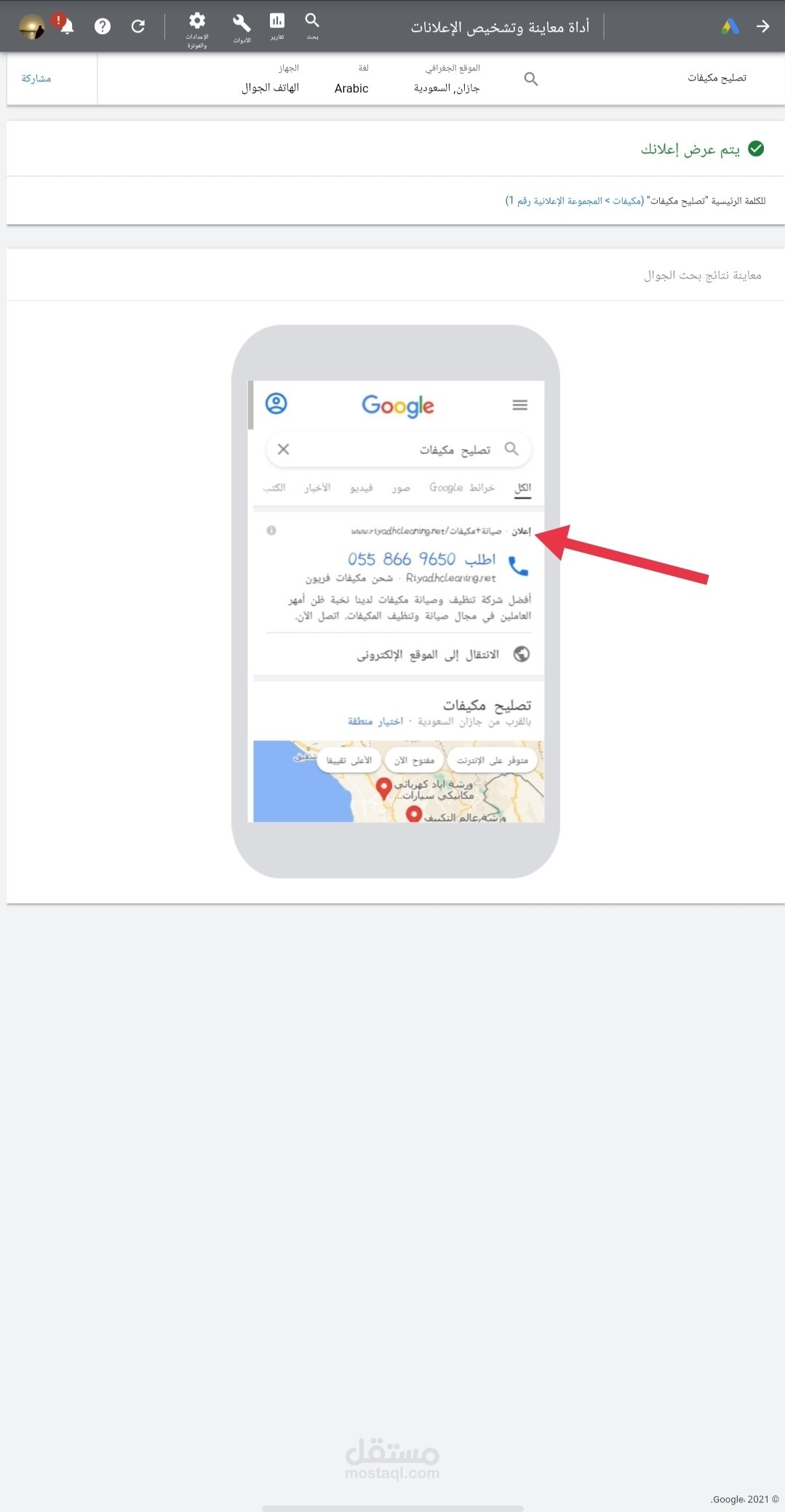 حملة إعلانية لموقع شركة تنظيف بالرياض وهذا مثال لتصدر نتائج البحث الأولى من خلال حملتنا