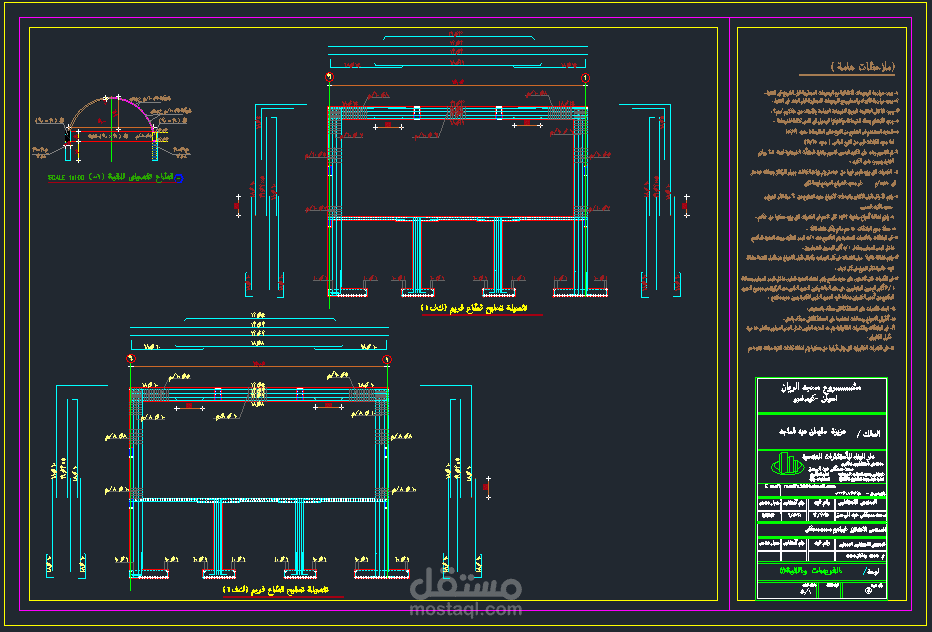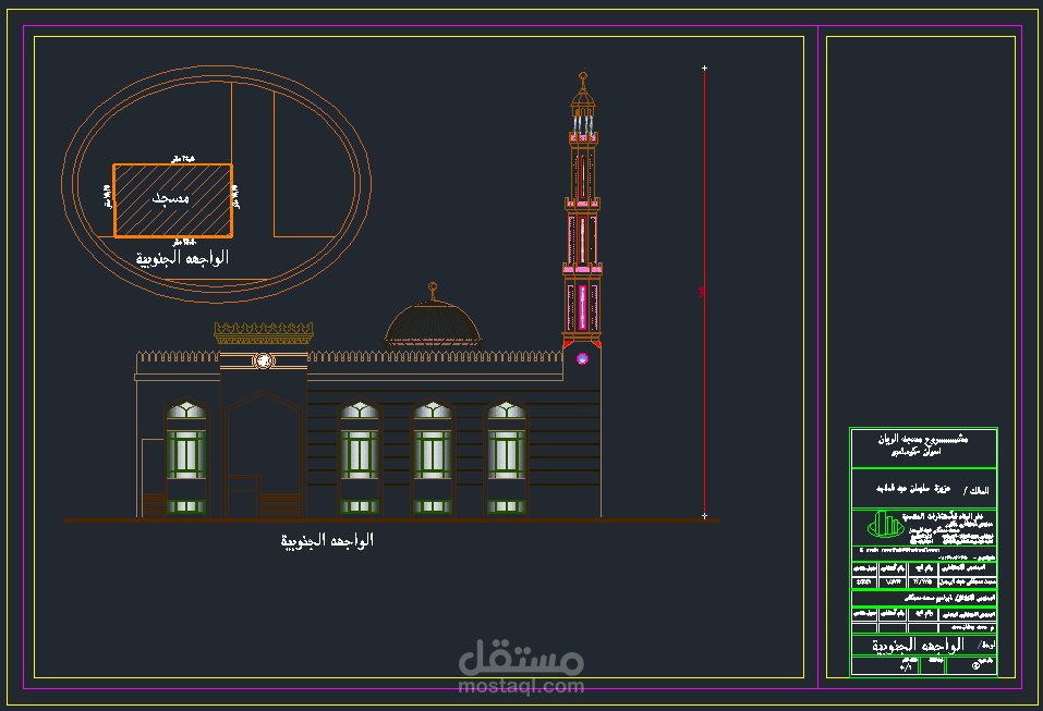 الدور الثانى عباره عن نظام تغطيات بانلد فريم بارتفاع ٧.٤ بالاضافه الى القبه الخرسانيه والمأذنه