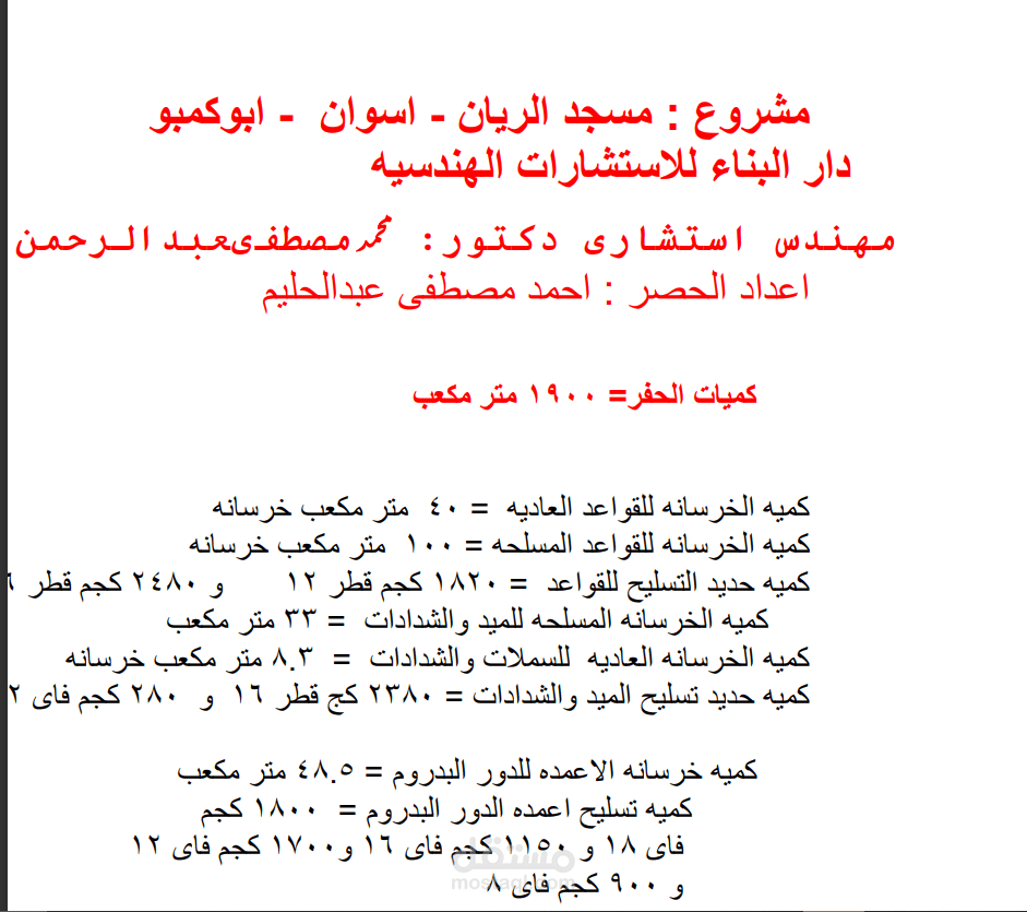 الانتهاء من حصركميات حديد التسليح والخرسانة لمسجد الريان ب اسوان مصر