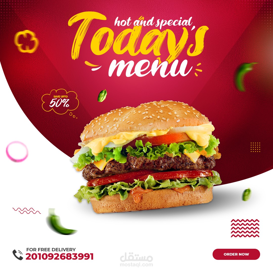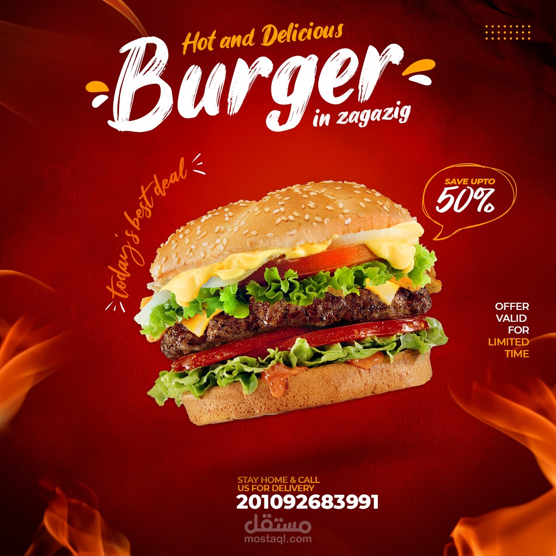 تصمميات اعلان لمنتجات البرجر باعلي الجوده