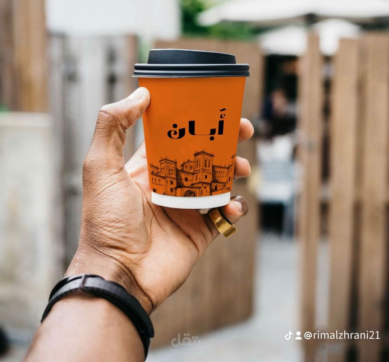 تصميمي لكوفي أبان بمدينة خميس مشيط تحديدا (ثلوث المنظر) بالإضافة الى تصميم لوحة المحل + الكوب