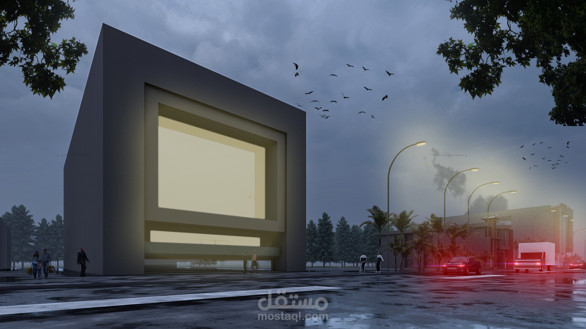 تصميم وعمليات نمذجة وإظهار نهائي لمجمع رياضي يتضمن: