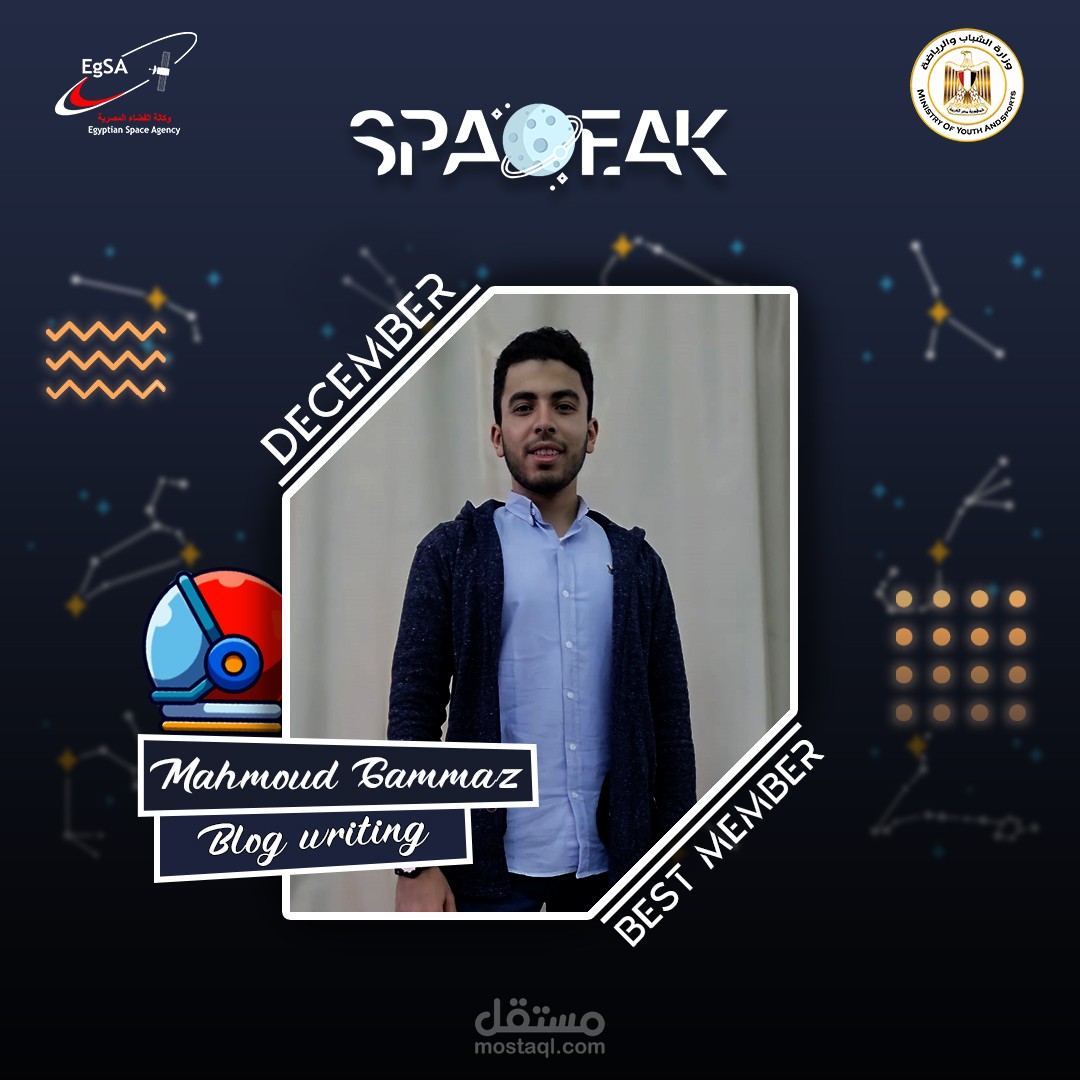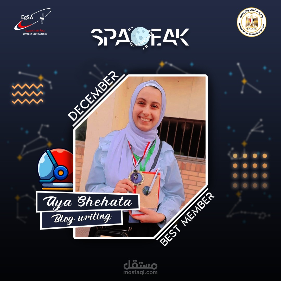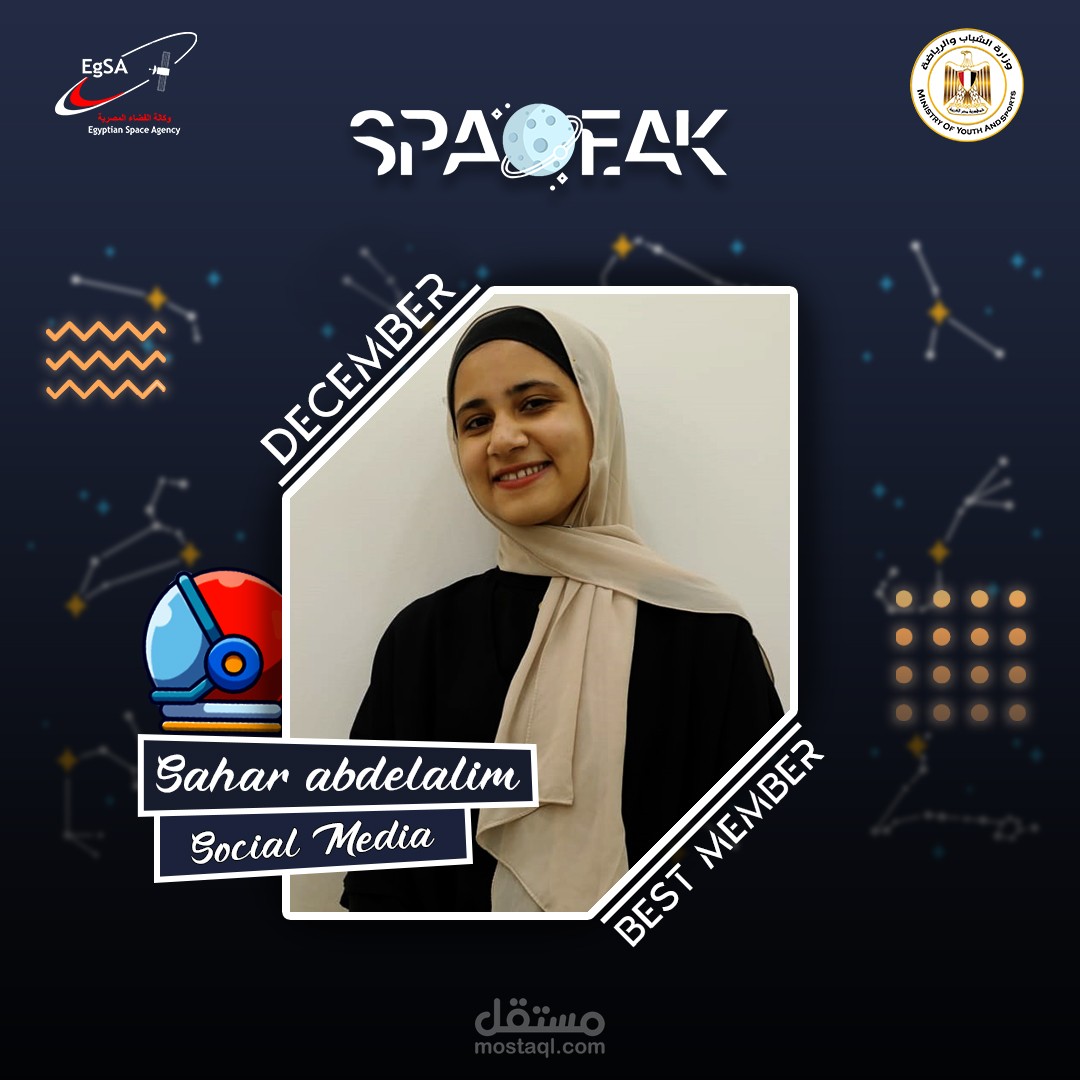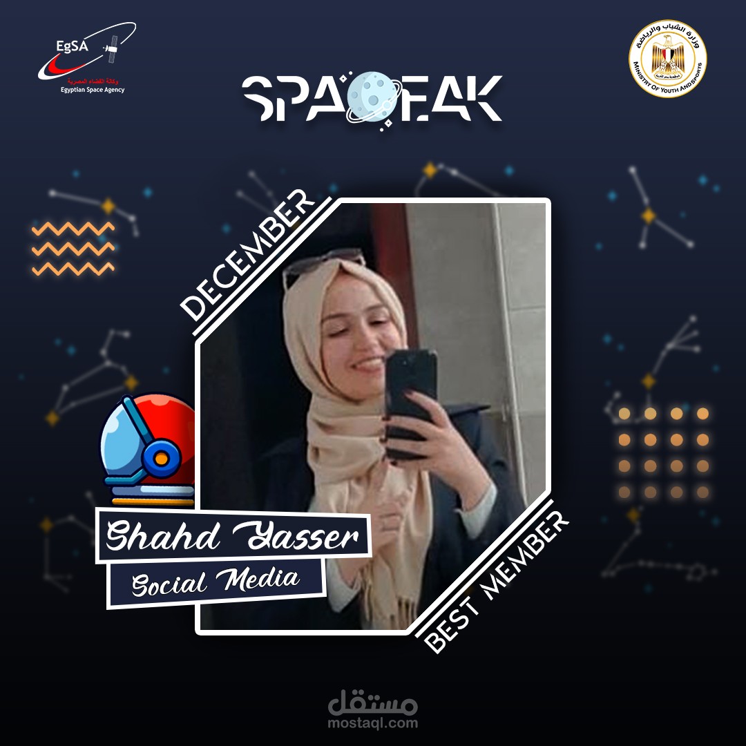 هو مشروع سوشيال ميديا قمت بتصميمه لوزارة الشباب والرياضة المصرية تقديرا لمجهود بعض المتطوعين المميزين فى شهر ديسمبر فى برنامج الفضاء لك التابع لوكالة الفضاء المصرية.