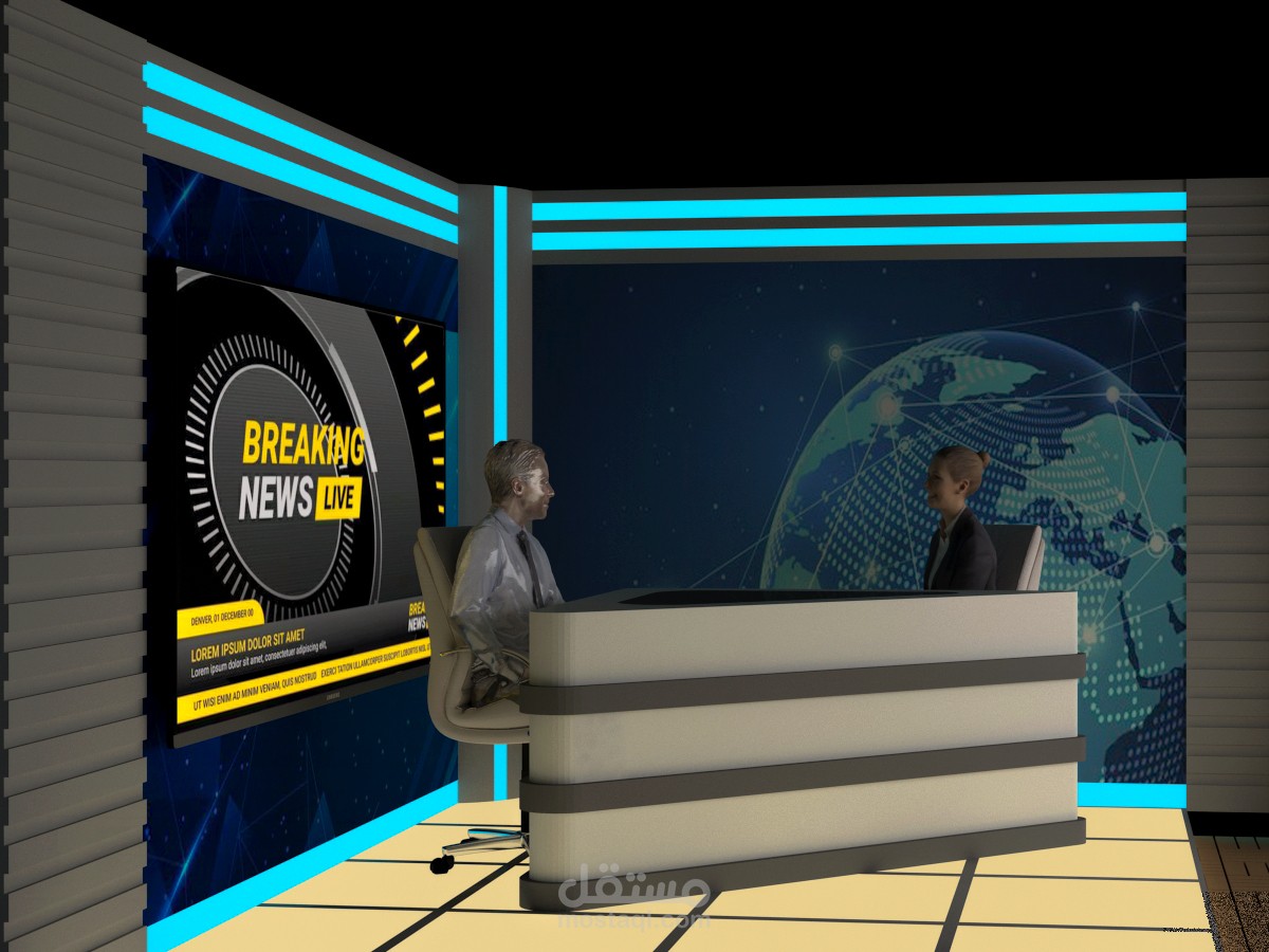 تصميم ستوديو حيث الألوان المناسبة والديكور المناسب والمطلوب
