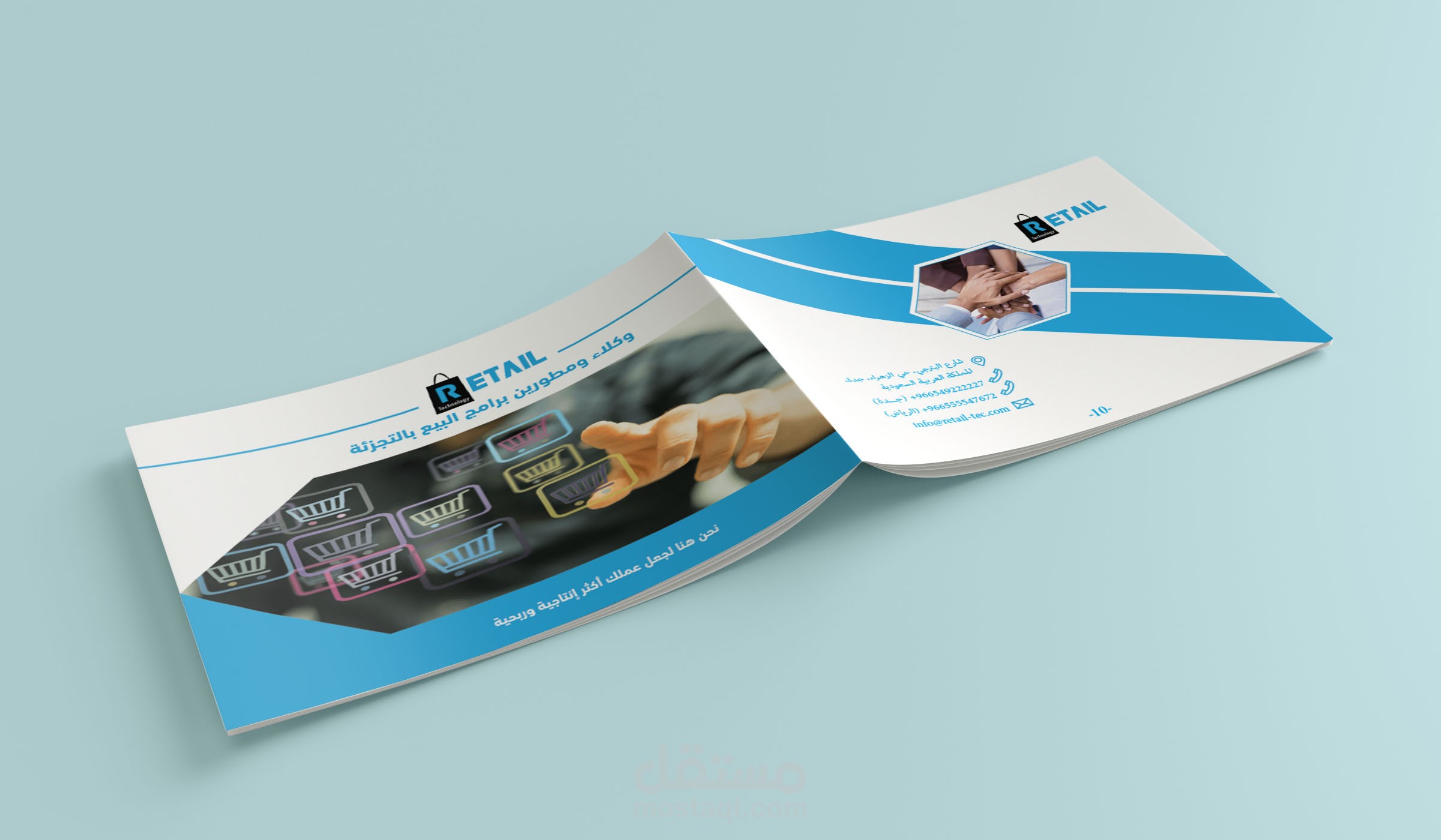 تصميم ملف تعريفي لشركة Retail السعودية (تصميم profile) بشكل جذاب ورائع، تصميم يعرف بالشركة ورسالتها وأهدافها، وطرق التواصل مع الشركة بوضوح.