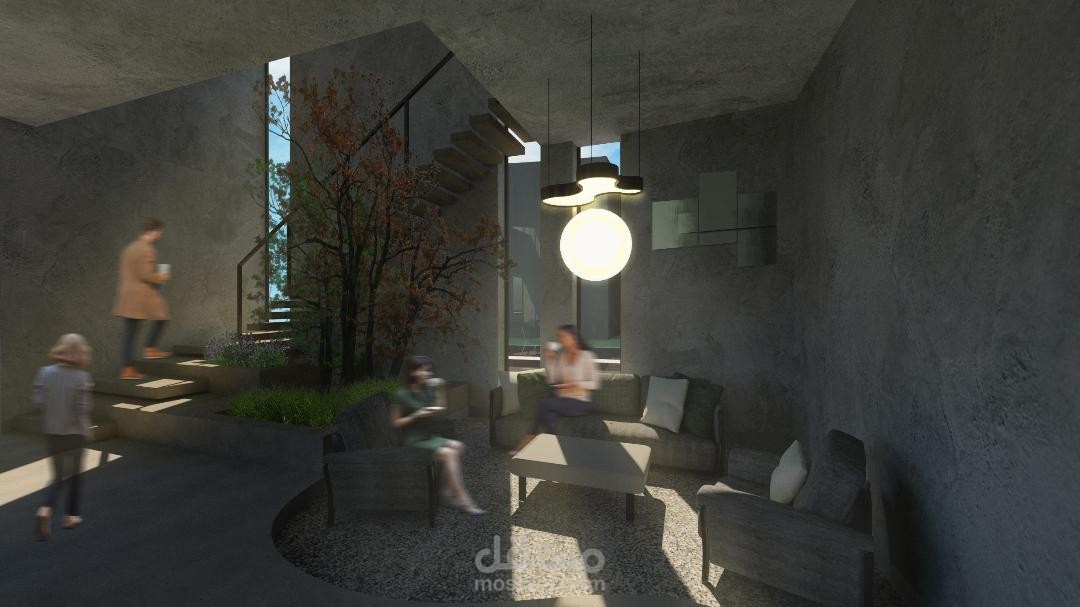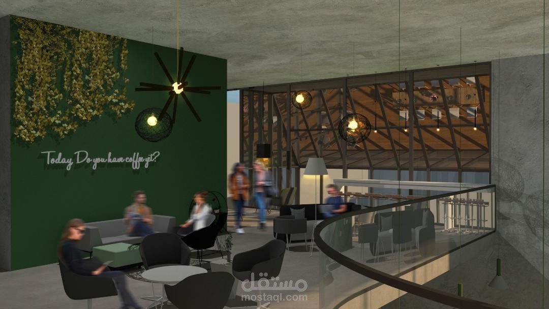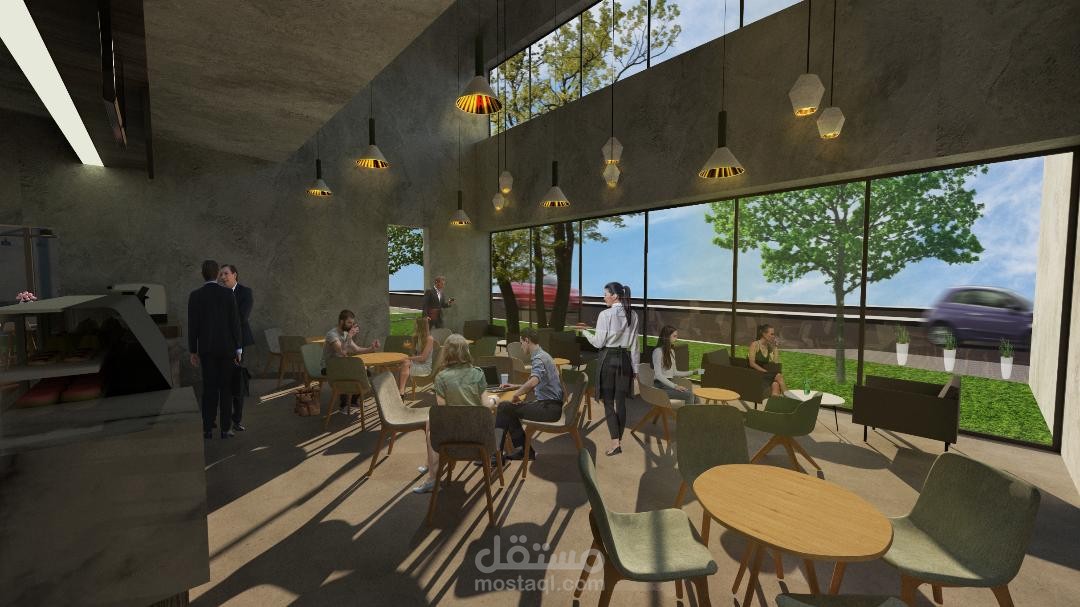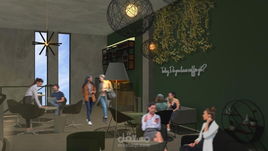 كافيه بتصميم حديث و مساحات داخلية مميزة تستهدف فئة الشباب و العاملين وأصحاب الخبرات الذين يمضون وقت طويل في العمل خارج المنزل و يبحثون دائما عن مكان عملي و مريح لإتمام مهمات العمل