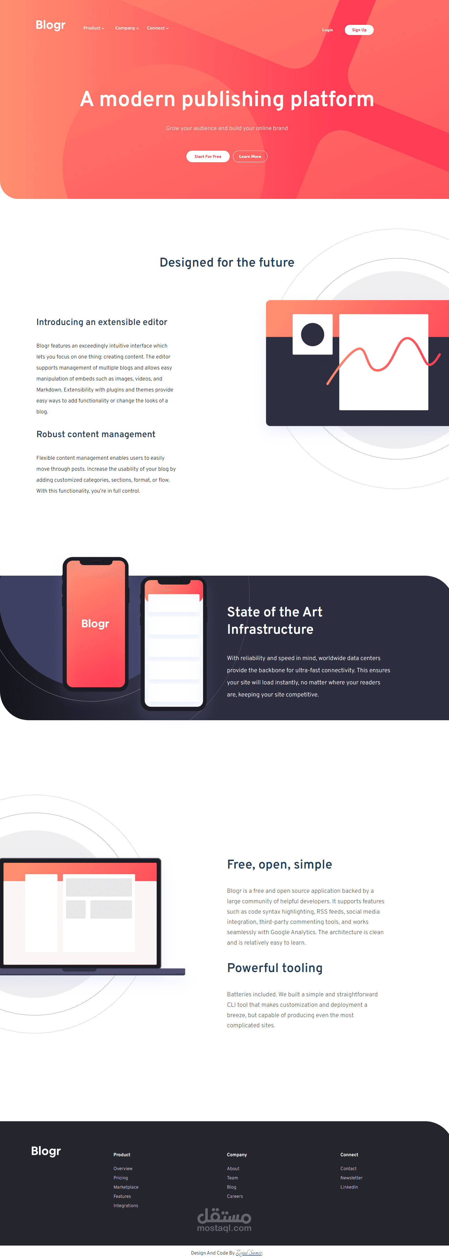 موقع Blogr, تم إنشائه بلغات HTML5, CSS3, JavaScript