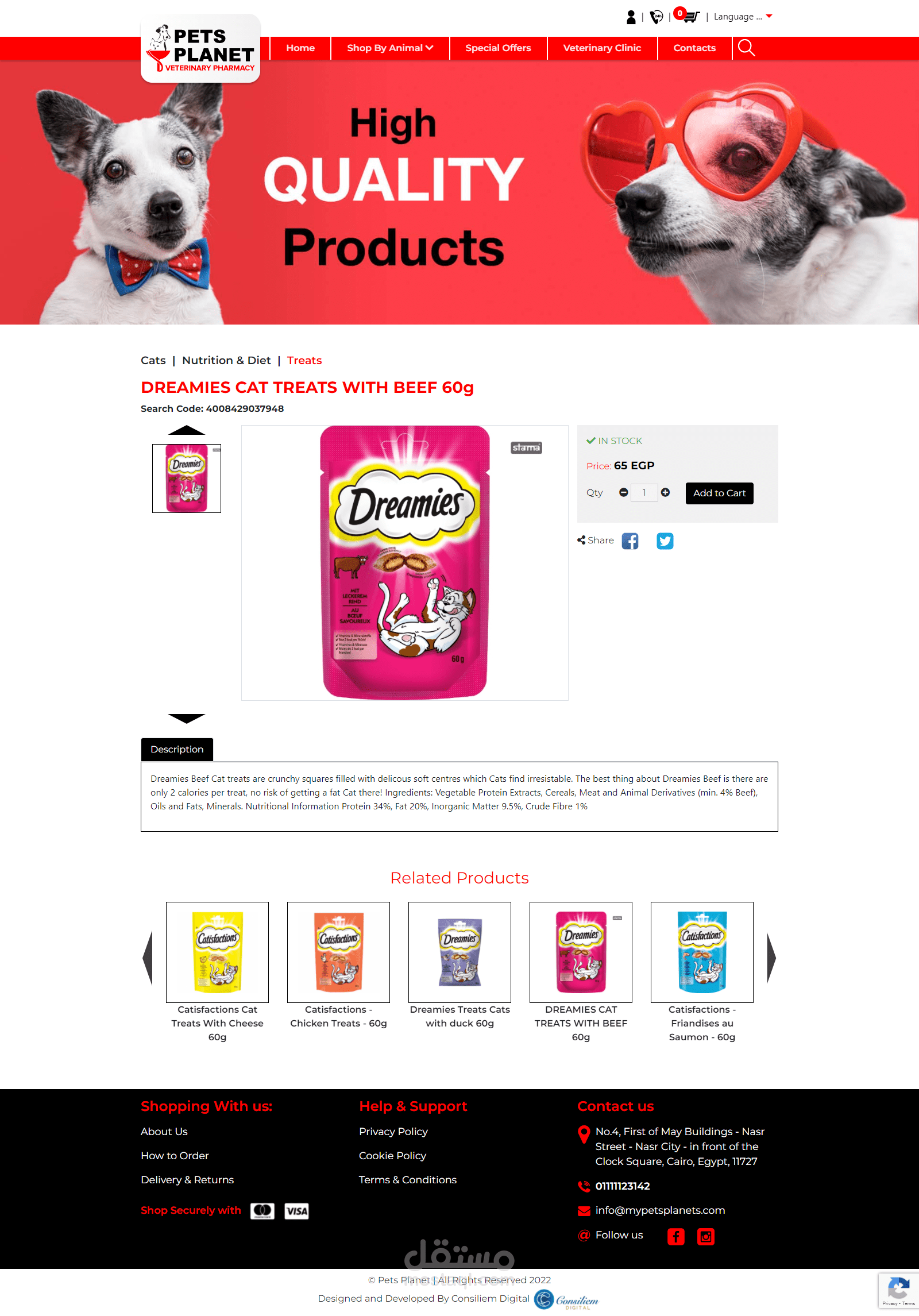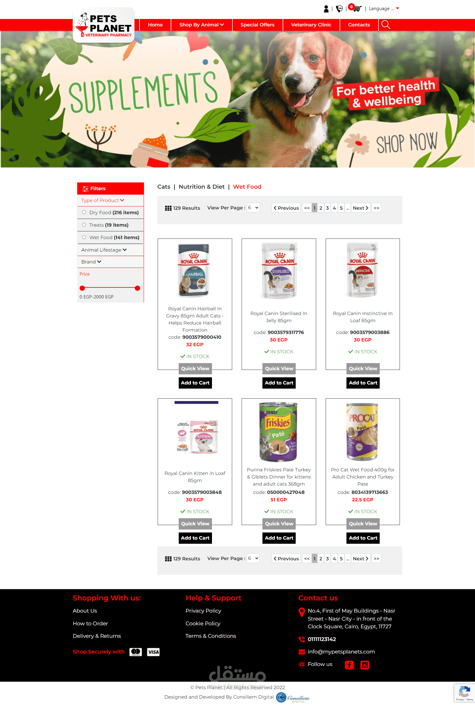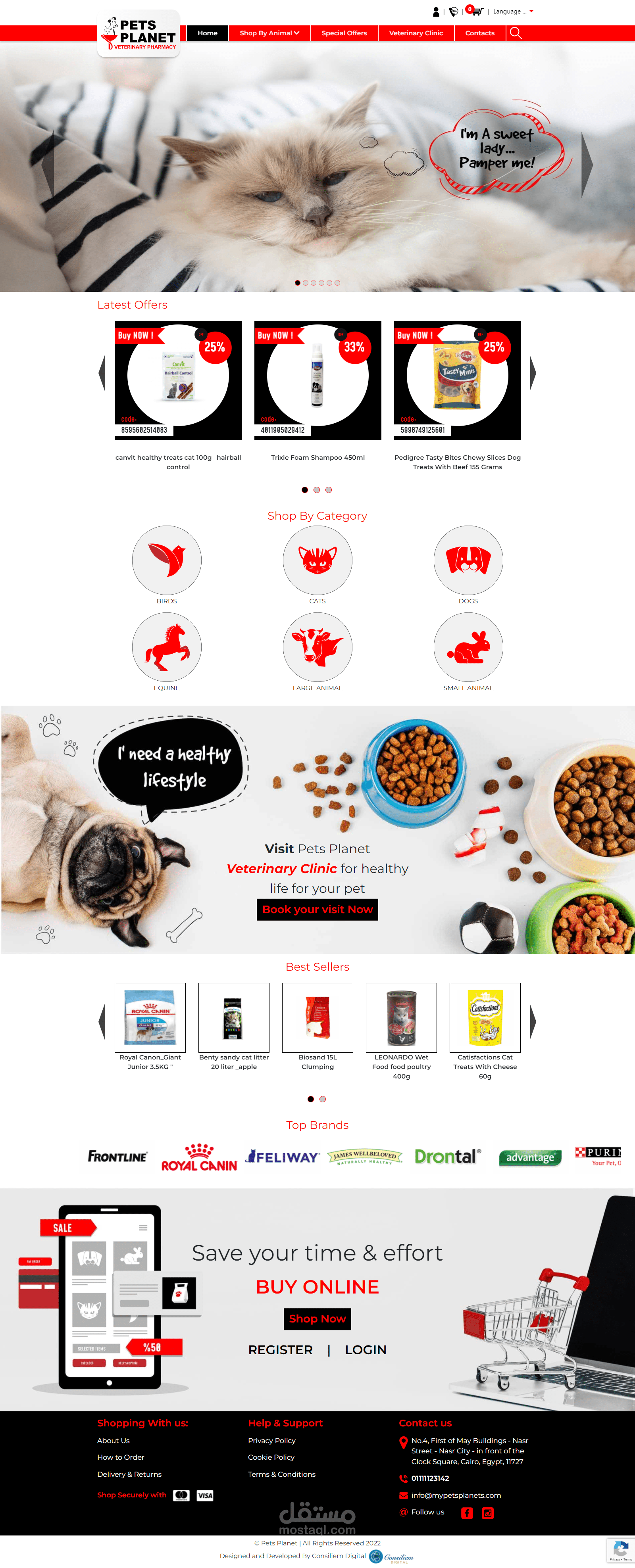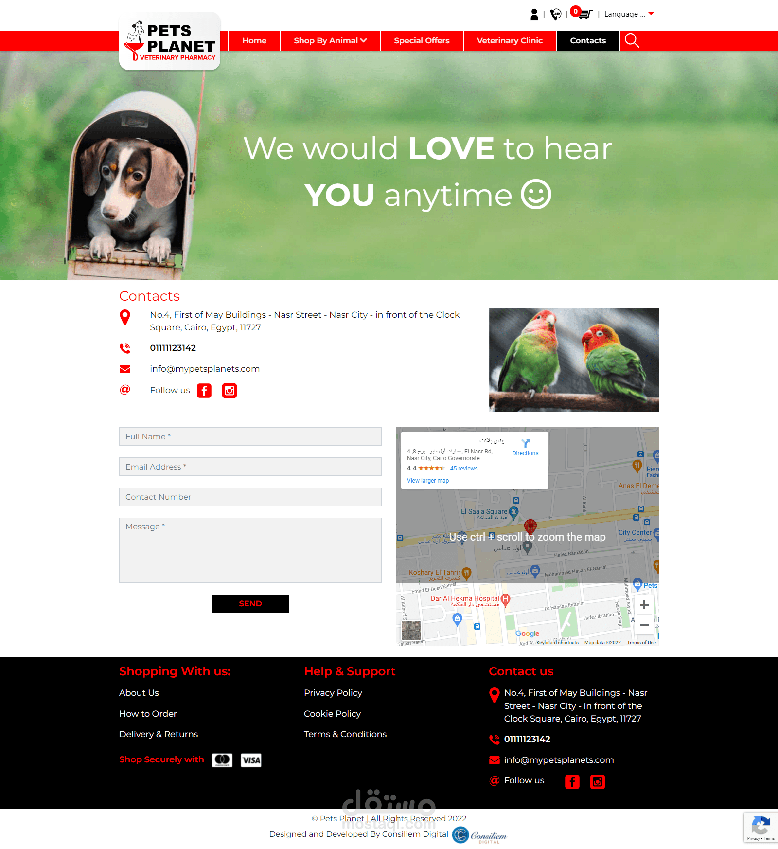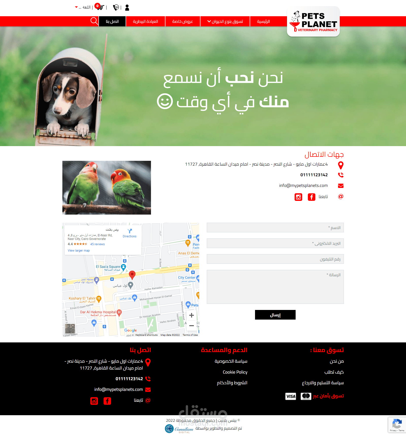 صيدلية وعيادة بيطرية متكاملة للحيوانات الأليفة وغير الاليفة والطيور بها كافة أنواع الأدوية البيطرية والاكسسوارات والخدمات