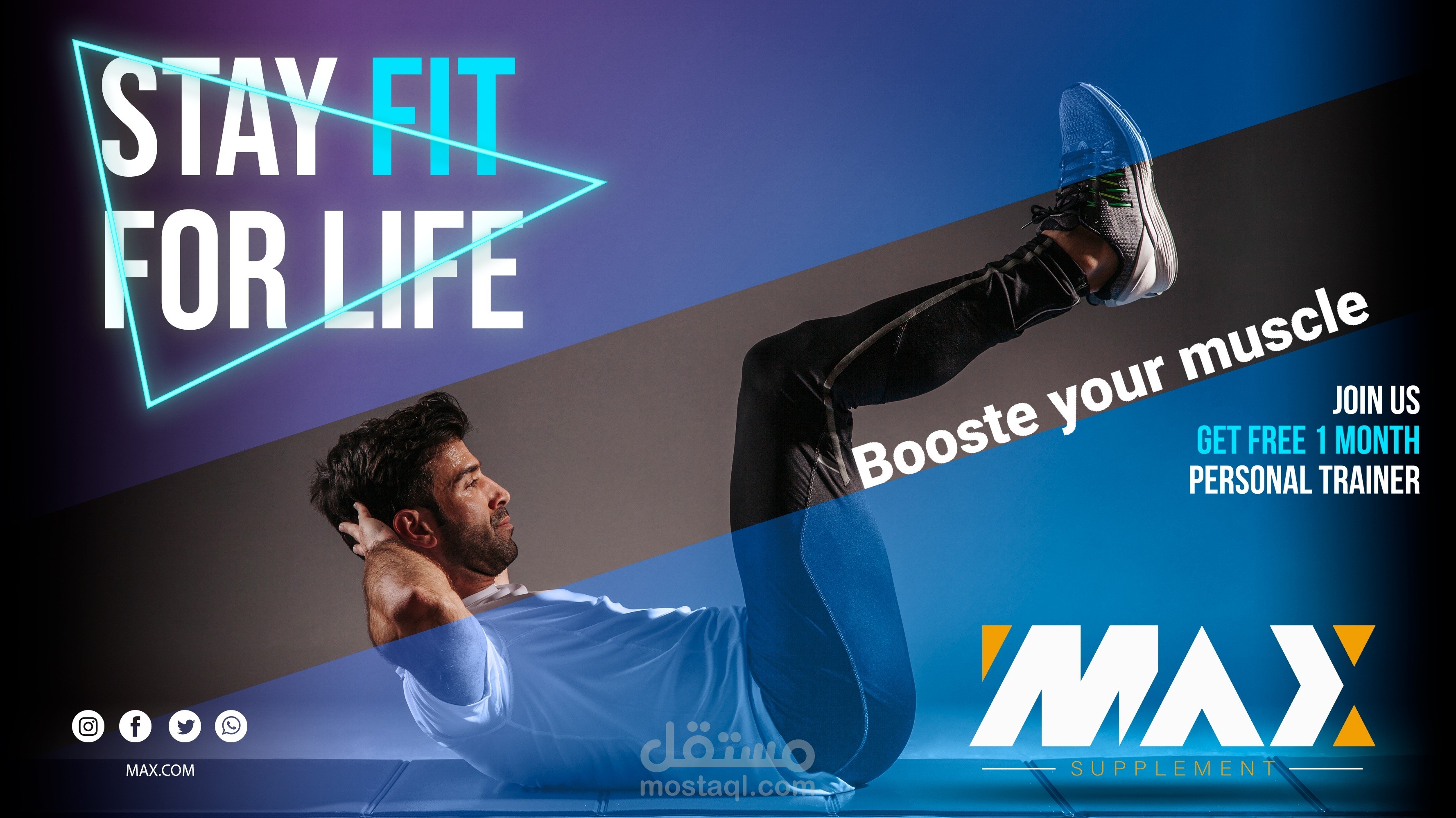 تصميم لوجو وديزاين سوشيال ميديا اشركه ماكس ماسل للمكملات الغذائية