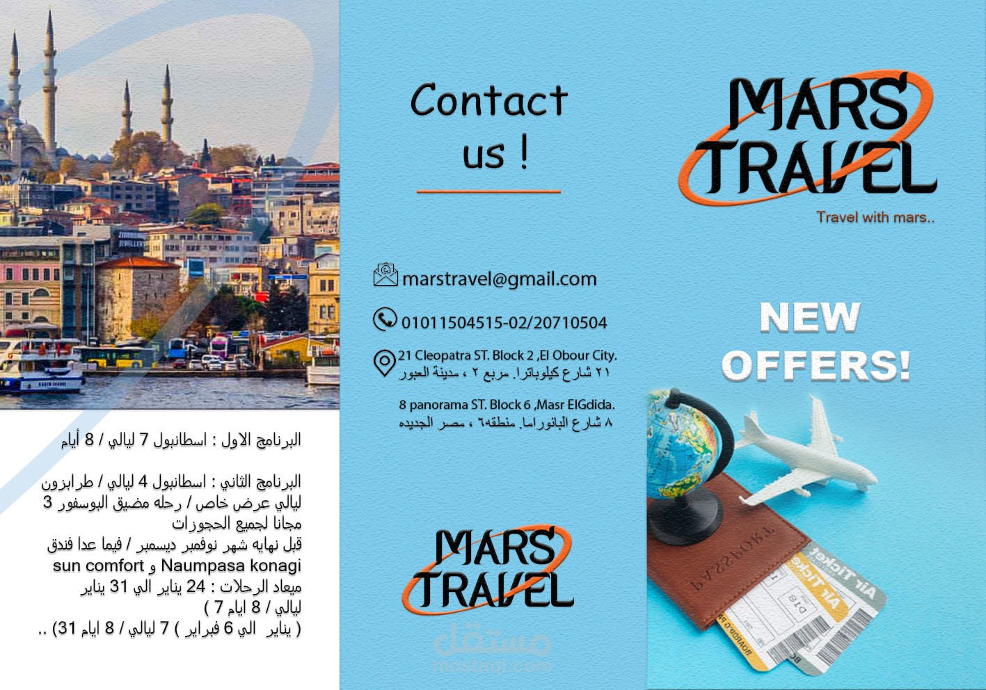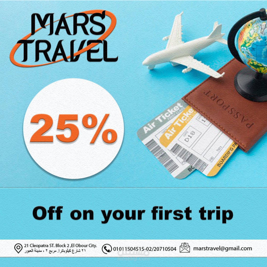 تصميم خيالي لشركة رحلات سياحيه ( لوجو - بروشور- social media post- دعوه افتتاح - business card)