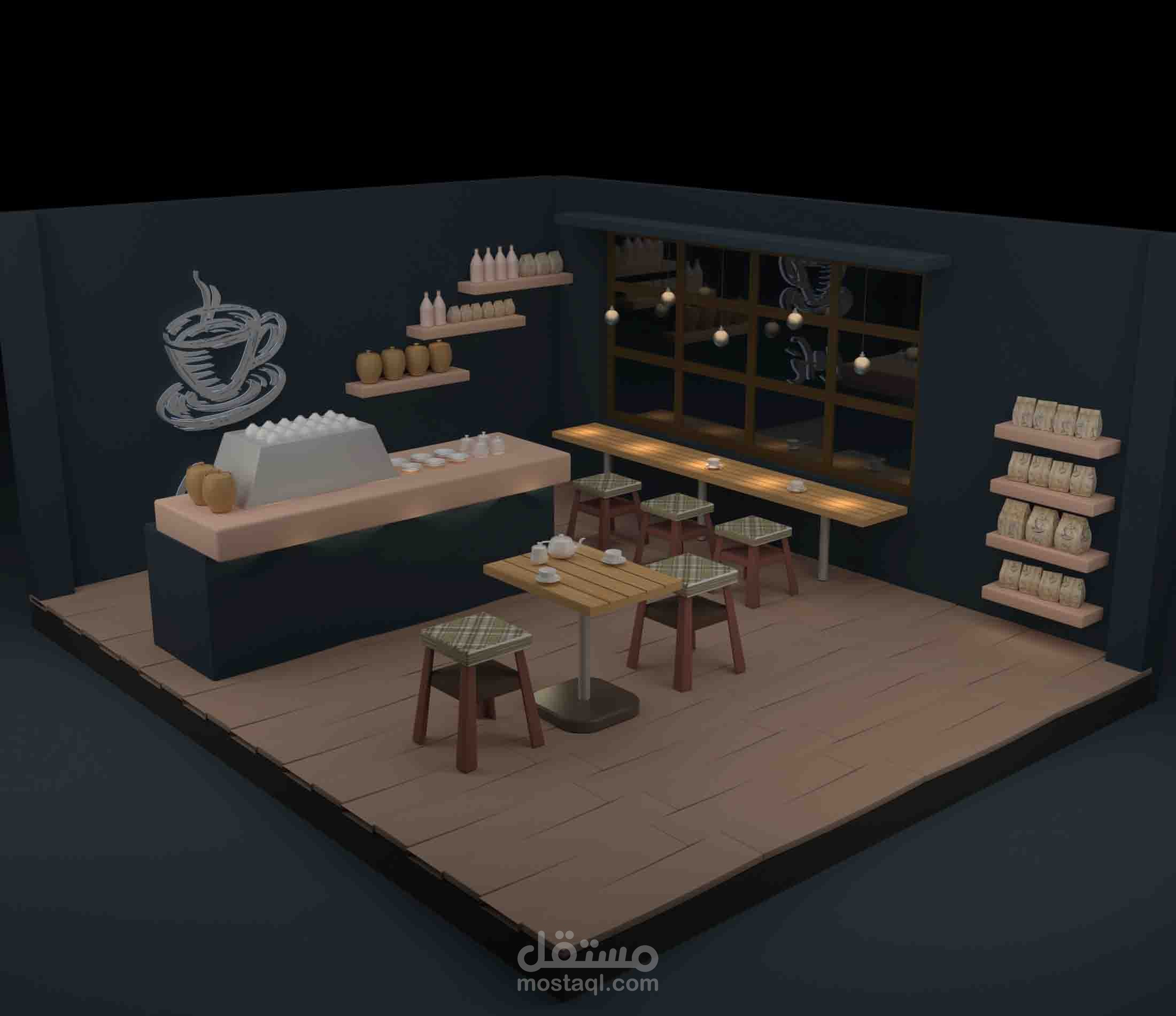 رسم وإخراج معماري لكشك || بوث_ معارض قهوة