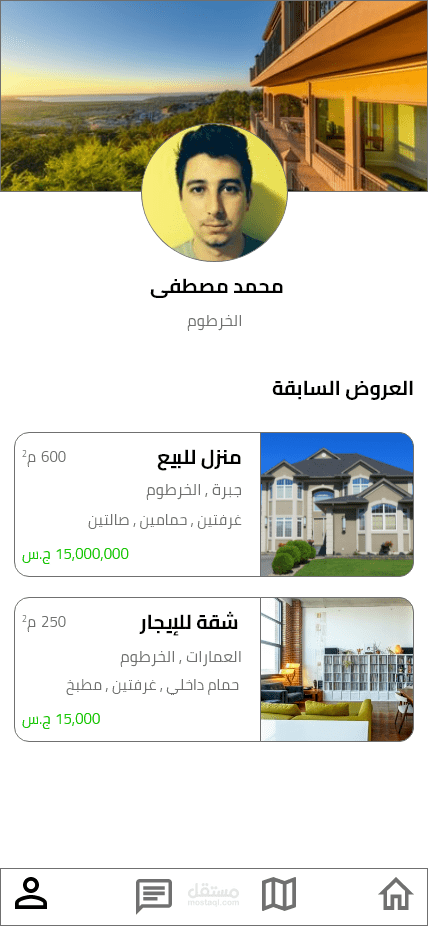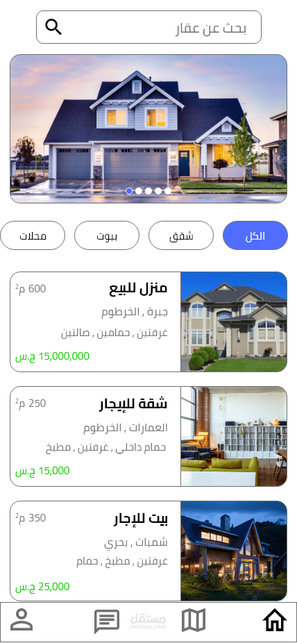 واجهات مستخدم لتطبيق عقاري قمت بتصميمها ب Adobe xd