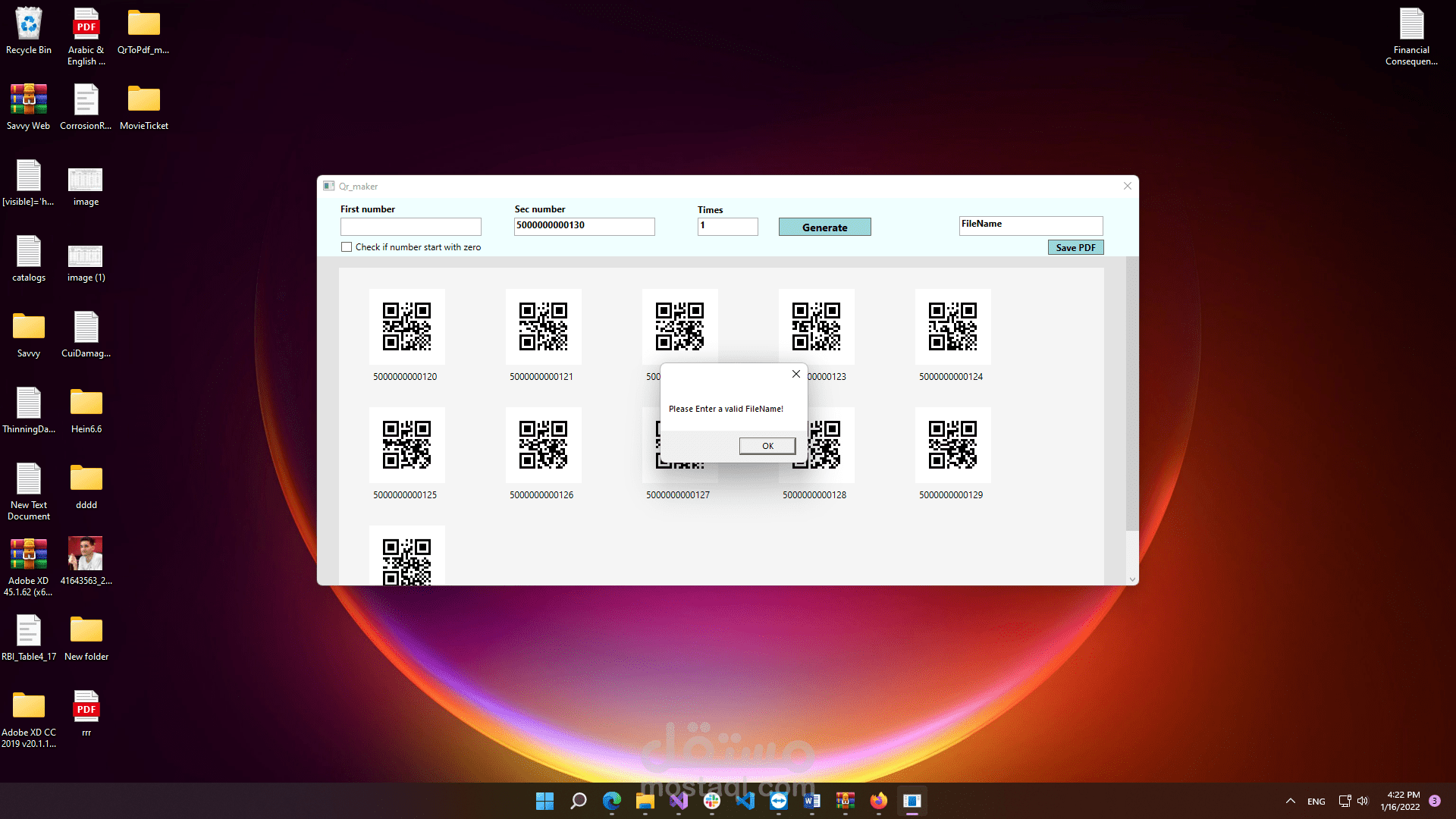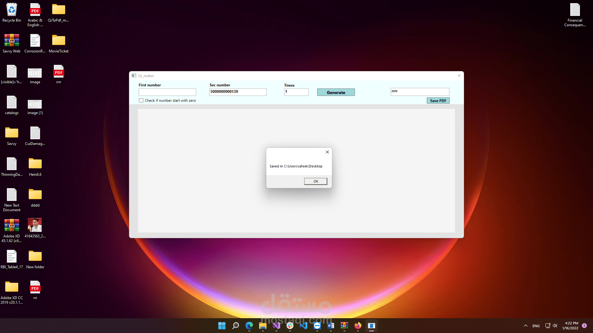 تطبيق للكمبيوتر يطبع كيو ار كود من رقم ما اللى رقم ما