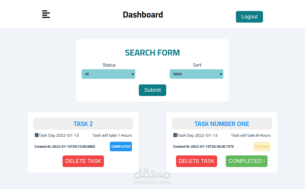 موقع يحنوي علي اضافة المهام المحدده للقيام عليها متجاوب مع جميع الشاشات تم عمله باستخدام الريأكت لتطوير واجهة العمل الاماميه واستخدام ال Node | Express | MongoDB لتطوير الواجه الخلفيه