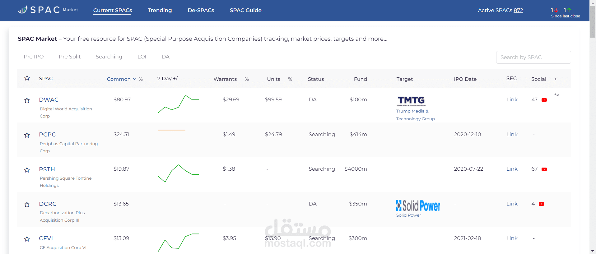 A web application that provides information about SPACs ( Special Purpose Acquisition Company ), you can