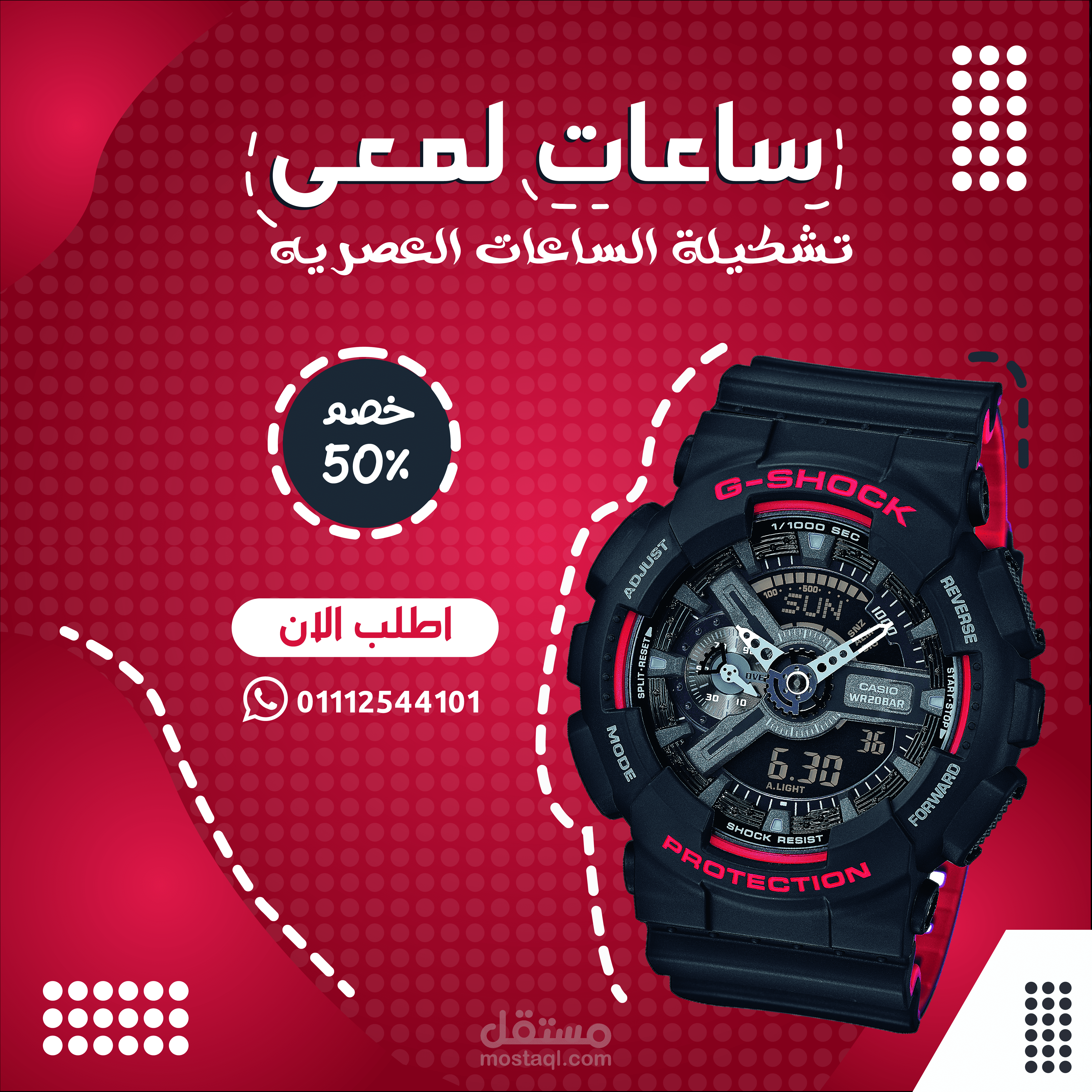 تم تصميم هذه الاعمال لابراز بعض الساعات الموجوده بالمحل وابراز العروض الذي يقدمها المحل على تلك الساعات
