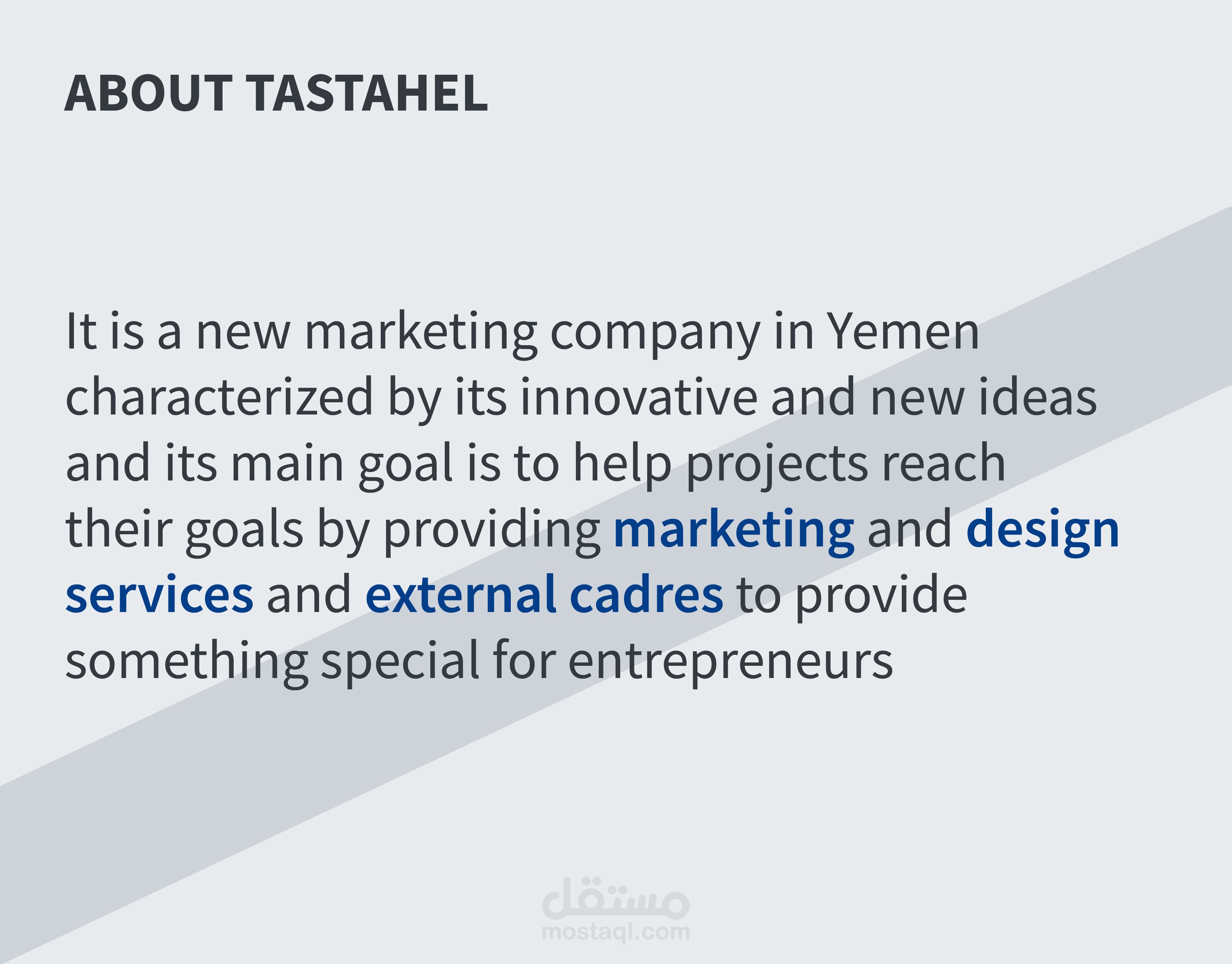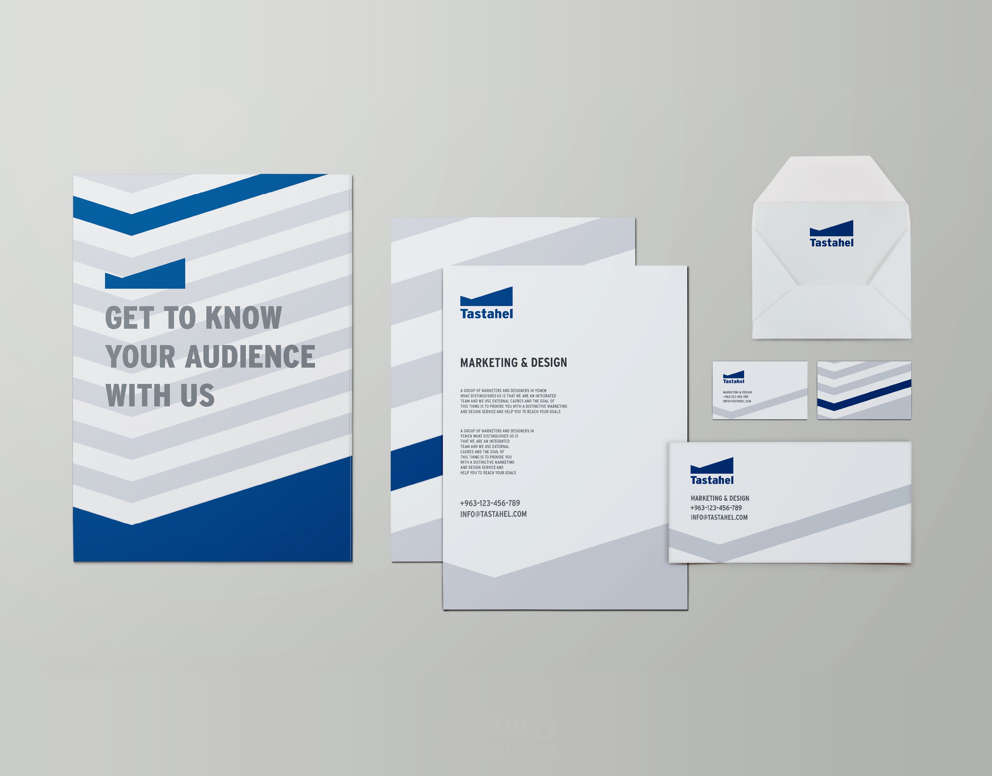 عمل شعار وهوية بصرية لشركة تستاهل وهوية شركة توفر خدمة التسويق و التصميم للمشاريع الصغيرة و التوسطة وتسعى لمساعدة الشركات بالوصول الى هدفها