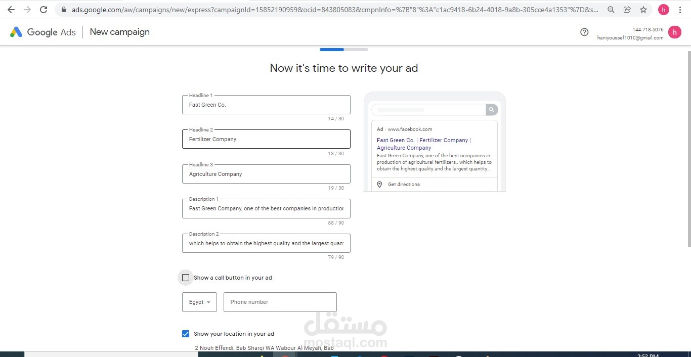 عمل حمله اعلانيه لشركه زراعيه و اسمده زراعيه على جوجل