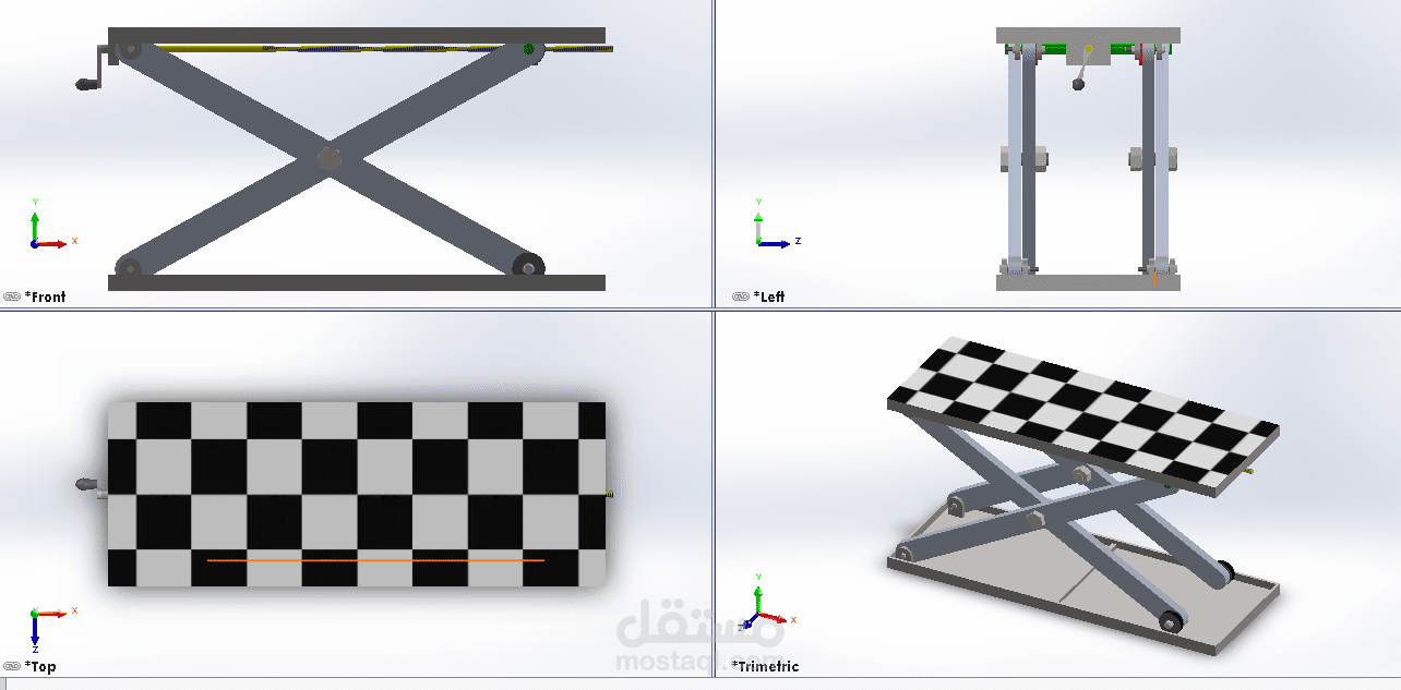 هذا التصميم عبارة عن منضدة قابله لتعديل ارتفاعها كما انها سهله في الحمل والتخزين